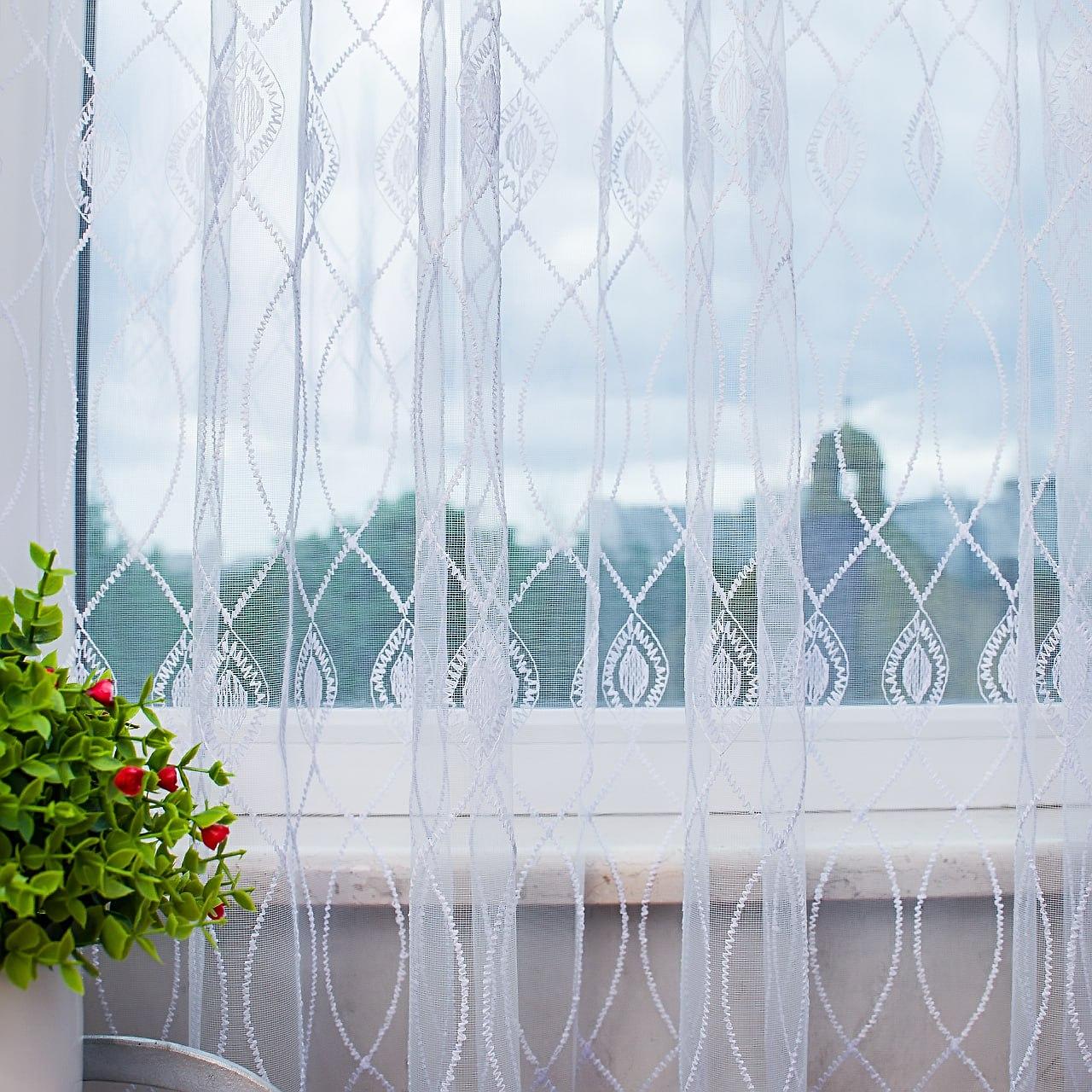 Або замовити пошиття готового тюля. До послуги входить: пошиття тасьми з петельками під гачки (тасьма на карниз трубу або люверси), обробка всіх країв після відрізу від рулону, пошиття на індивідуальну висоту.