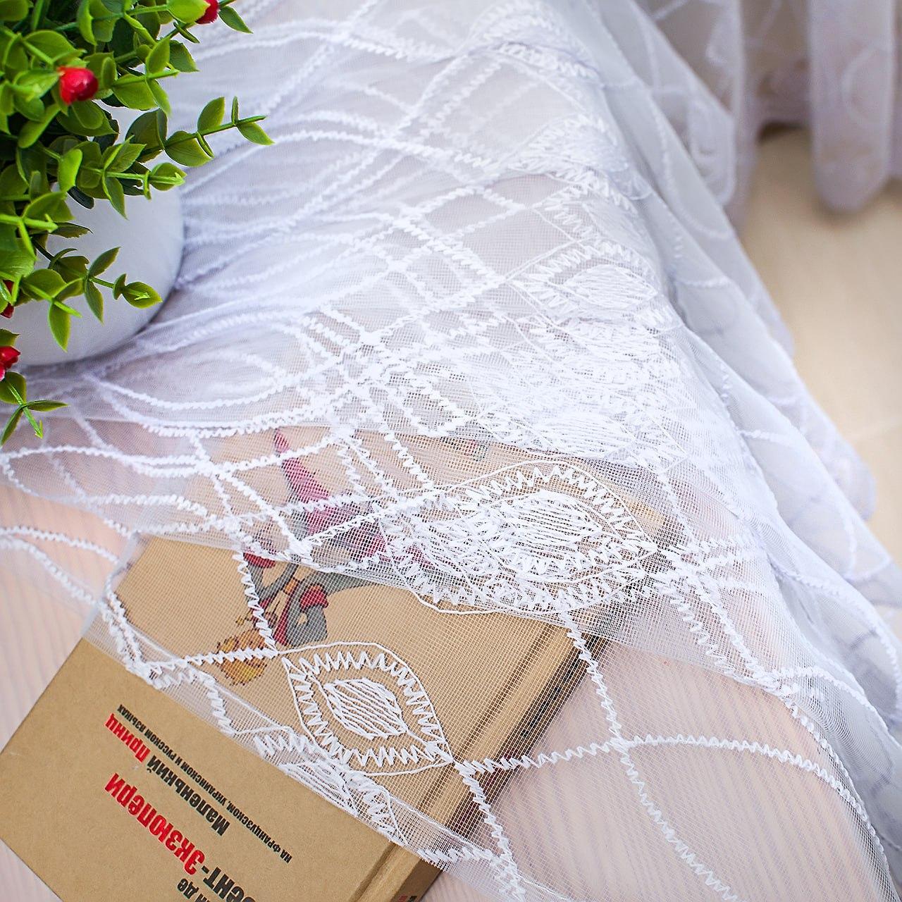 Білий тюль фатин з вишивкою (Туреччина)