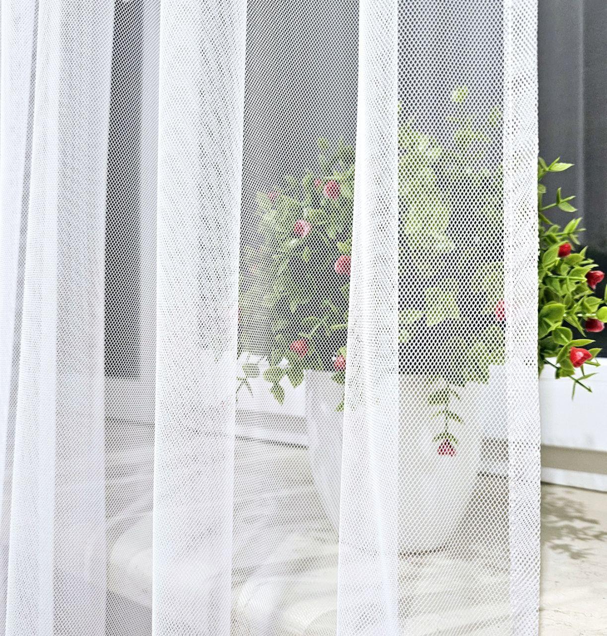 Білий тюль грек сітка з обтяжувачем. Однотонний тюль білого кольору в зал, спальню, вітальню