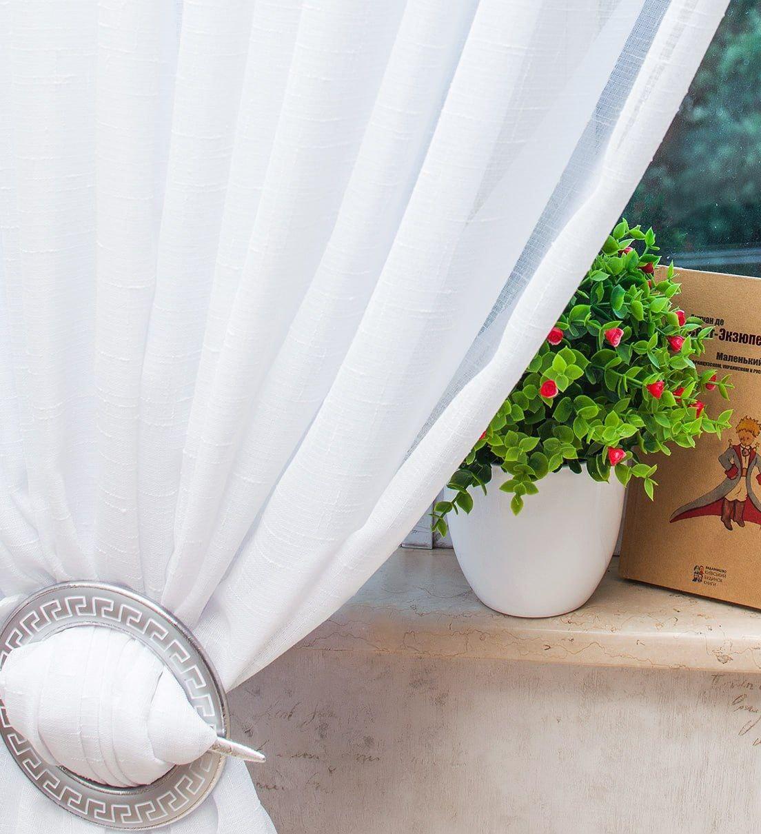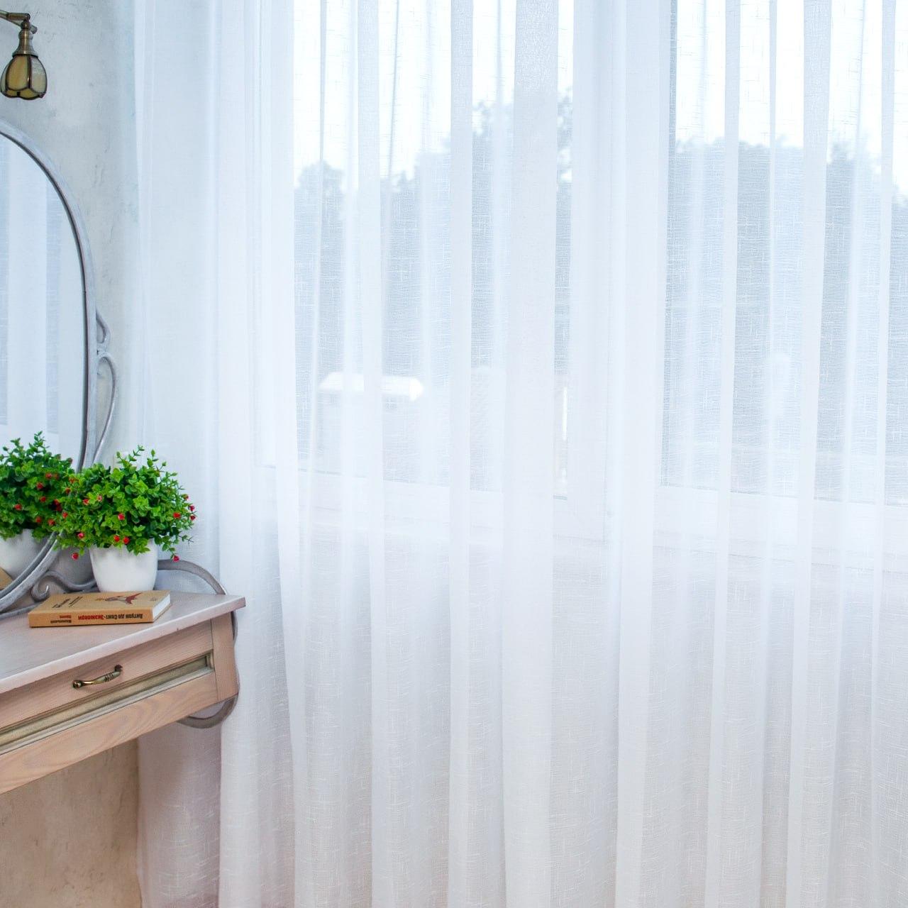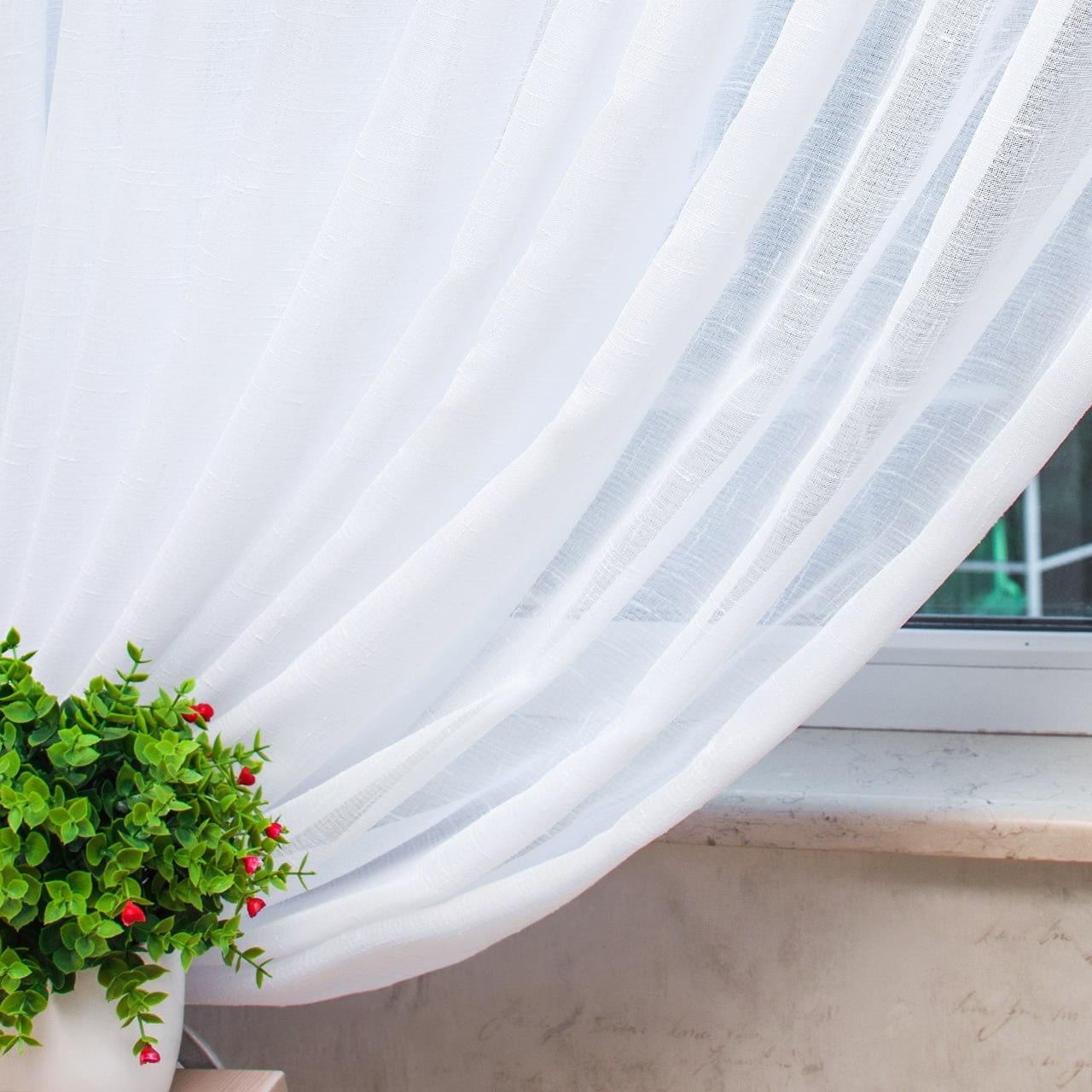 Білий тюль льон Hayat (Туреччина). Однотонний тюль білого кольору