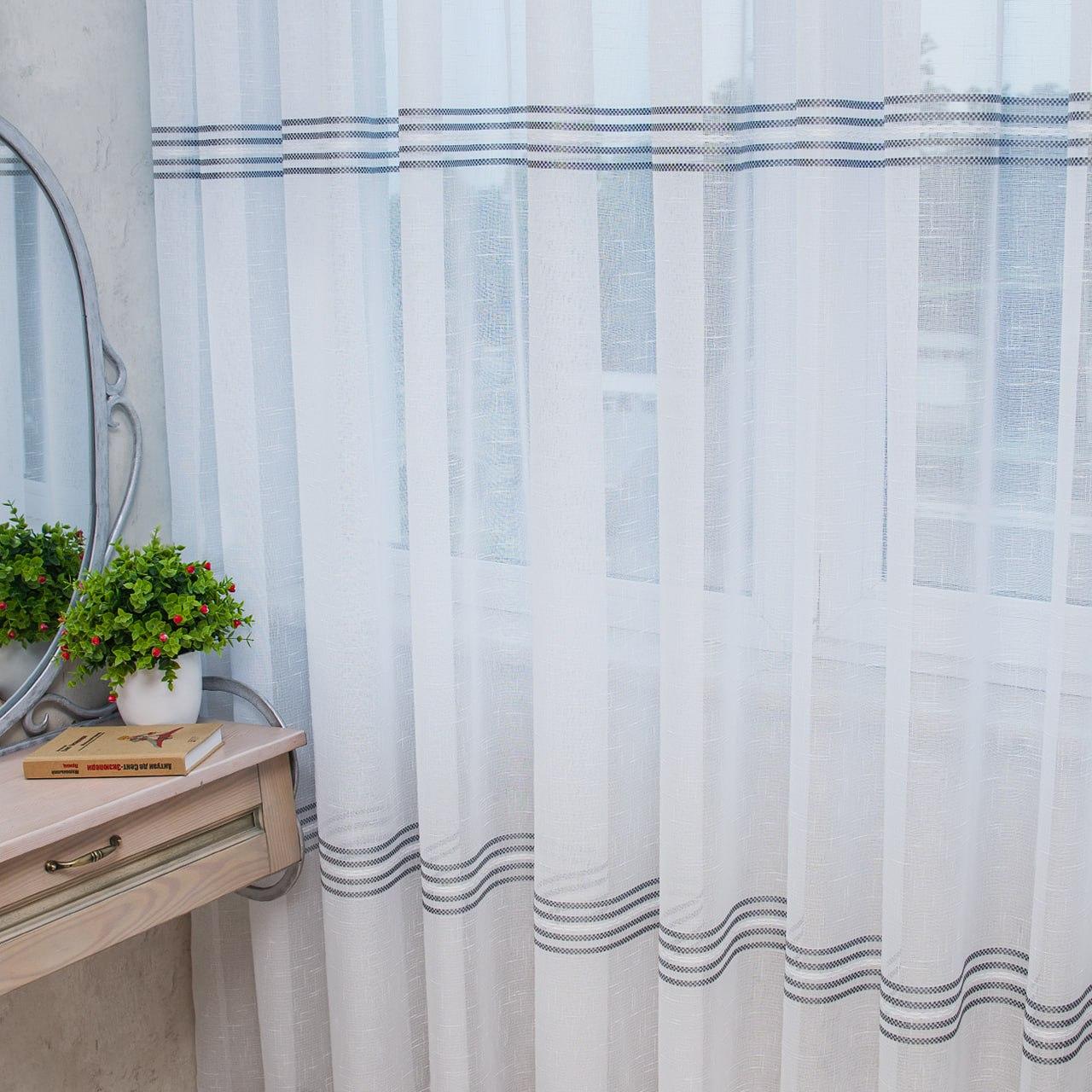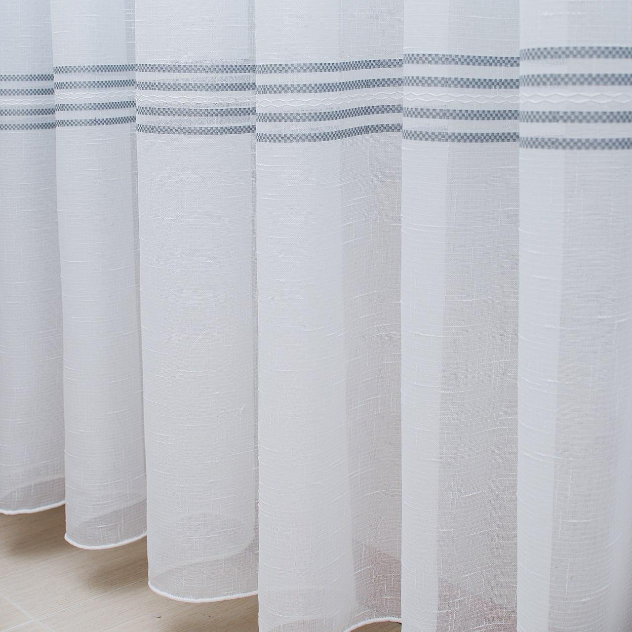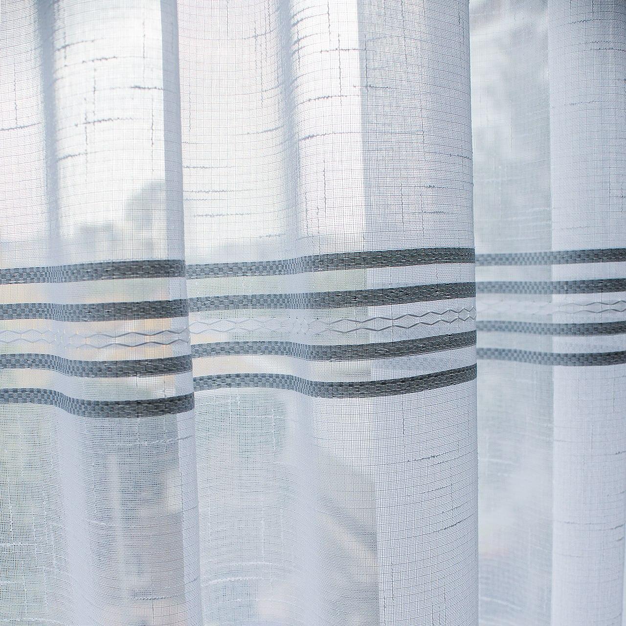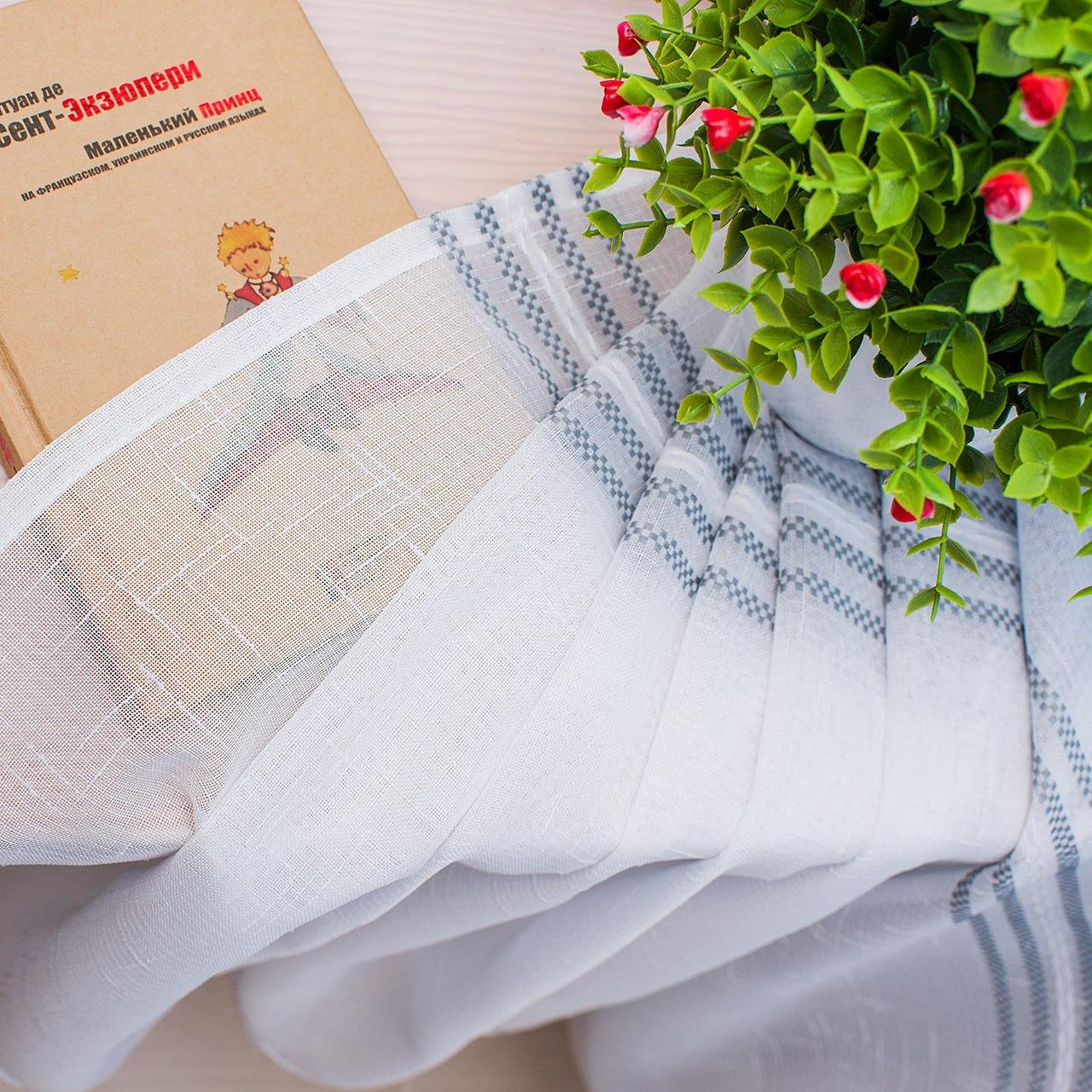 Білий тюль льон з сірими смугами