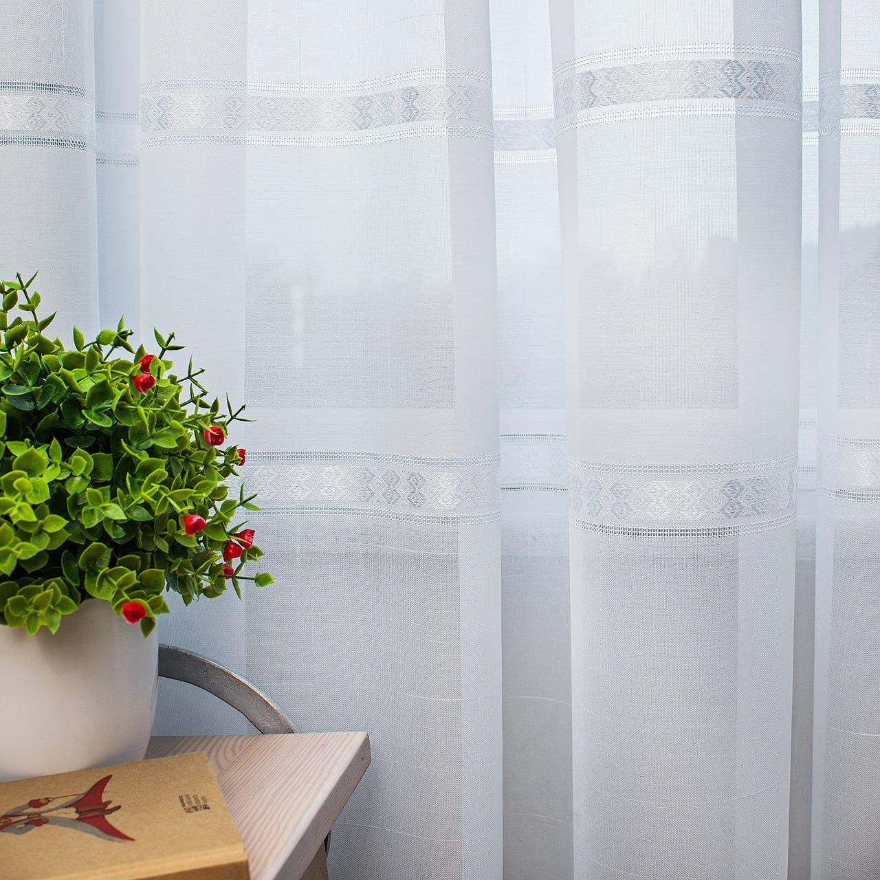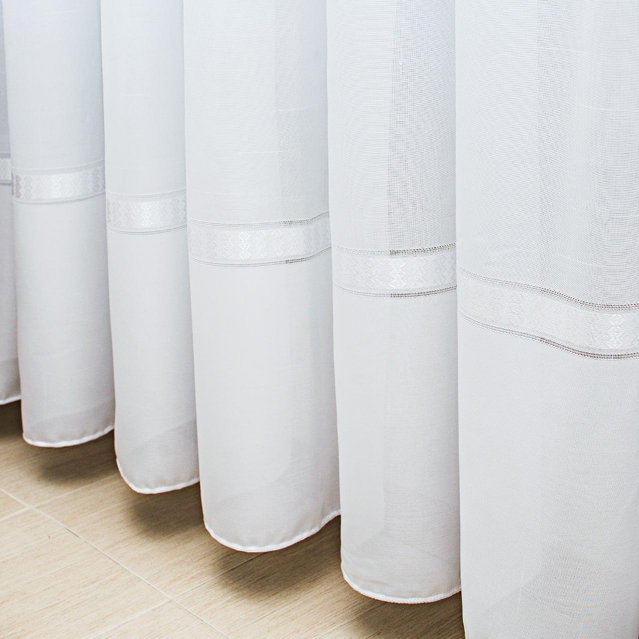 Або замовити пошиття готового тюля. До послуги входить: пошиття тасьми з петельками під гачки (тасьма на карниз трубу або люверси), обробка всіх країв після відрізу від рулону, пошиття на індивідуальну висоту.