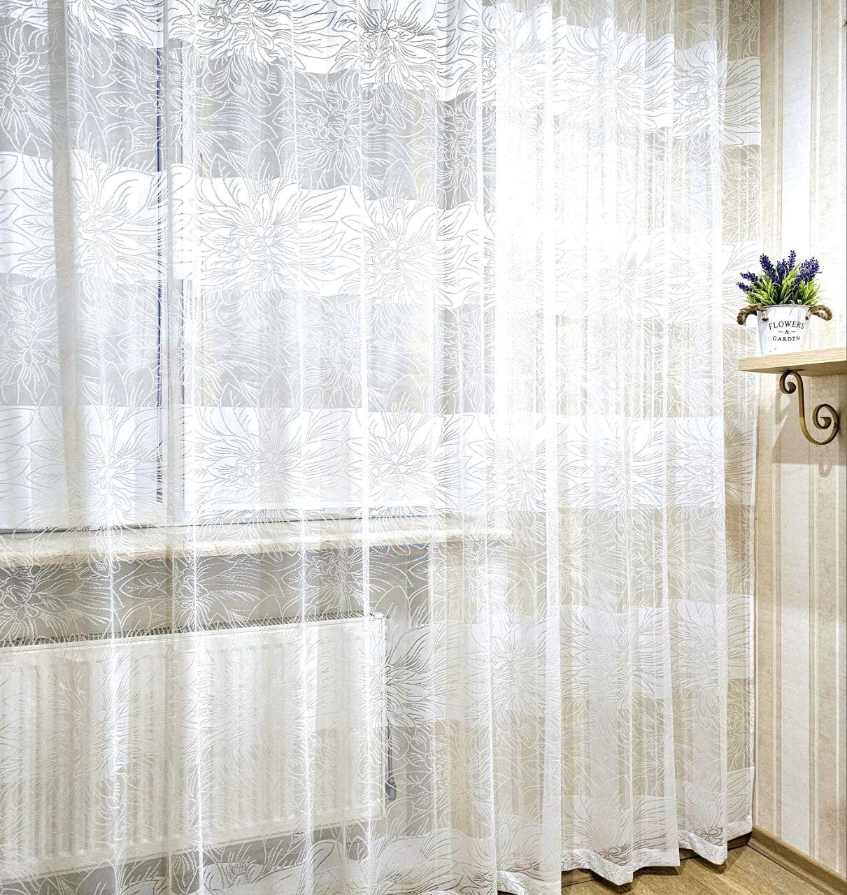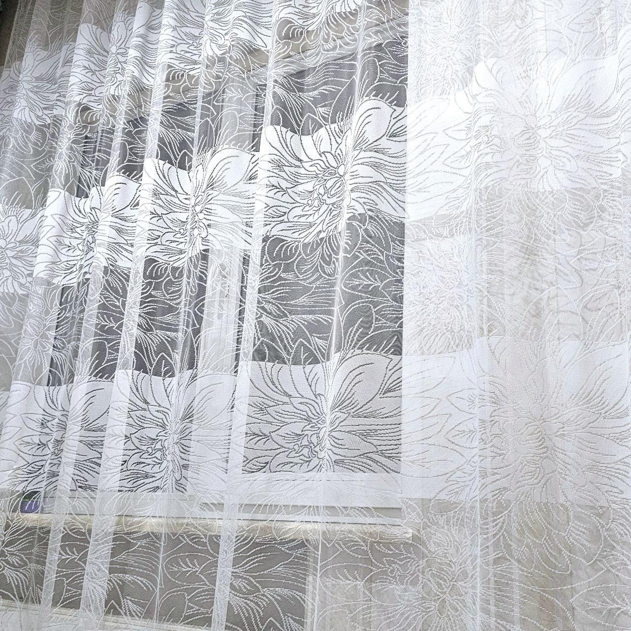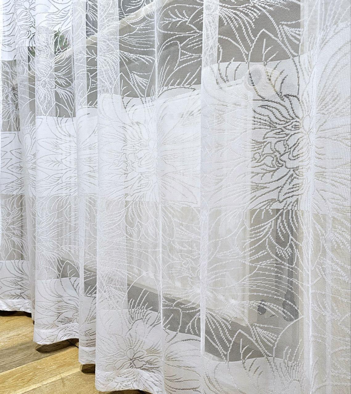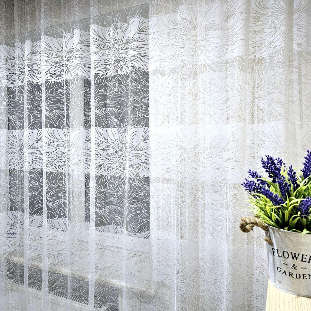 Білий тюль жаккард. Тюль білого кольору в спальню, зал, вітальню