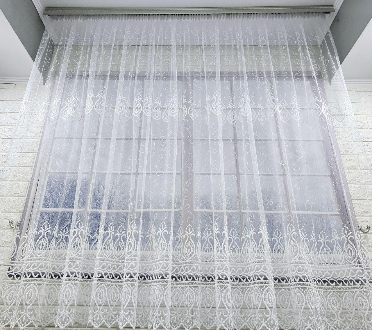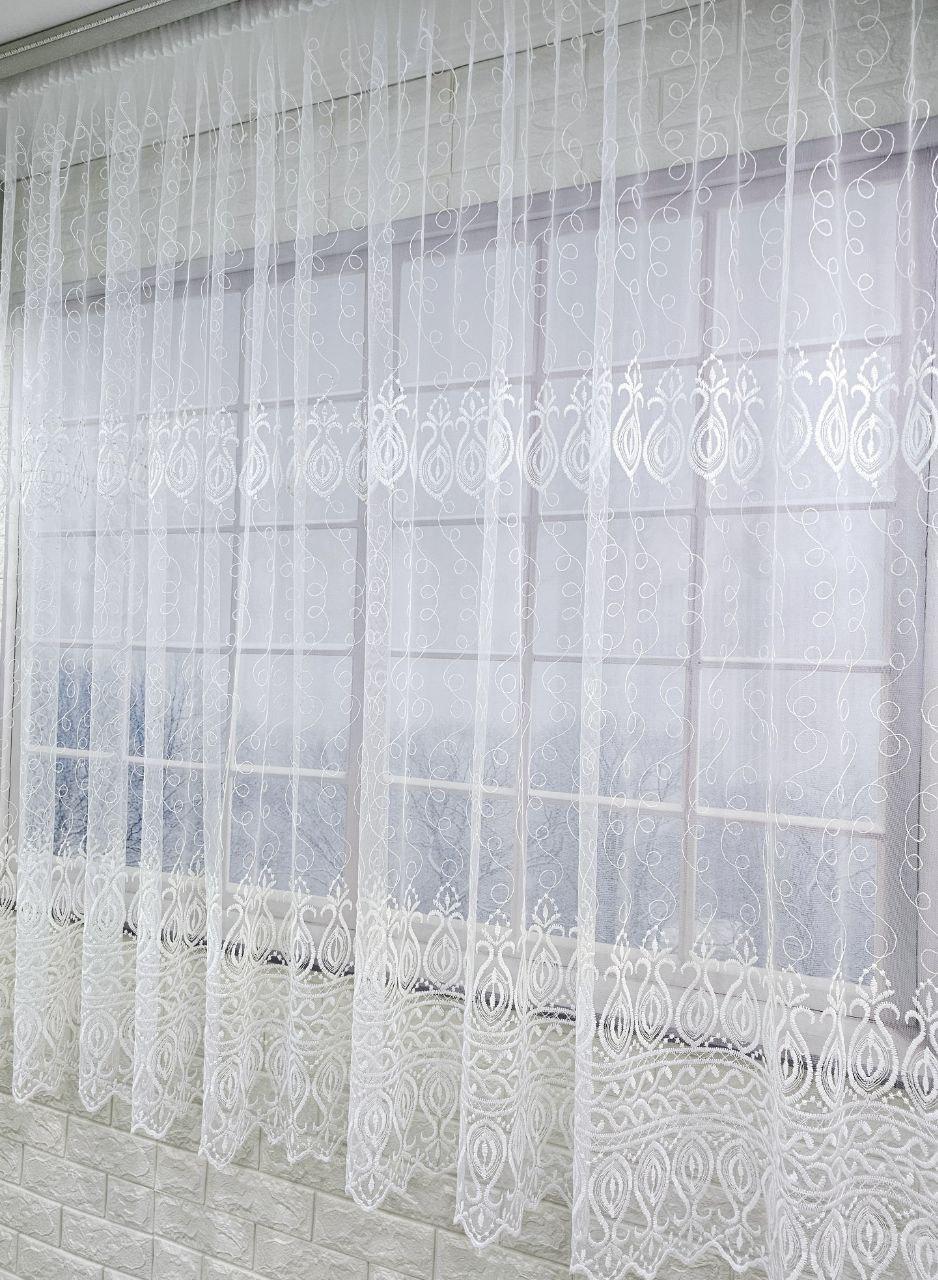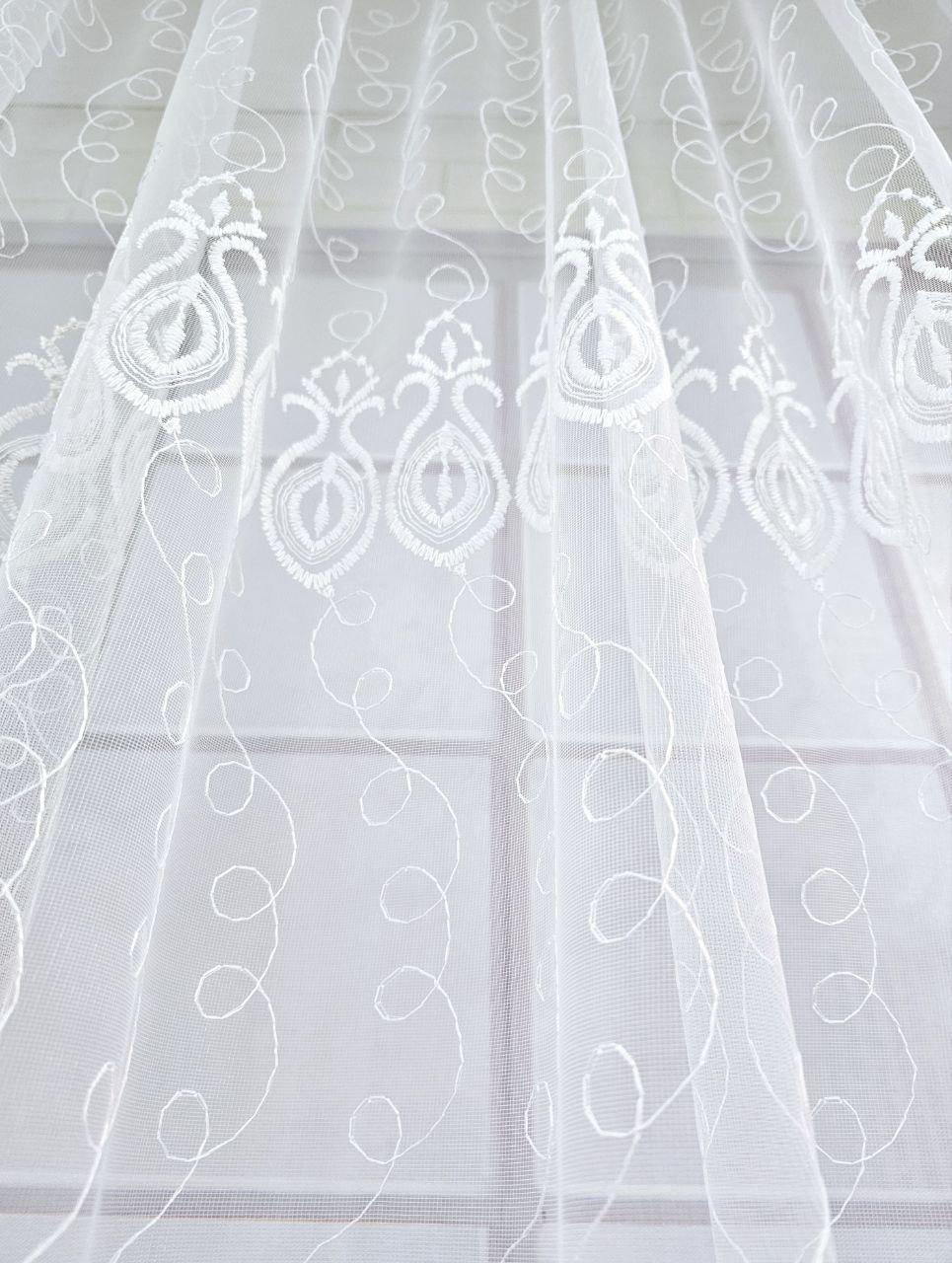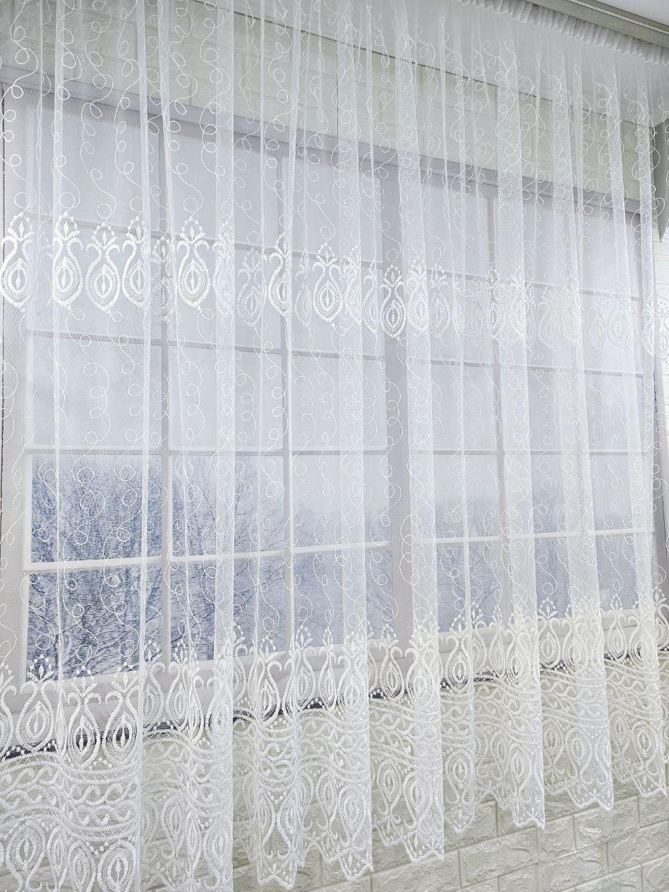 Готовий короткий тюль фатин з вишивкою, колір білий (2м*1,45м)