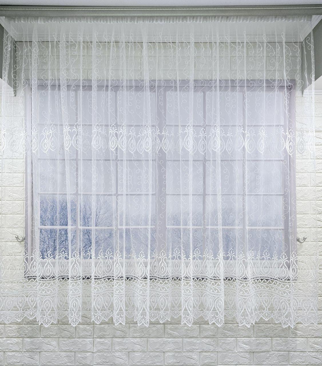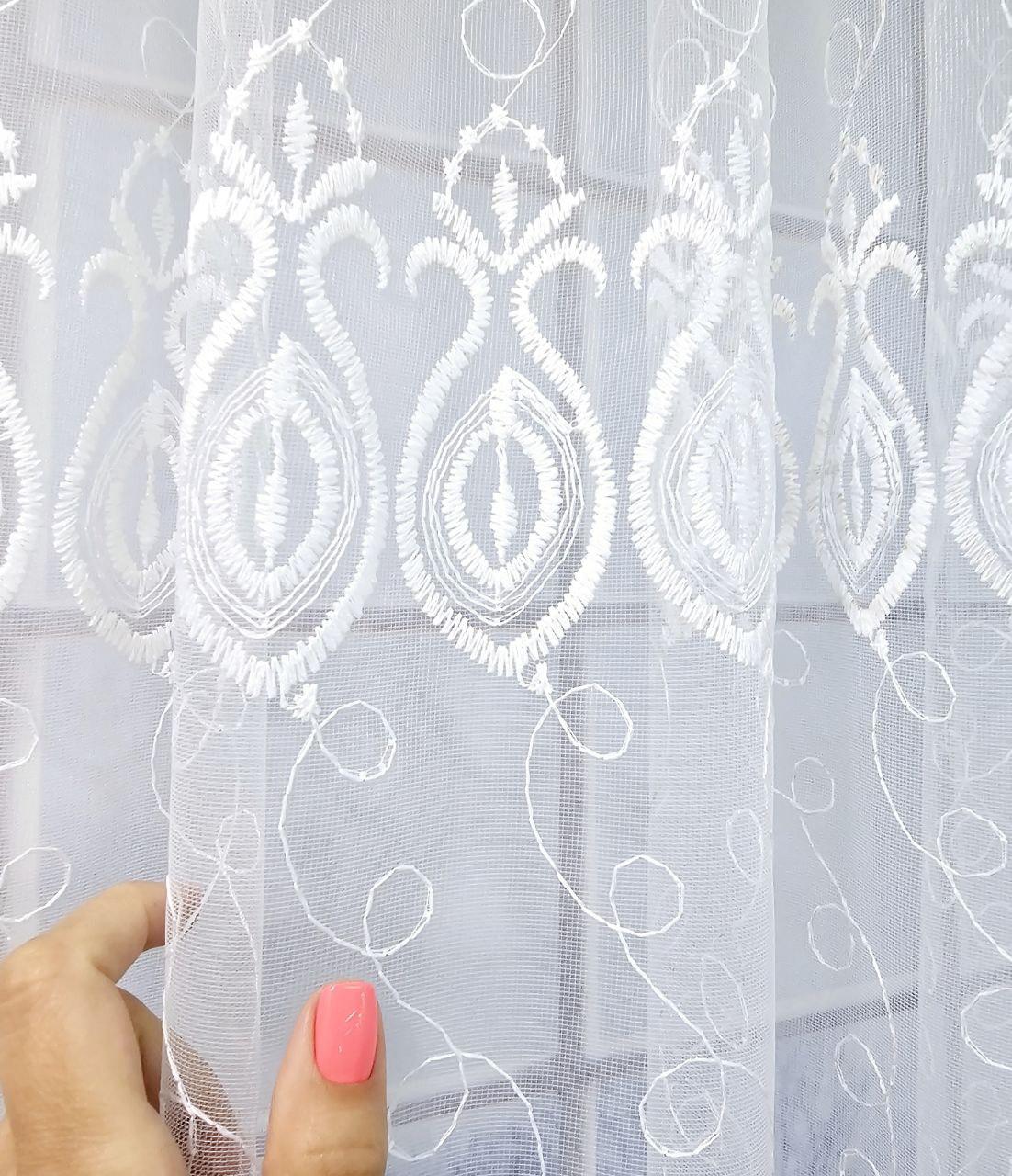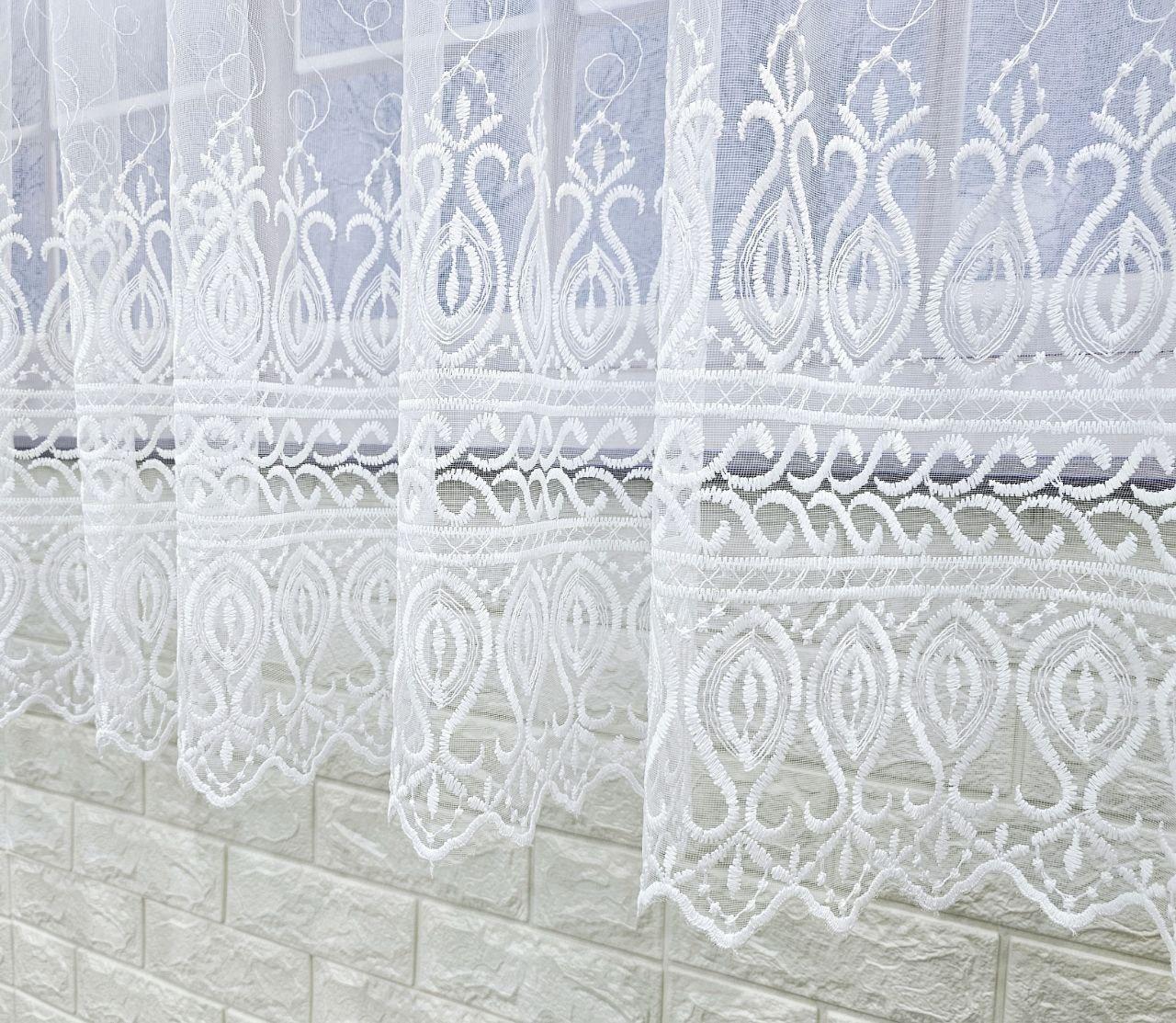 Готовий короткий тюль фатин з вишивкою, колір білий (2м*1,45м)