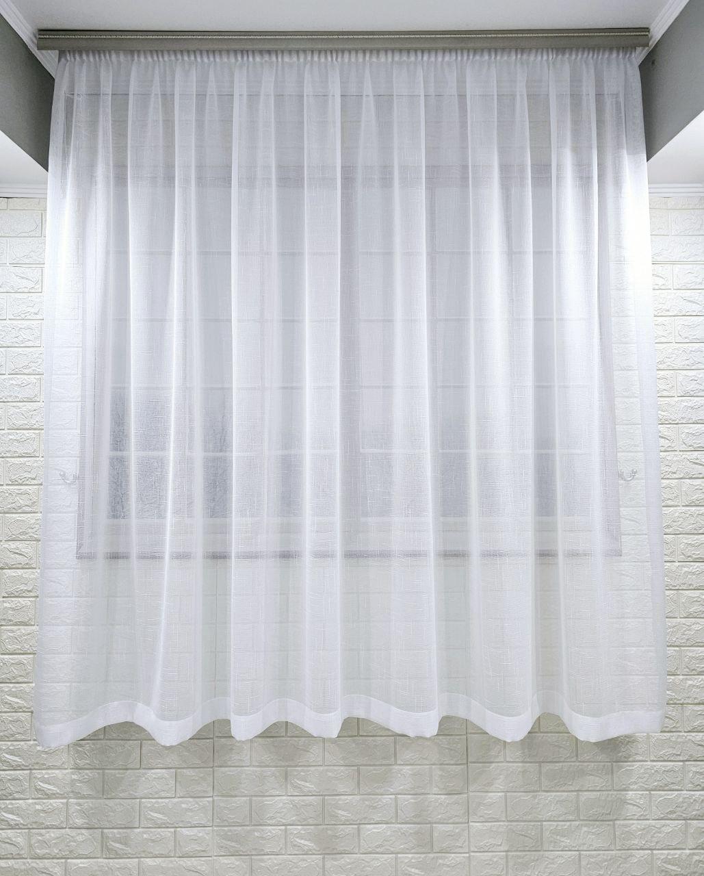 Готовий короткий тюль льон, колір білий