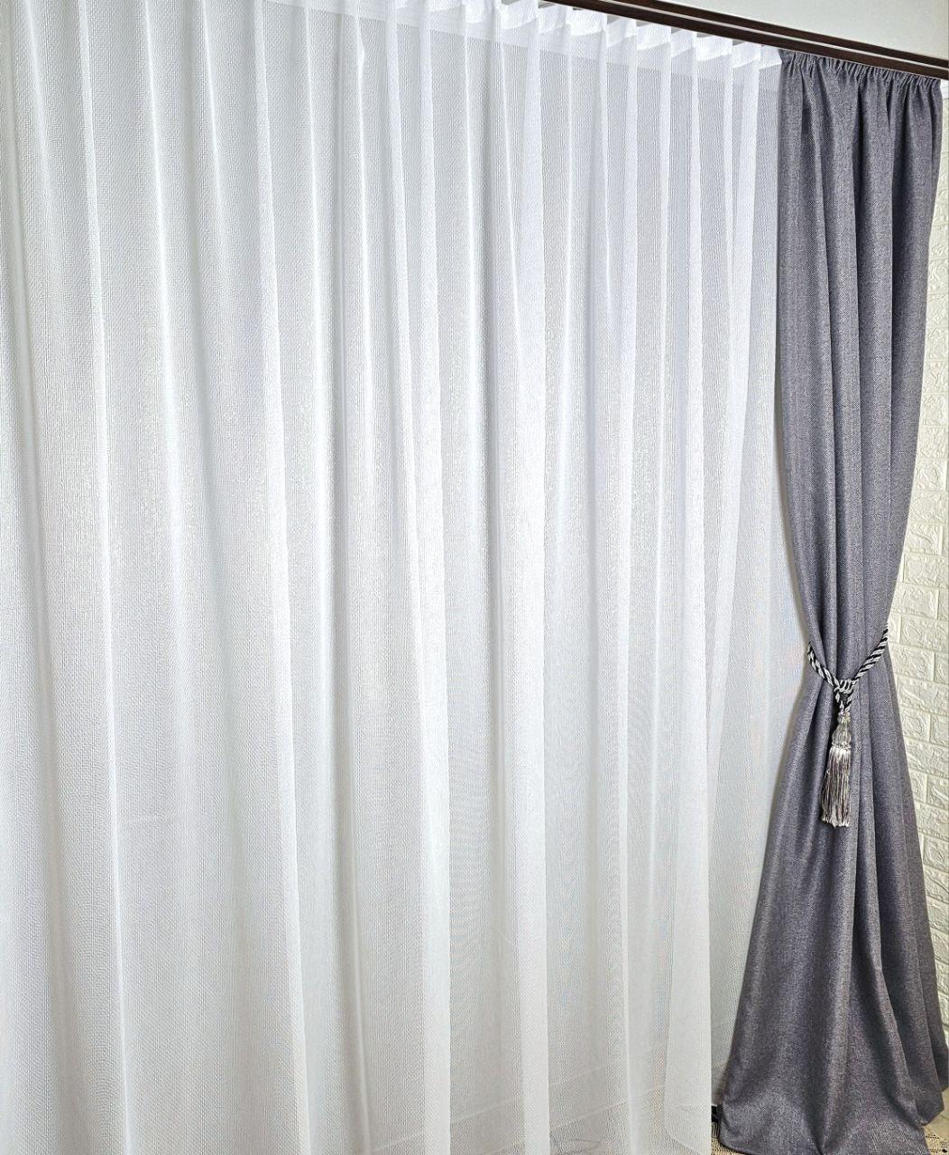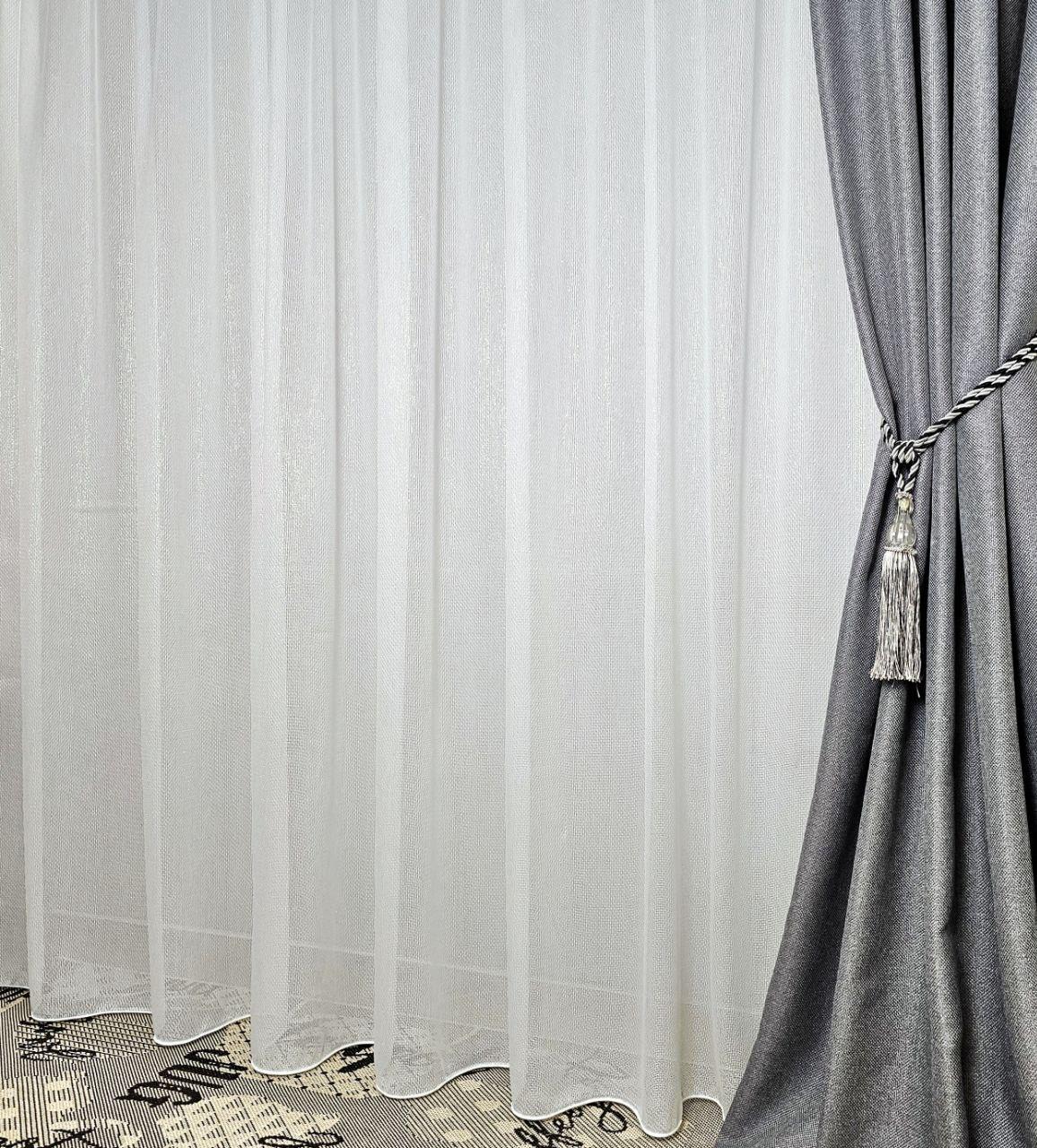 Готовий щільний тюль льон білий, з люрексовою ниткою (3м*2,3м)