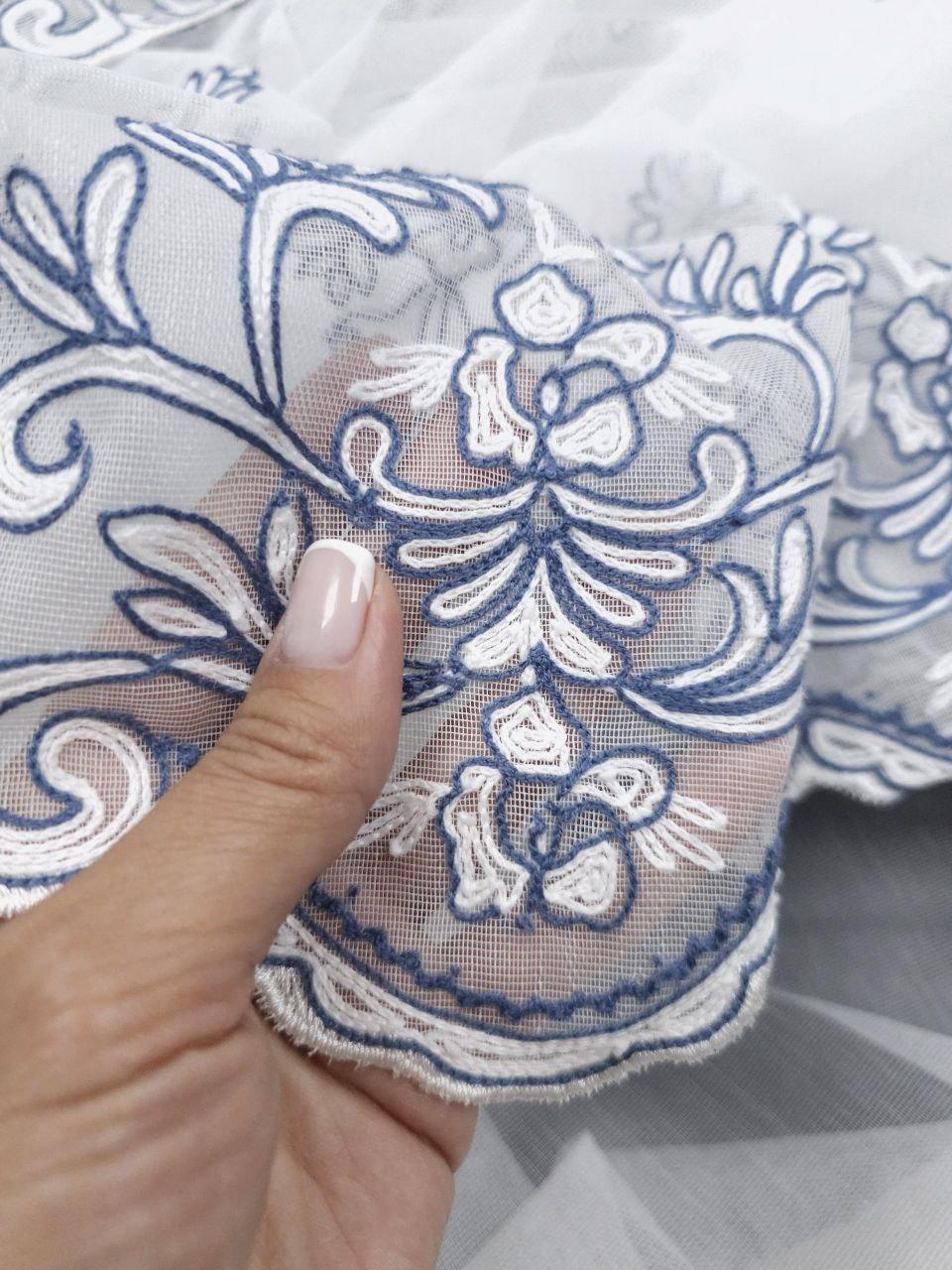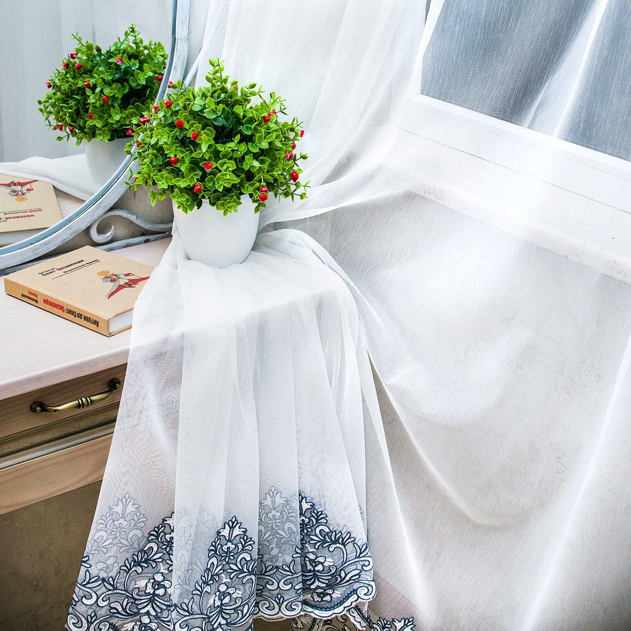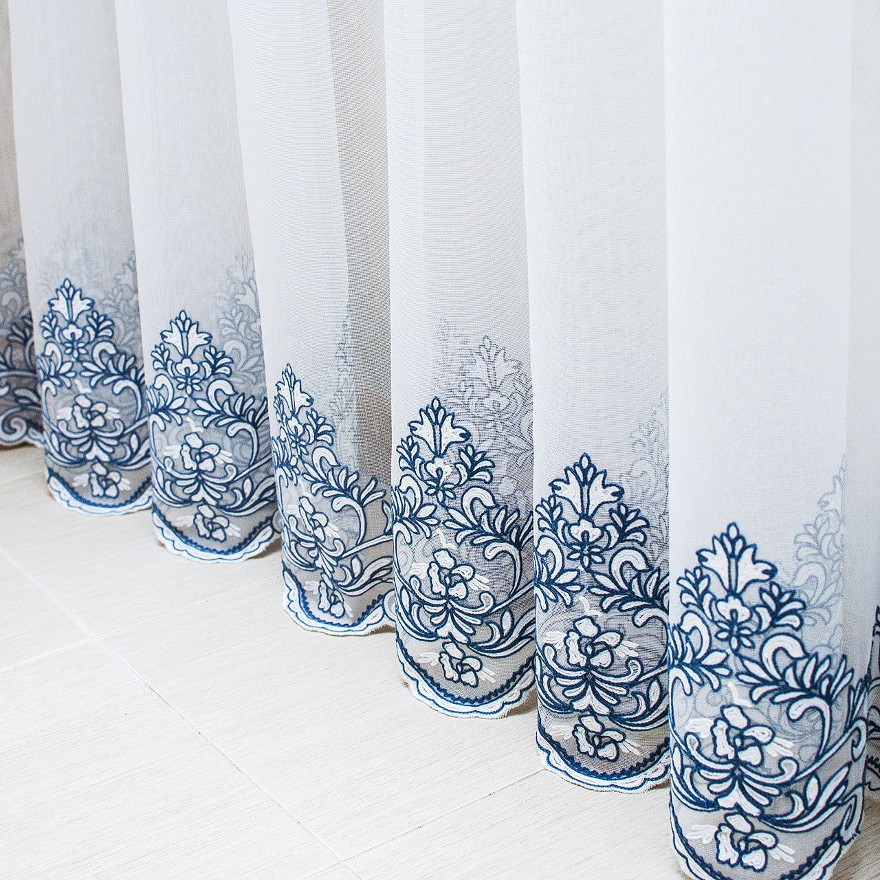 Готовий тюль бамбук з вишивкою по низу, колір білий (4м*2,6м)