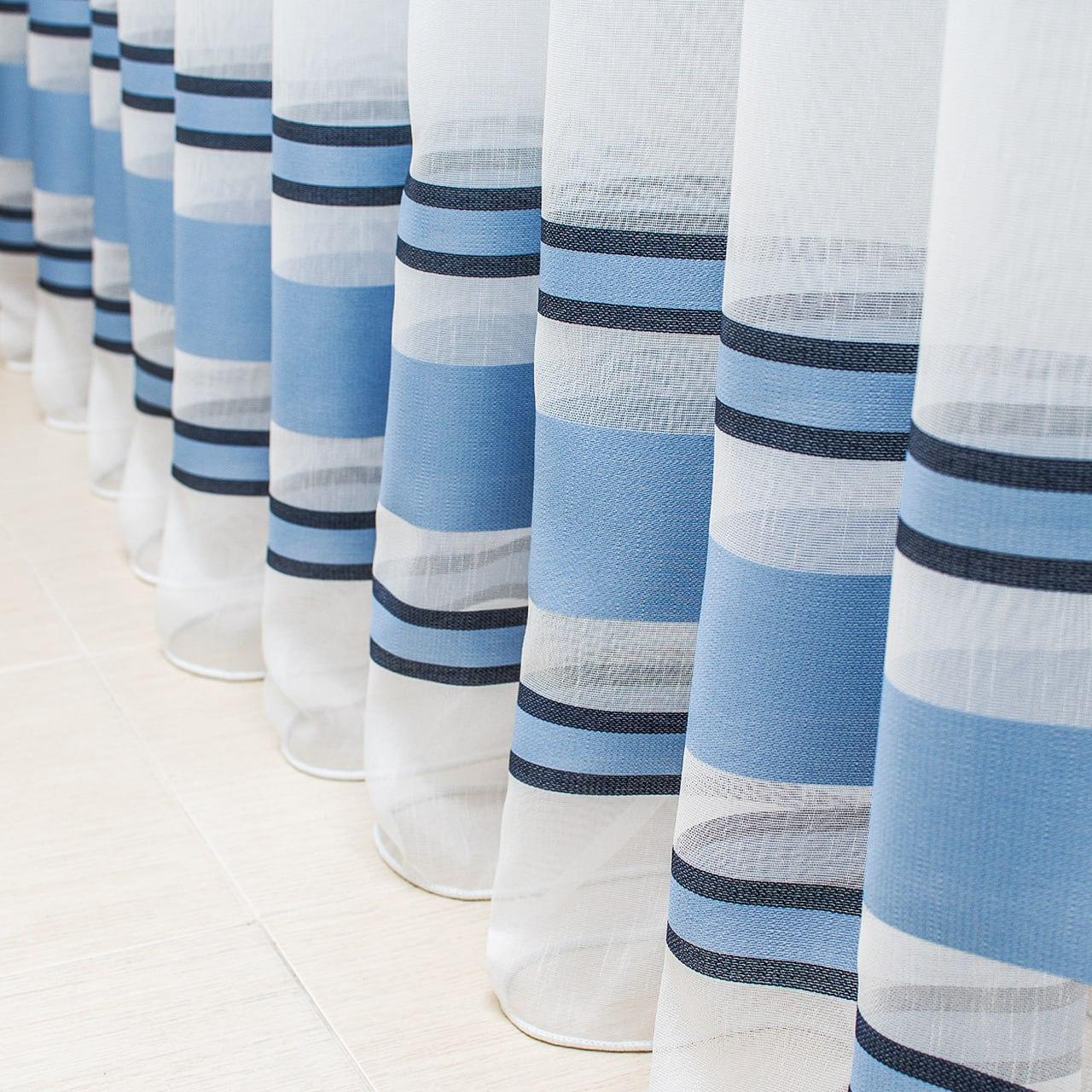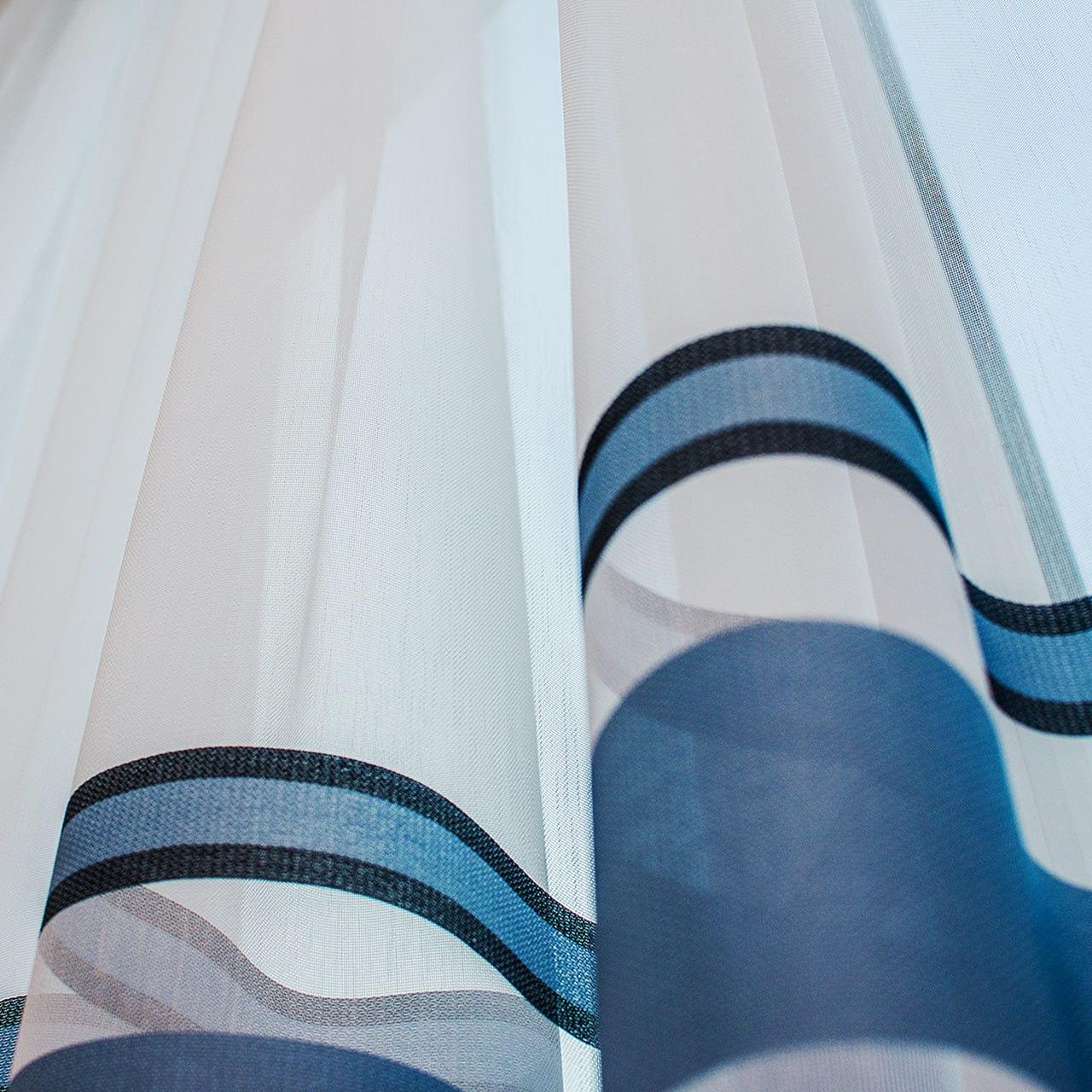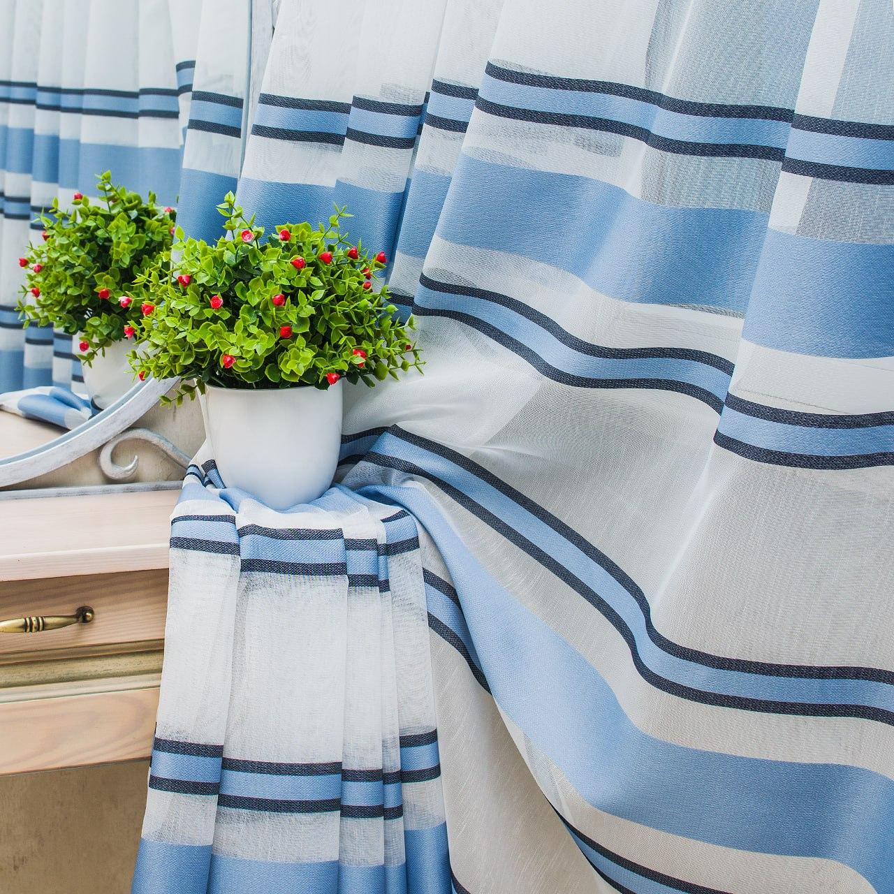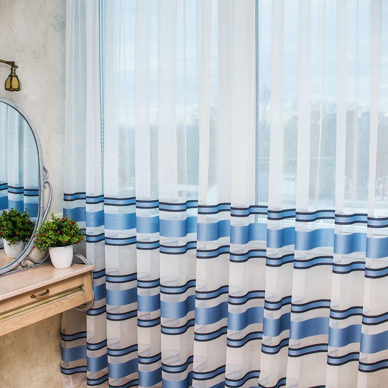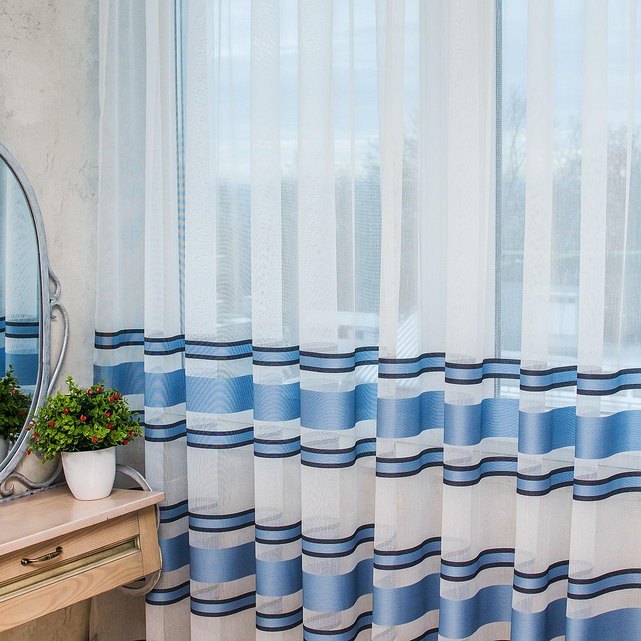 Готовий тюль бамбук зі смугами, колір білий з блакитним (3м*2,7м)
