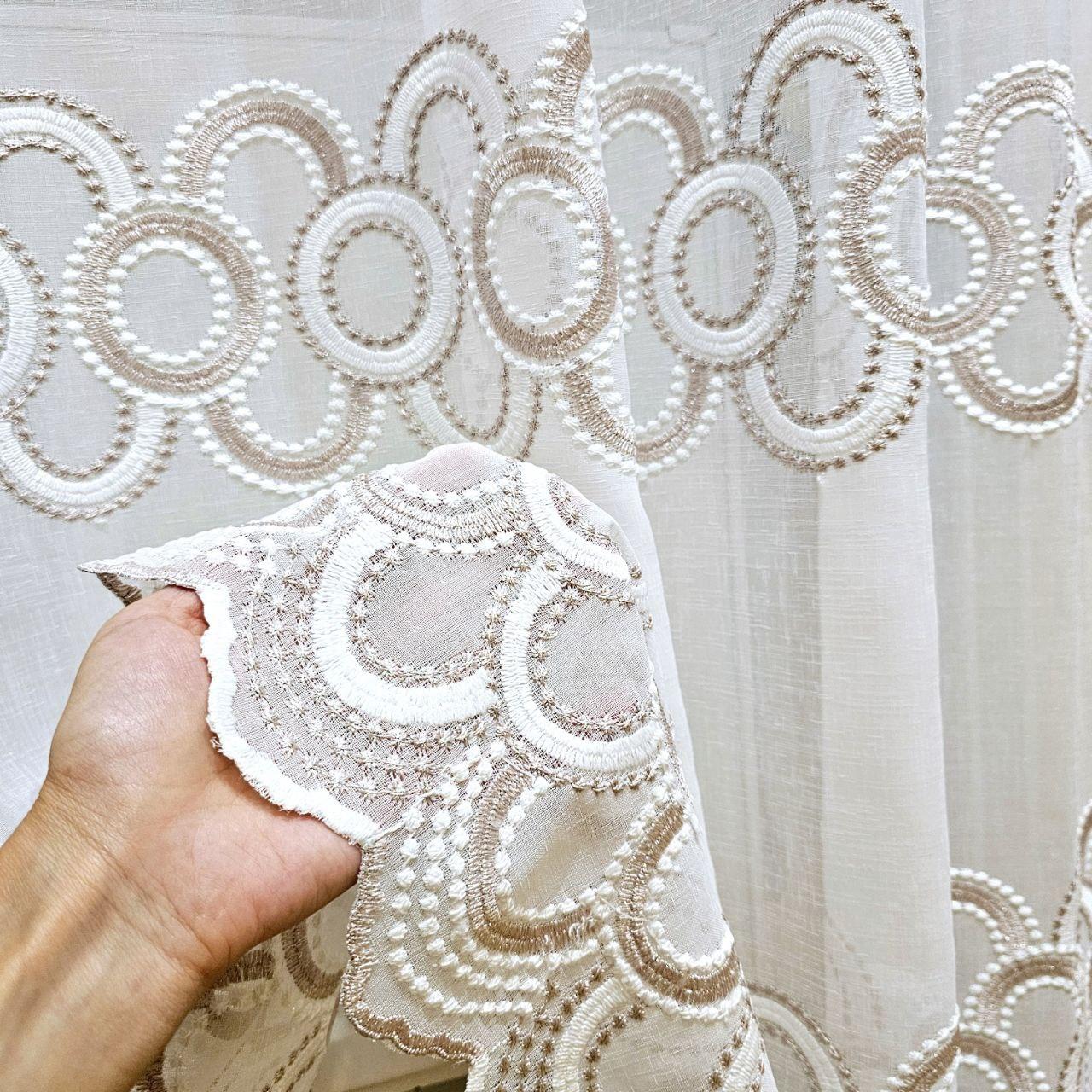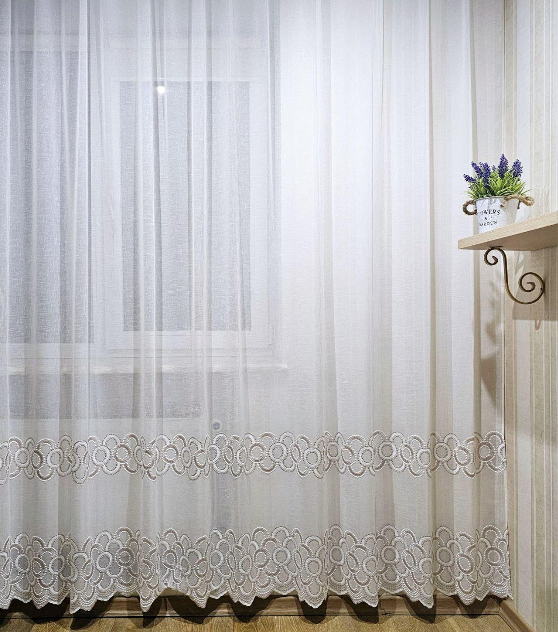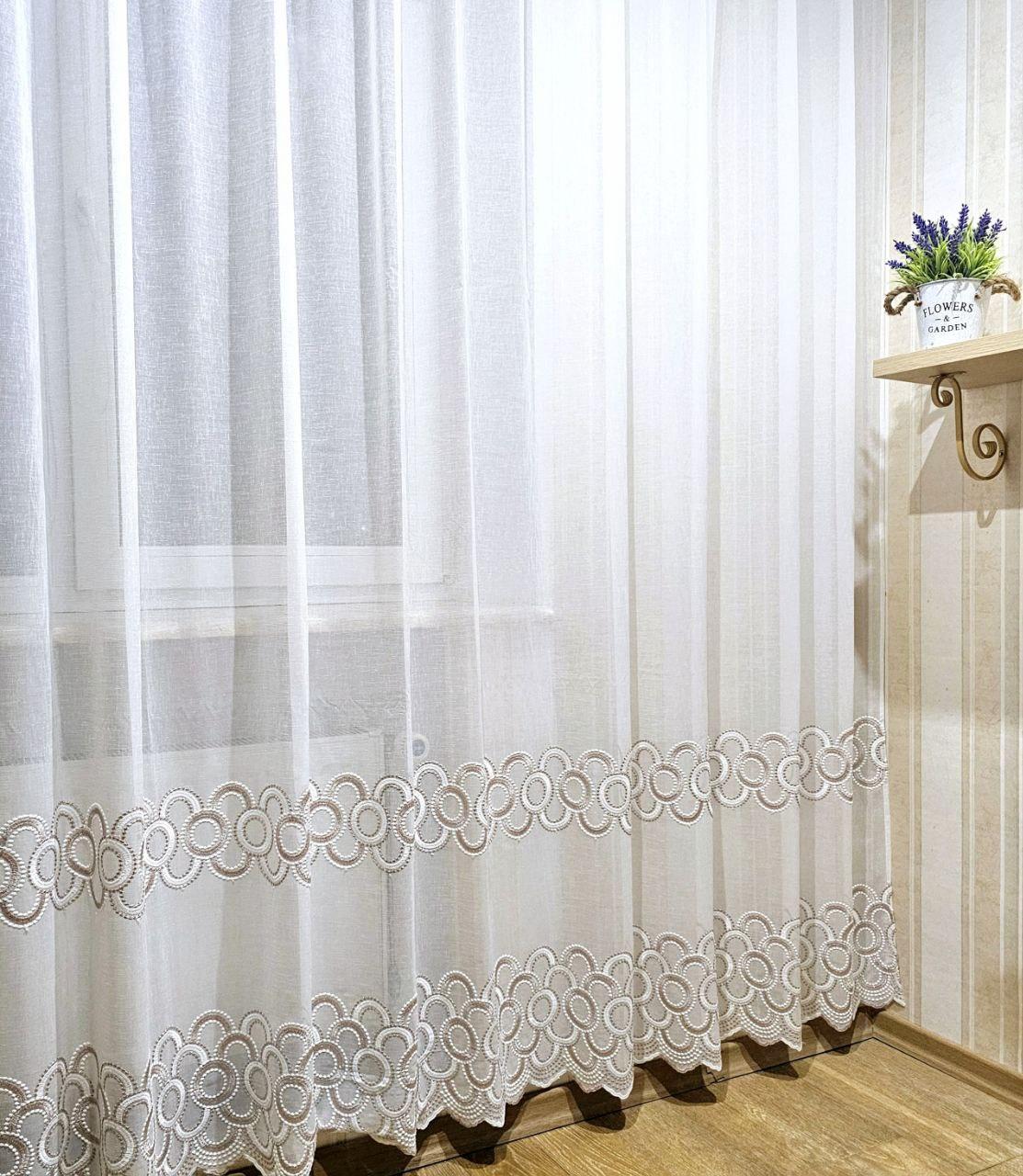 Готовий тюль льон білий з вишивкою (4м*2,7м)