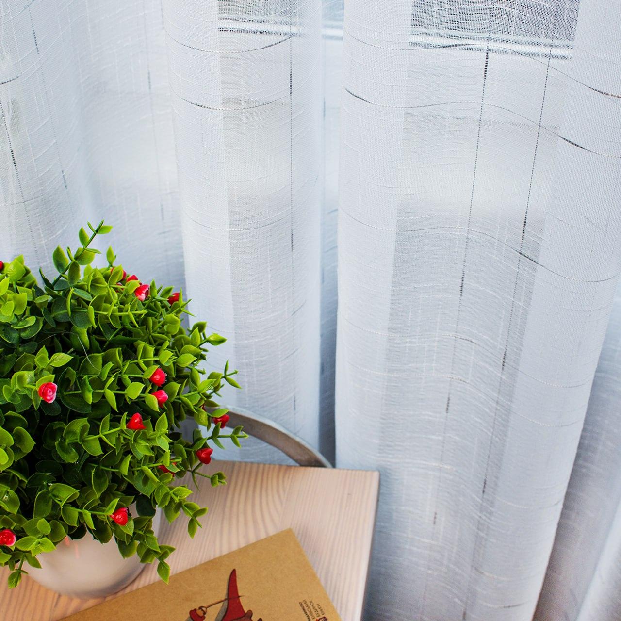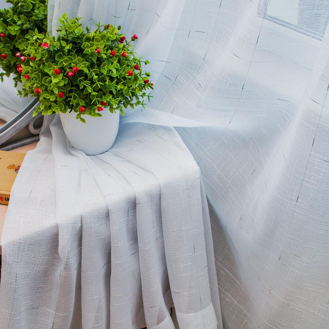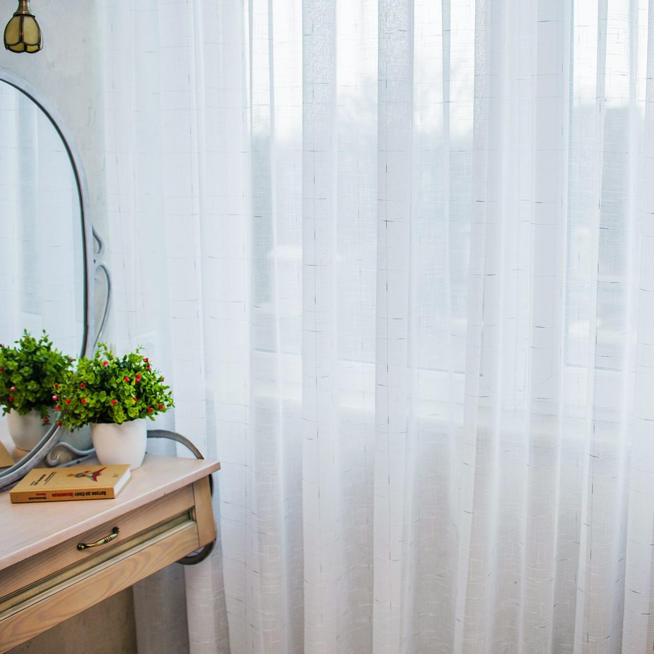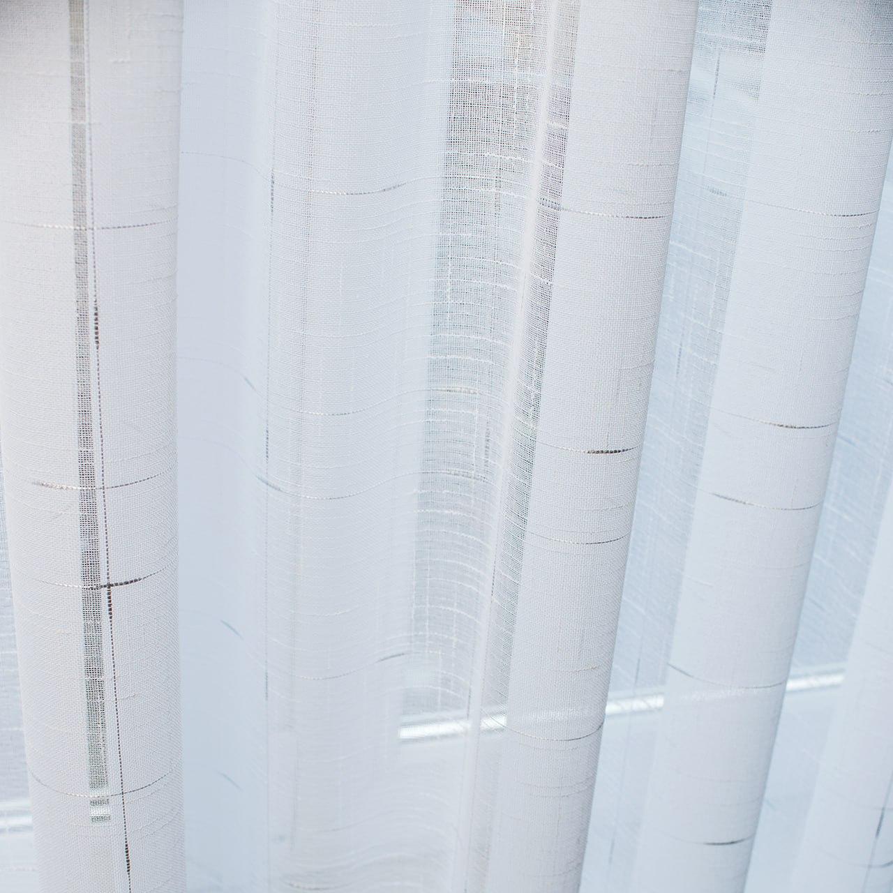 Готовий тюль льон, колір білий зі сріблястими штрихами (3,3м*2,7м)