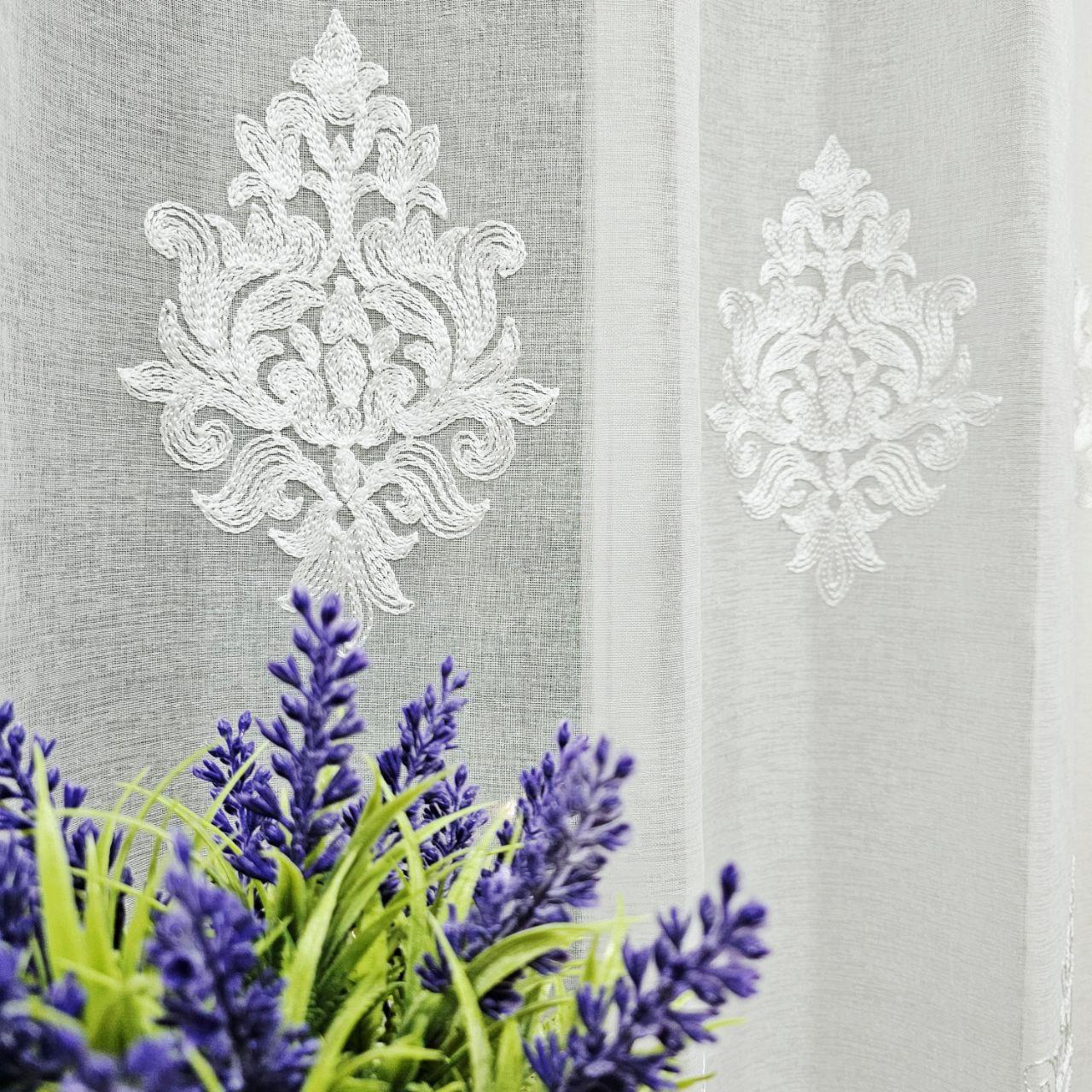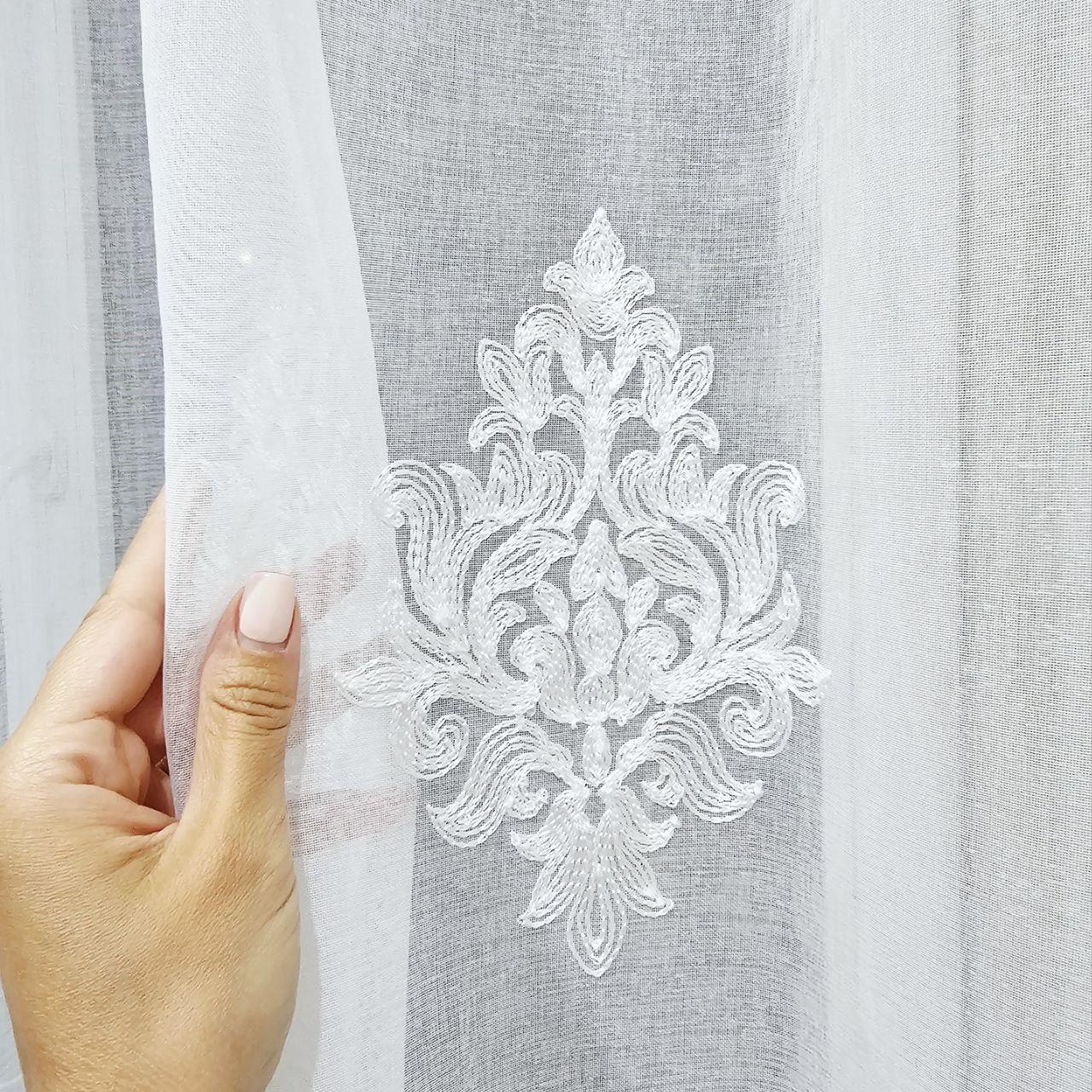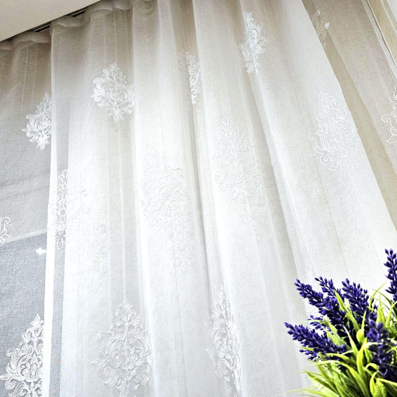Готовий тюль льон з батистом, з вишивкою. Колір білий (3,2м*2,6м)