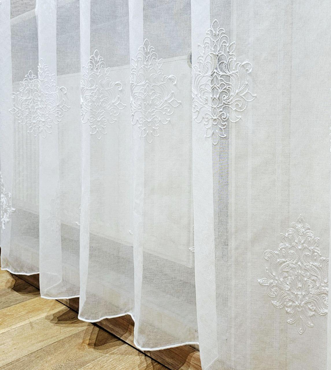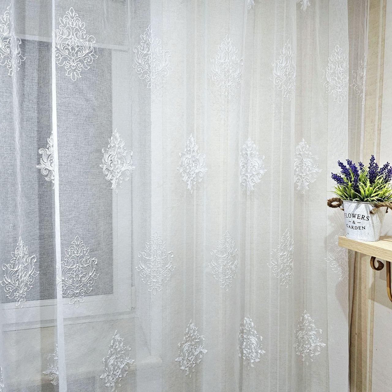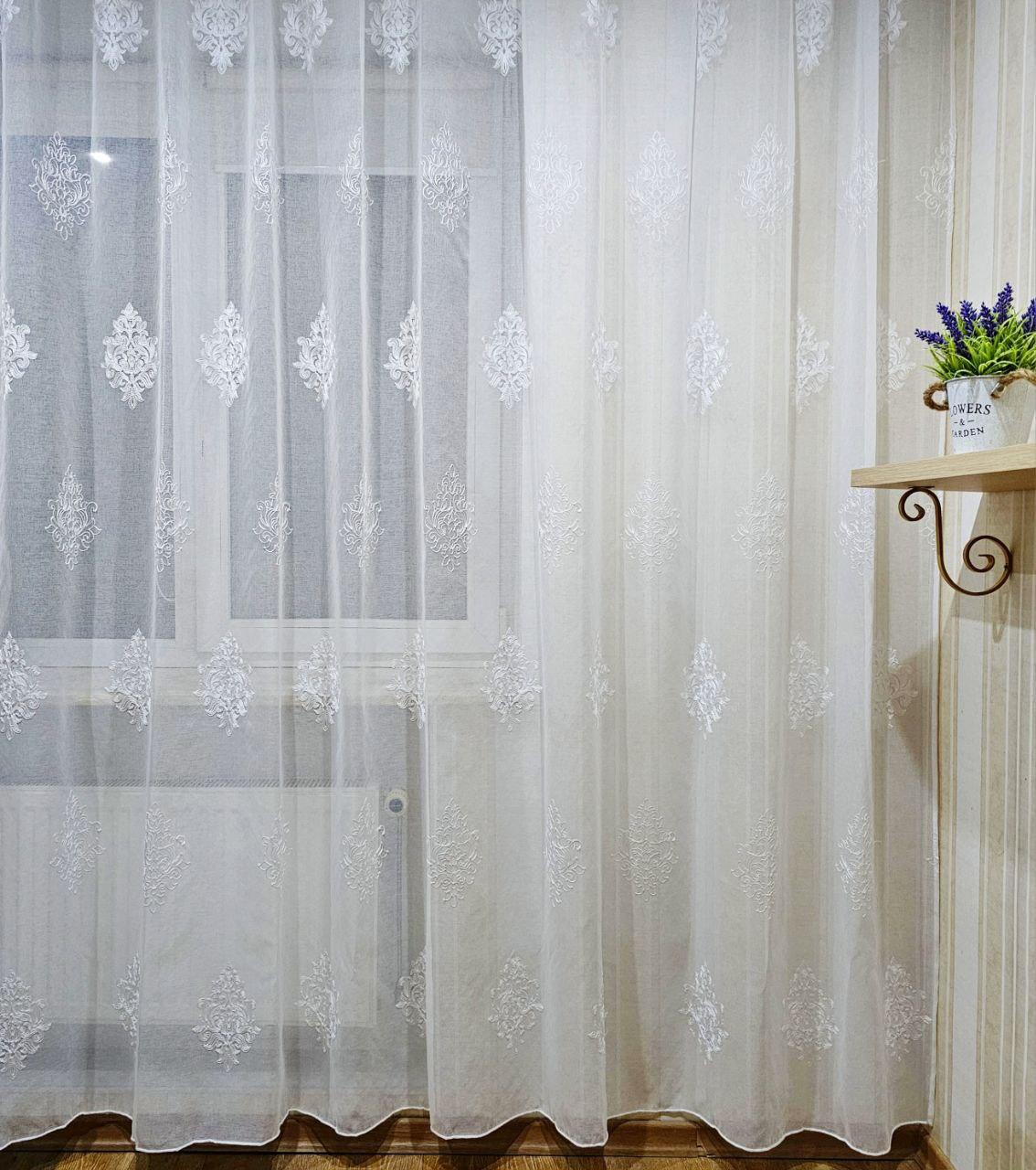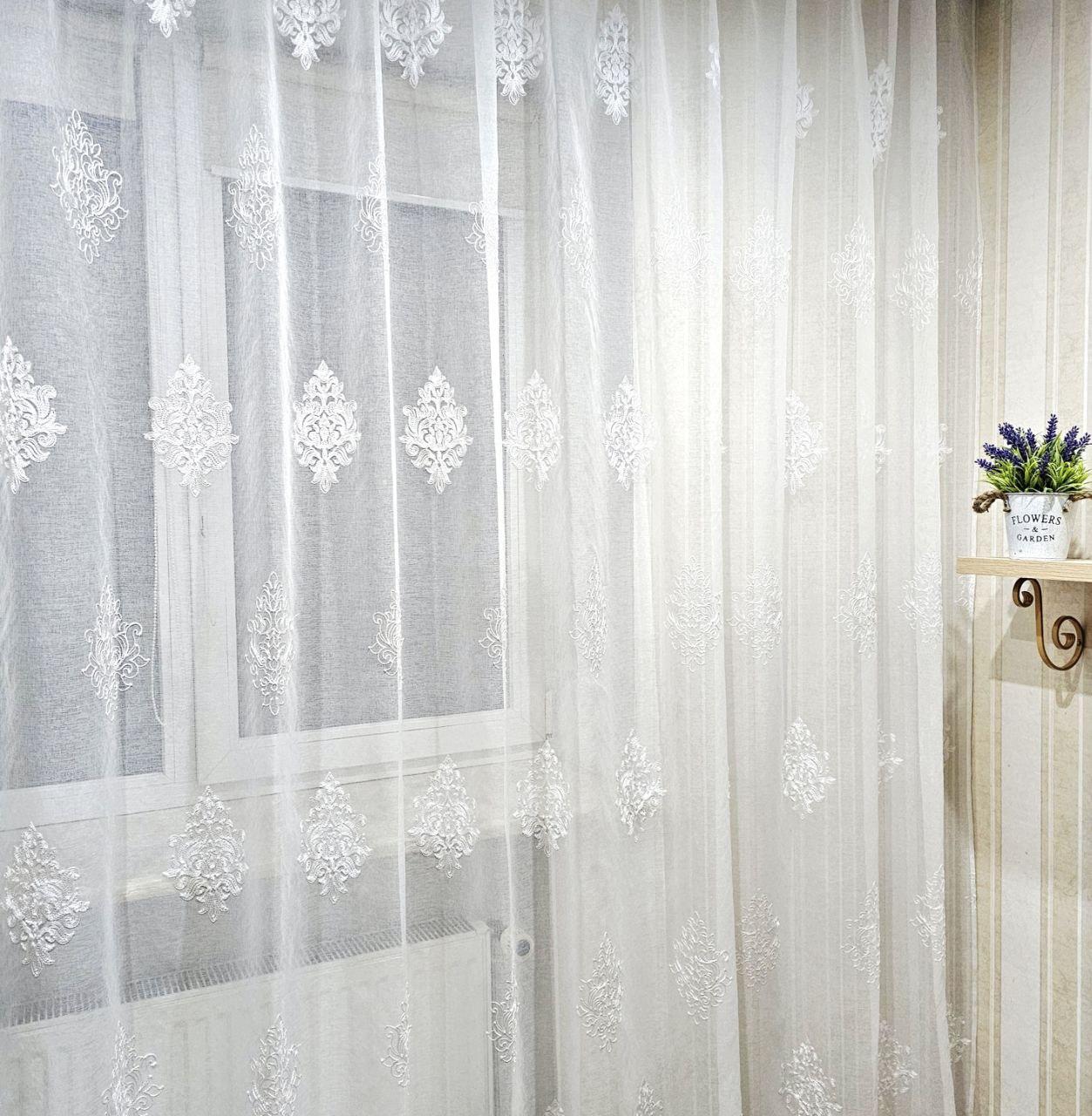 Готовий тюль льон з батистом, з вишивкою. Колір білий (3,2м*2,6м)