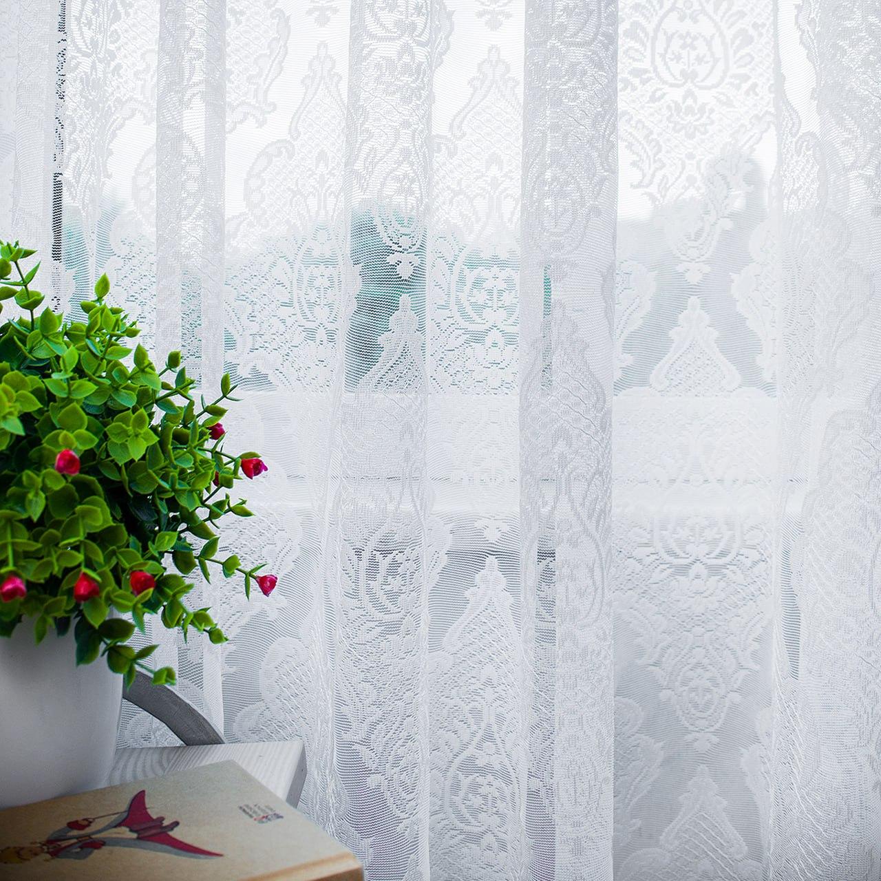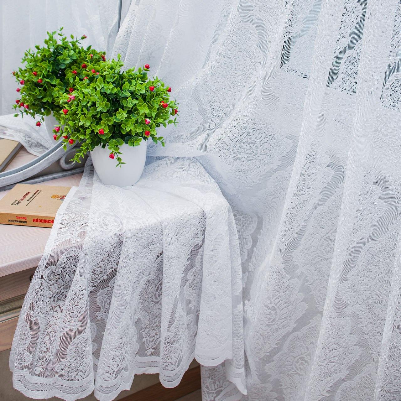 Готовий тюль жаккард з вишивкою, колір білий (2м*2,5м)