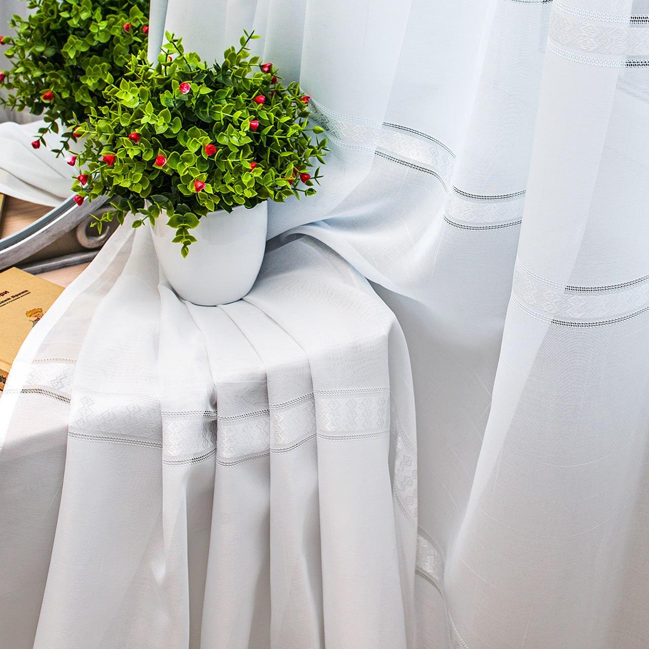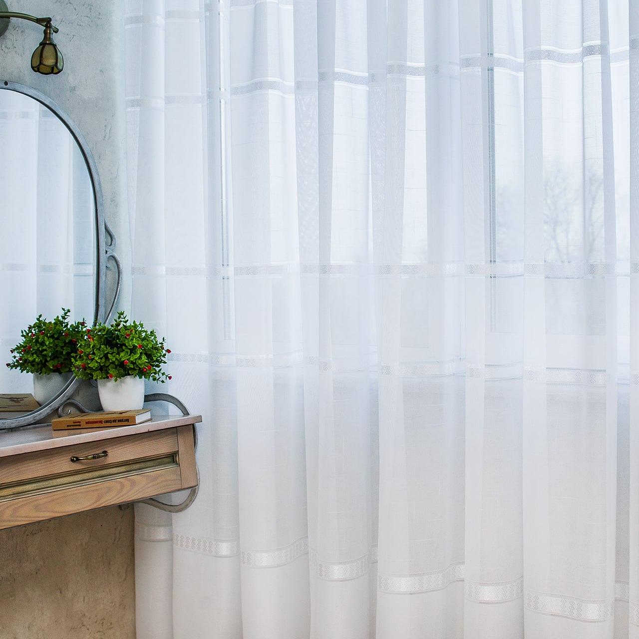 Готовий білий тюль льон зі смугами Dominica (3,5м*2,6м)