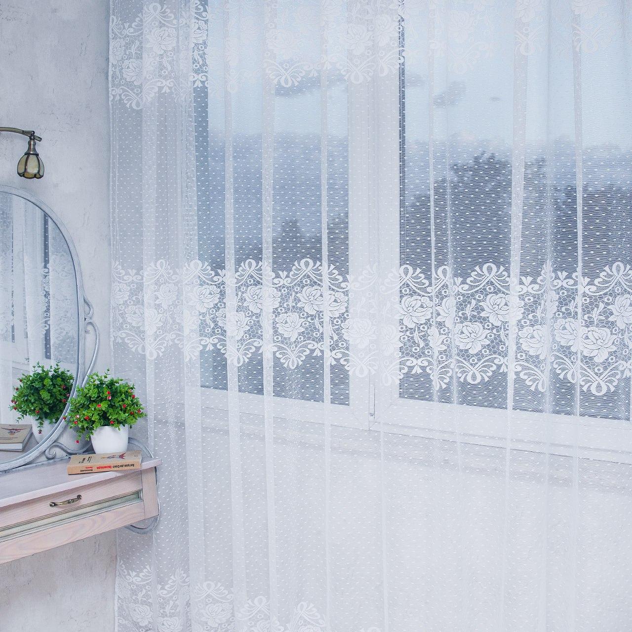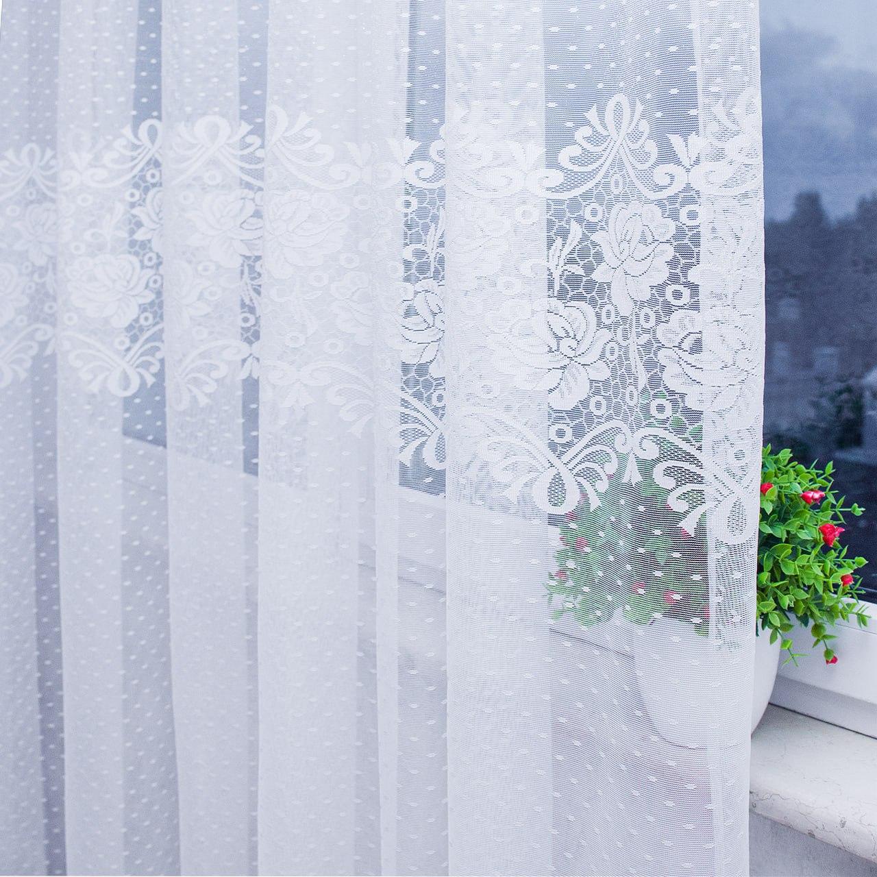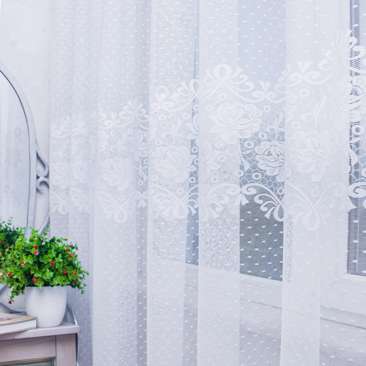 Готовий тюль жаккард, колір білий (3м*2,6м)