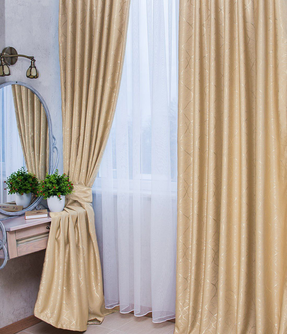Комплект бежеві штори блекаут льон рогожка. Готові штори бежевого кольору в спальню, зал, вітальню
