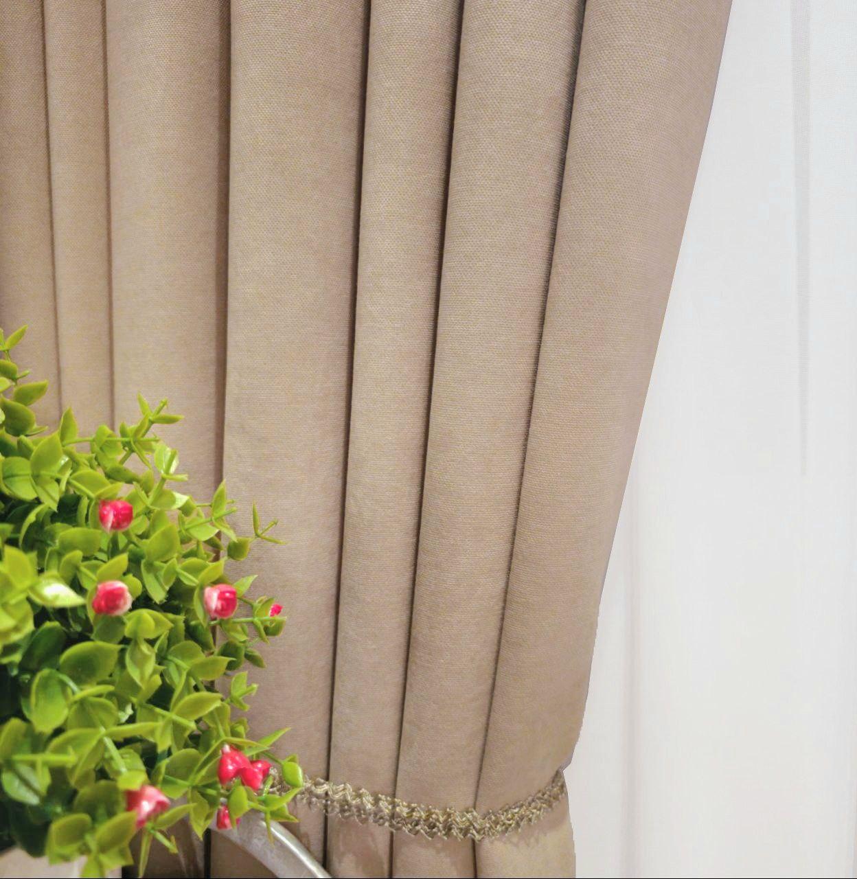 Комплект бежеві штори мікровелюр Diamond. Готові штори бежевого кольору в спальню, зал