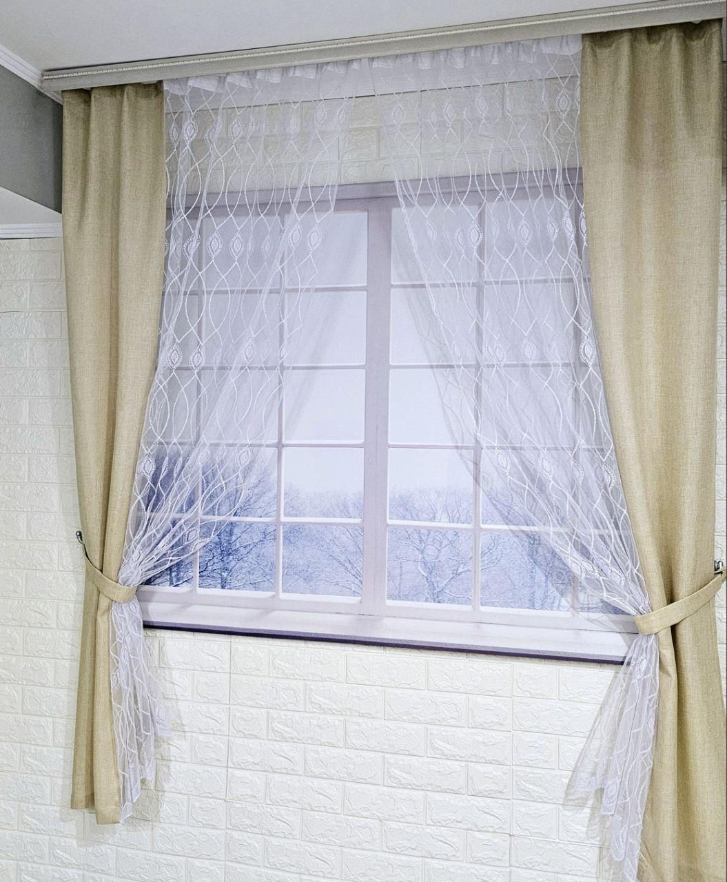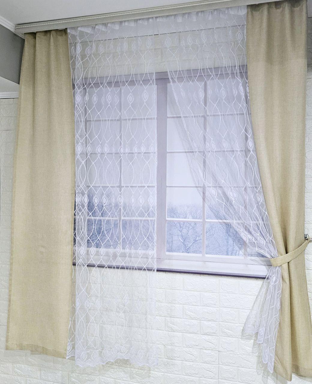 Ширина кожної штори: 1,1м. Ширина регулюється по тасьмі