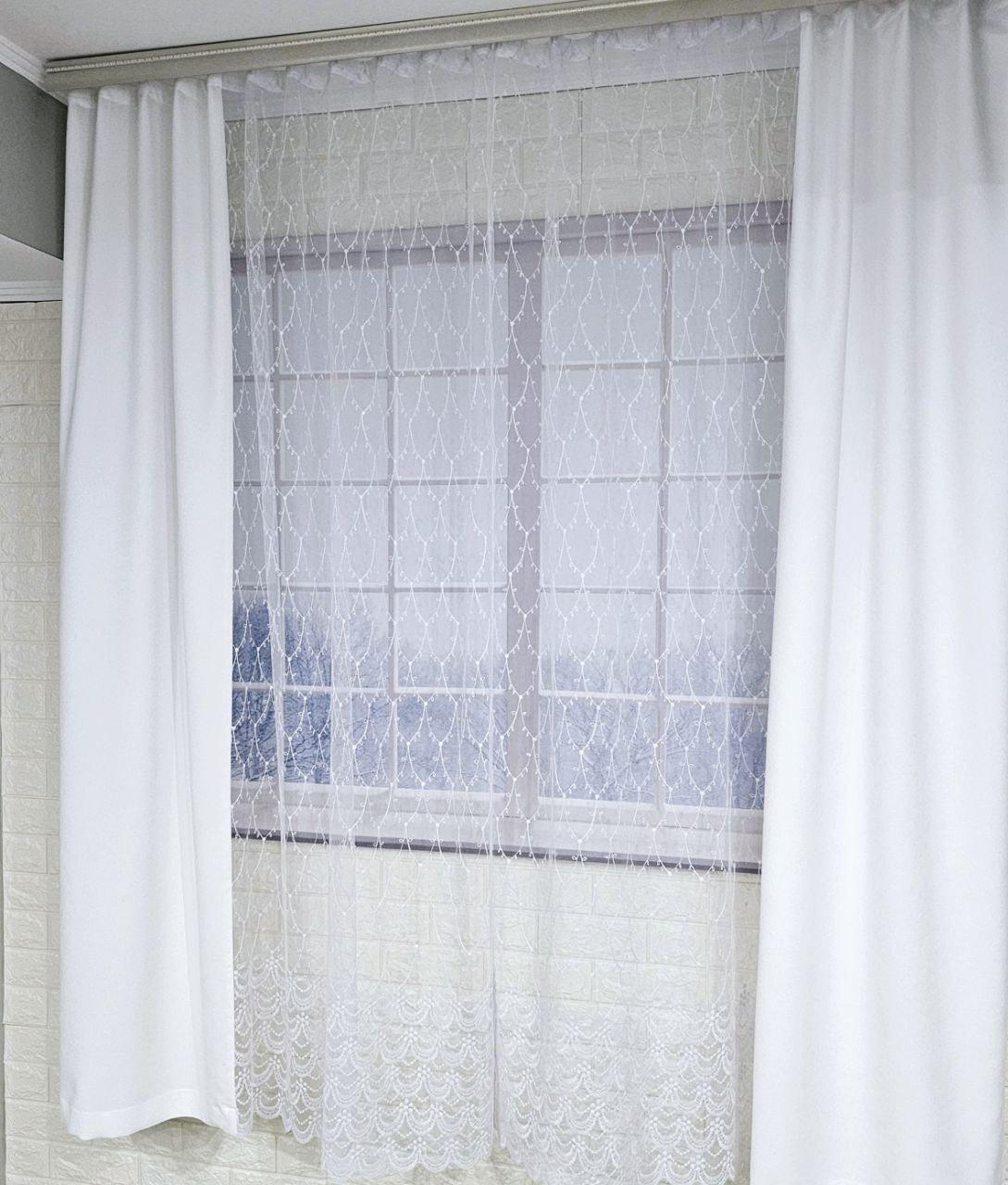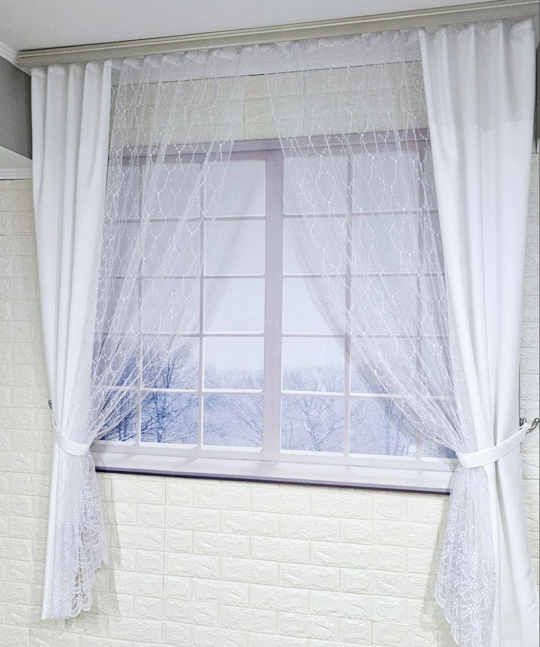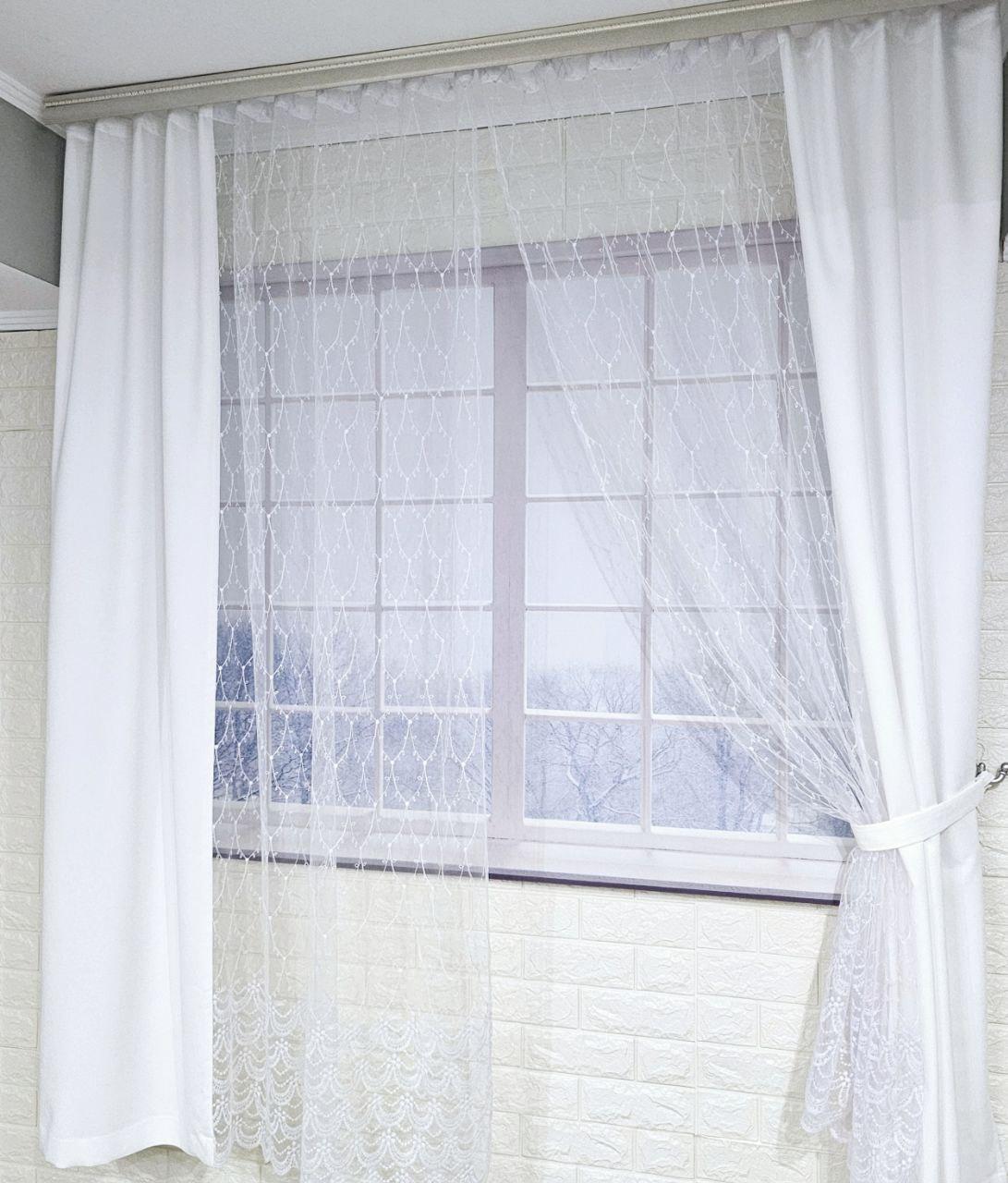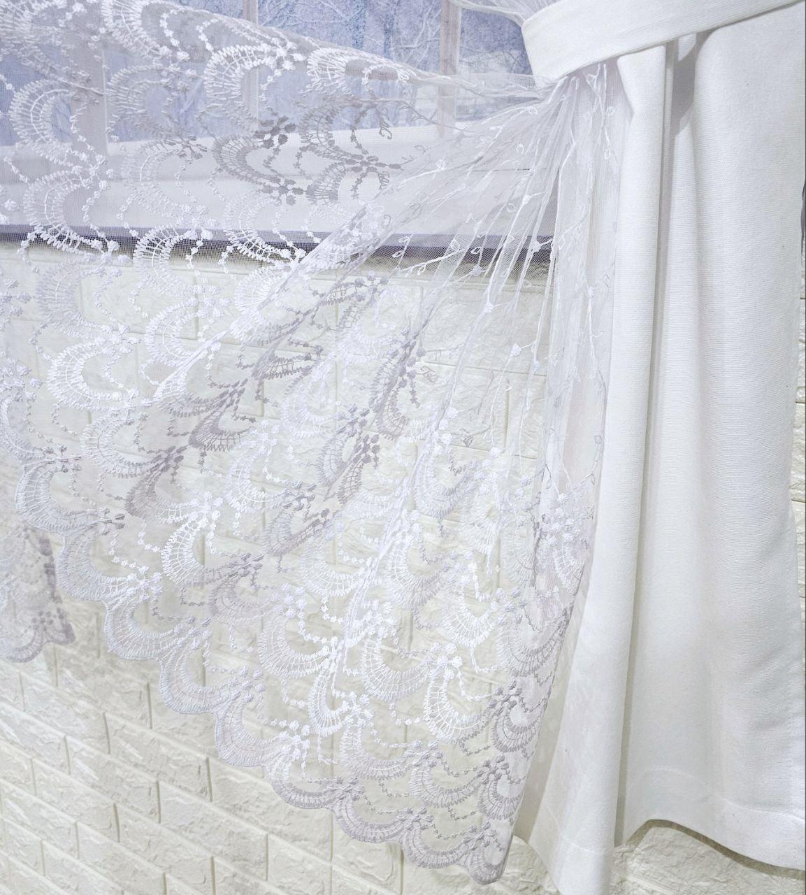 Комплект короткі штори тюль. Колір білий