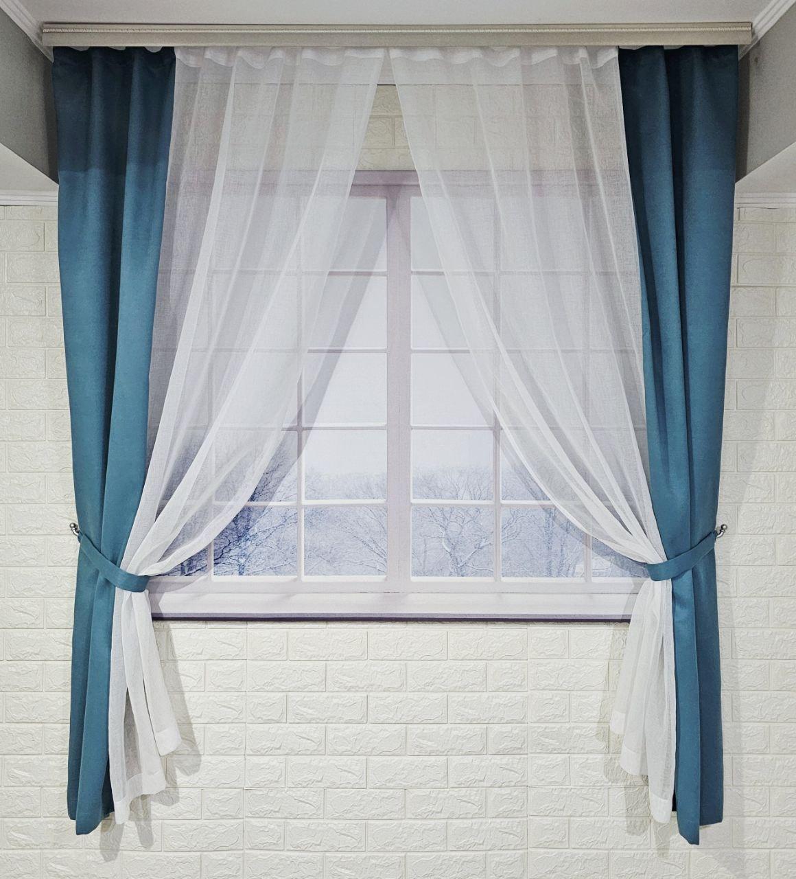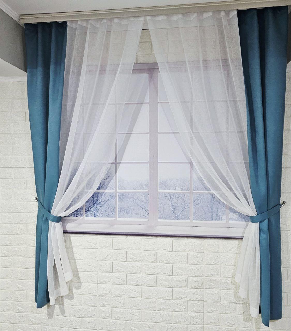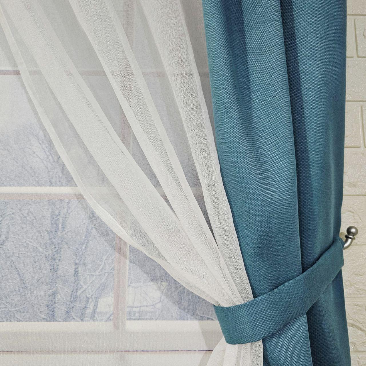 Комплект короткі штори тюль. Колір бірюзовий з білим