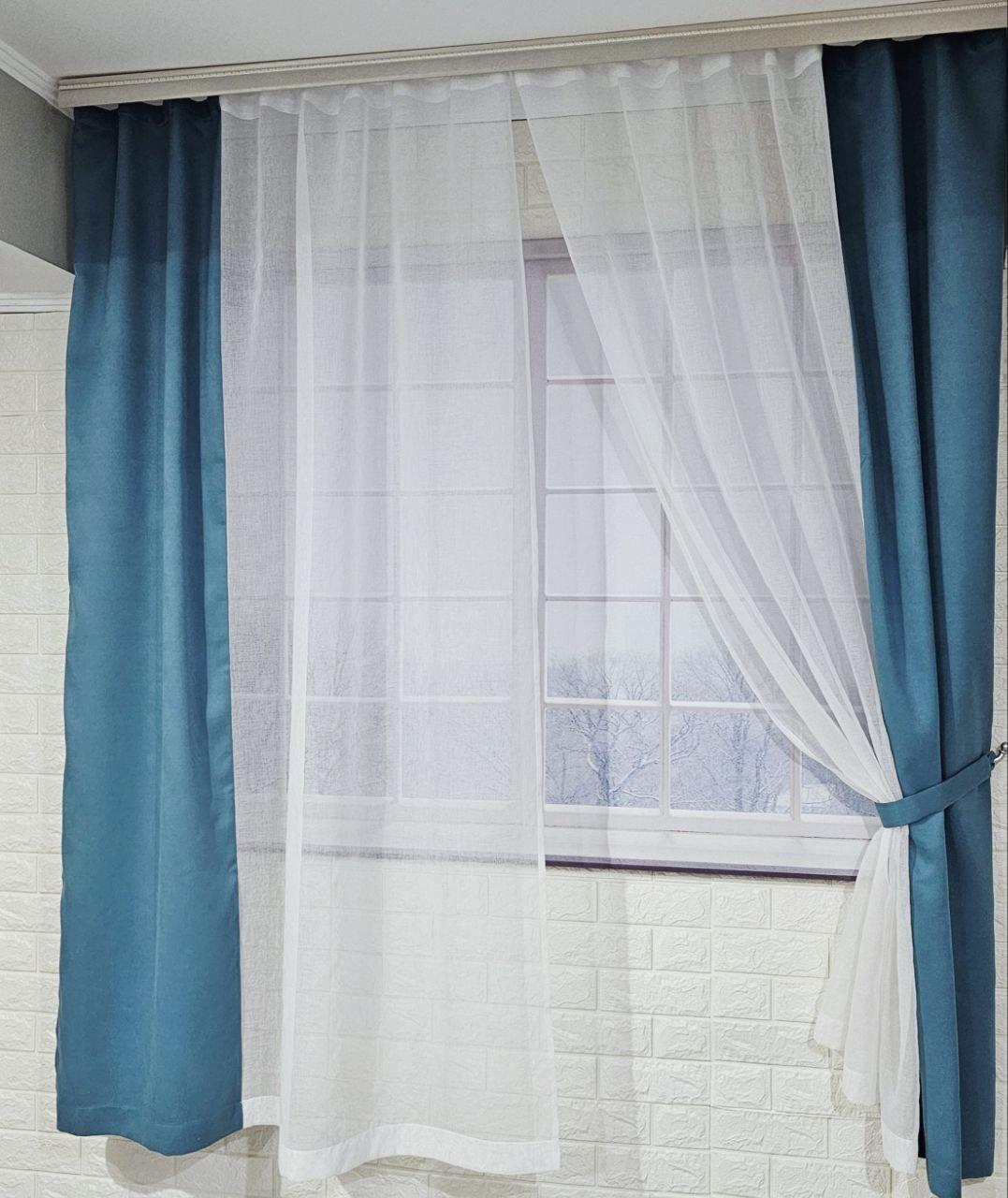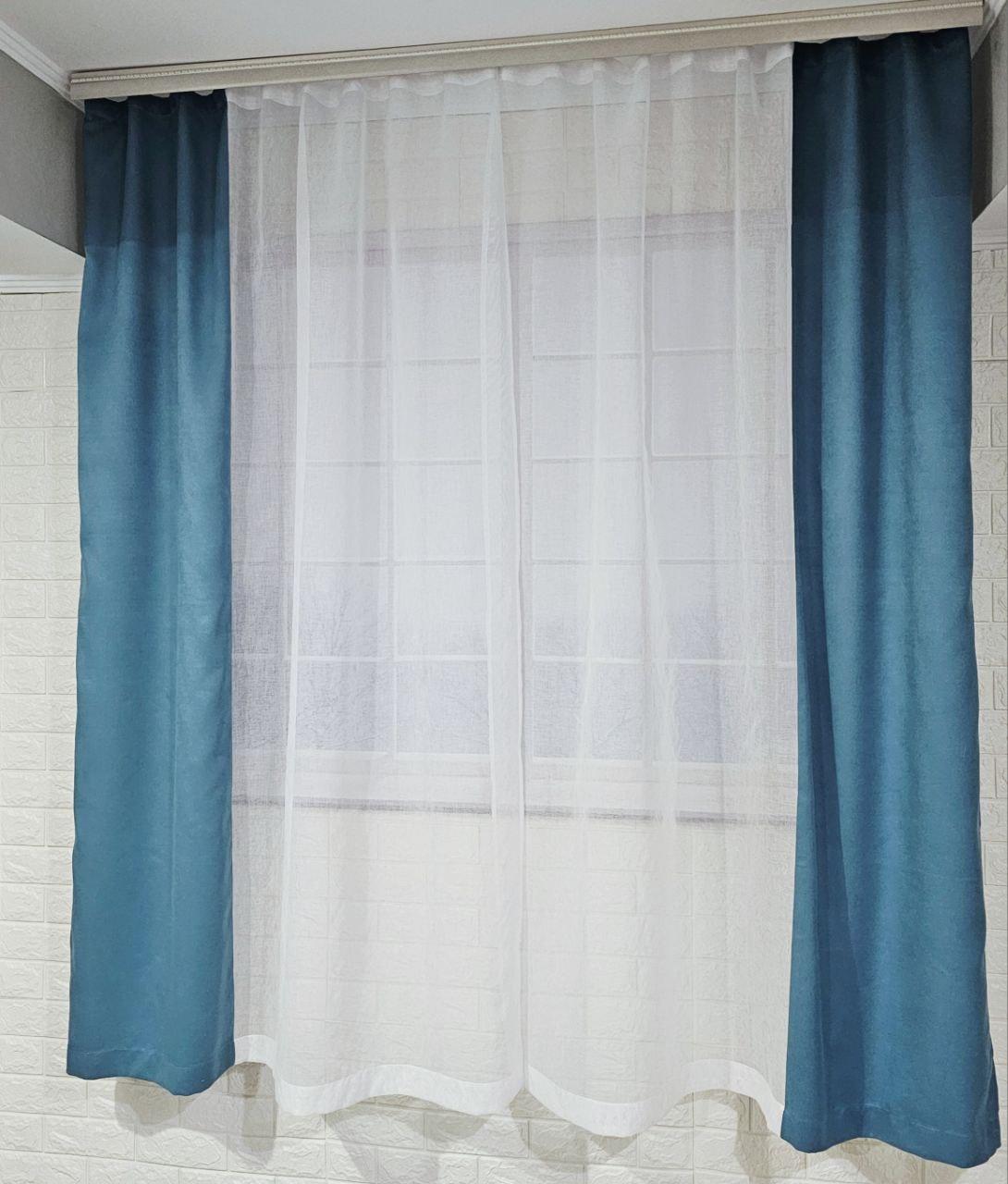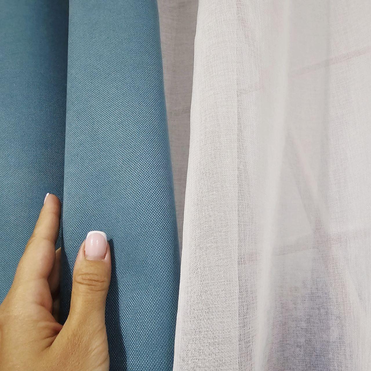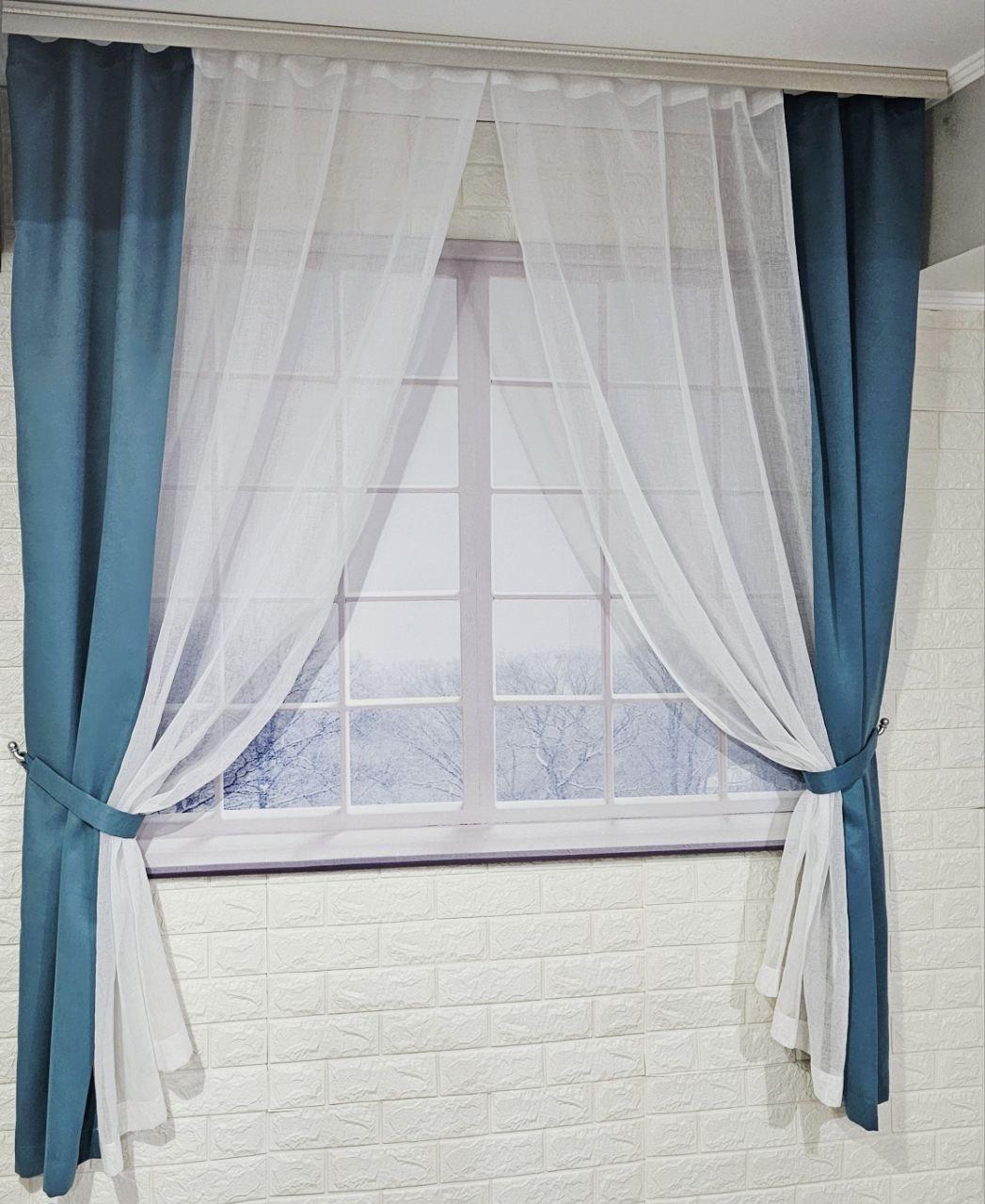 Комплект короткі штори тюль. Колір бірюзовий з білим