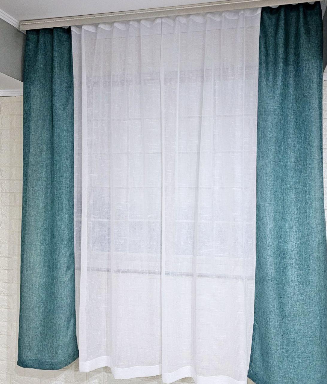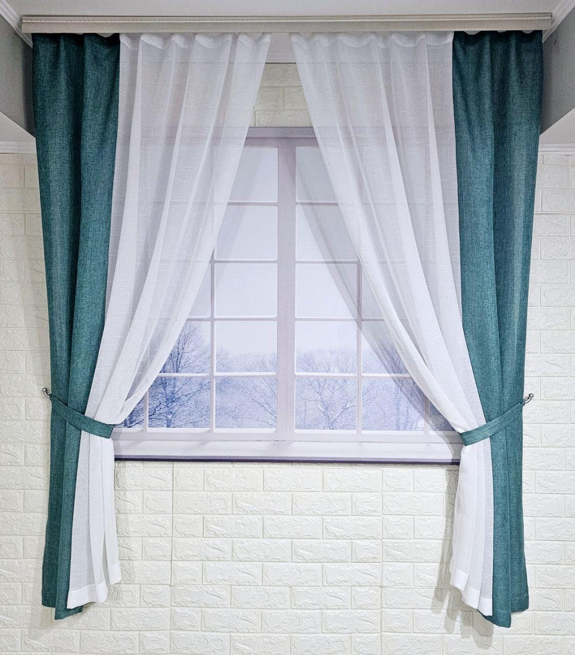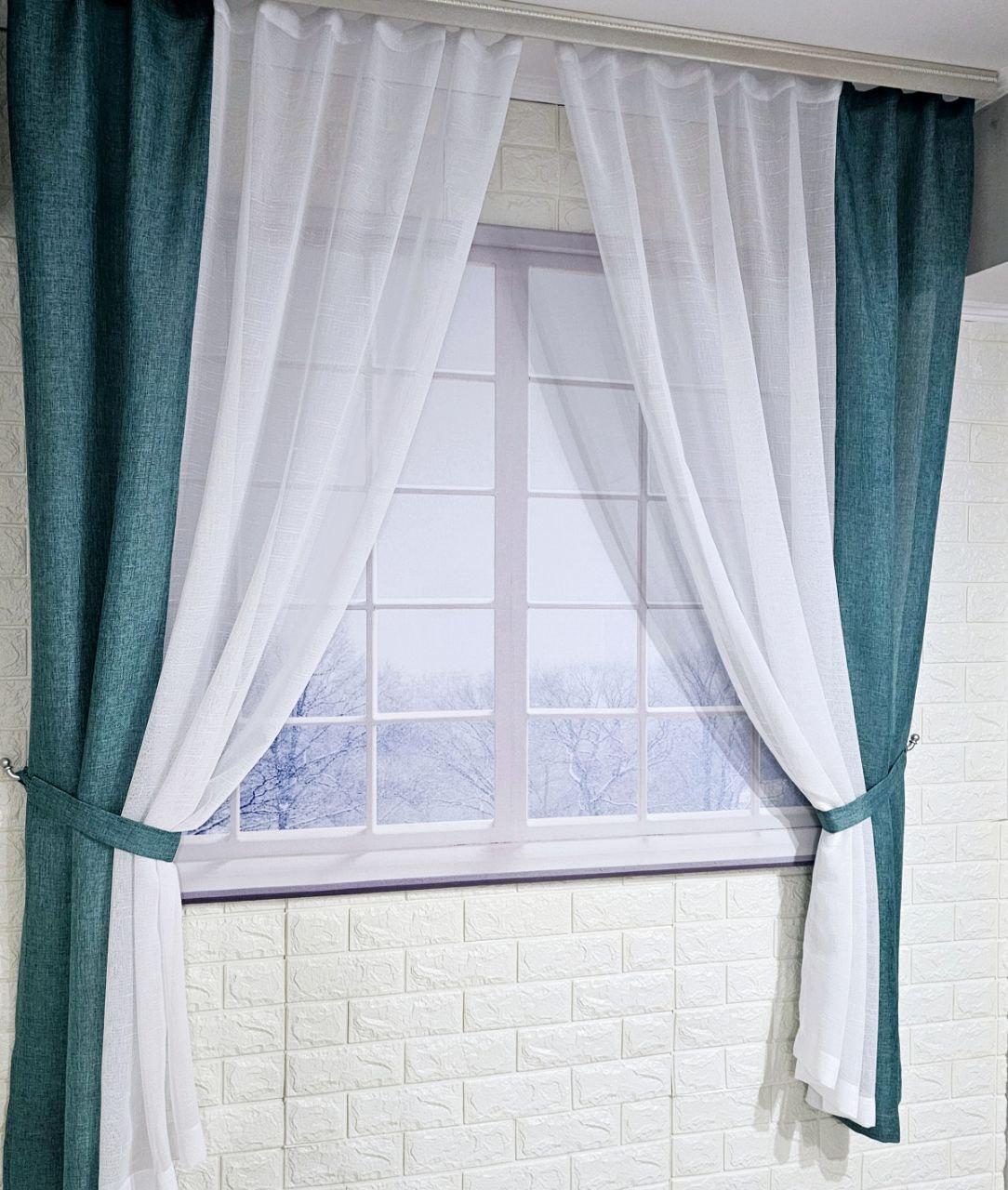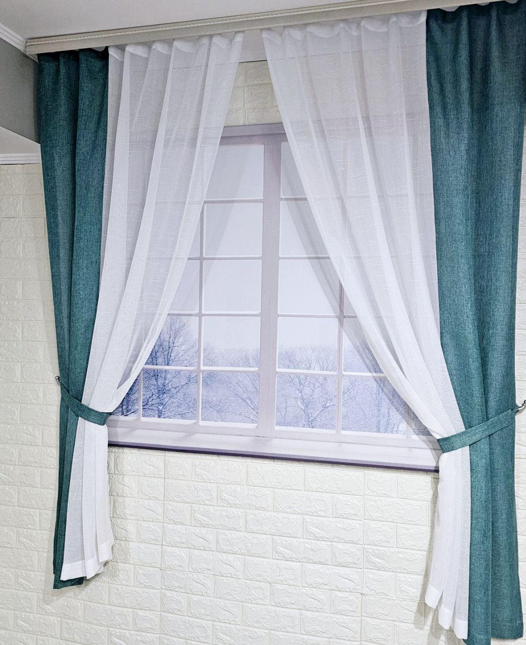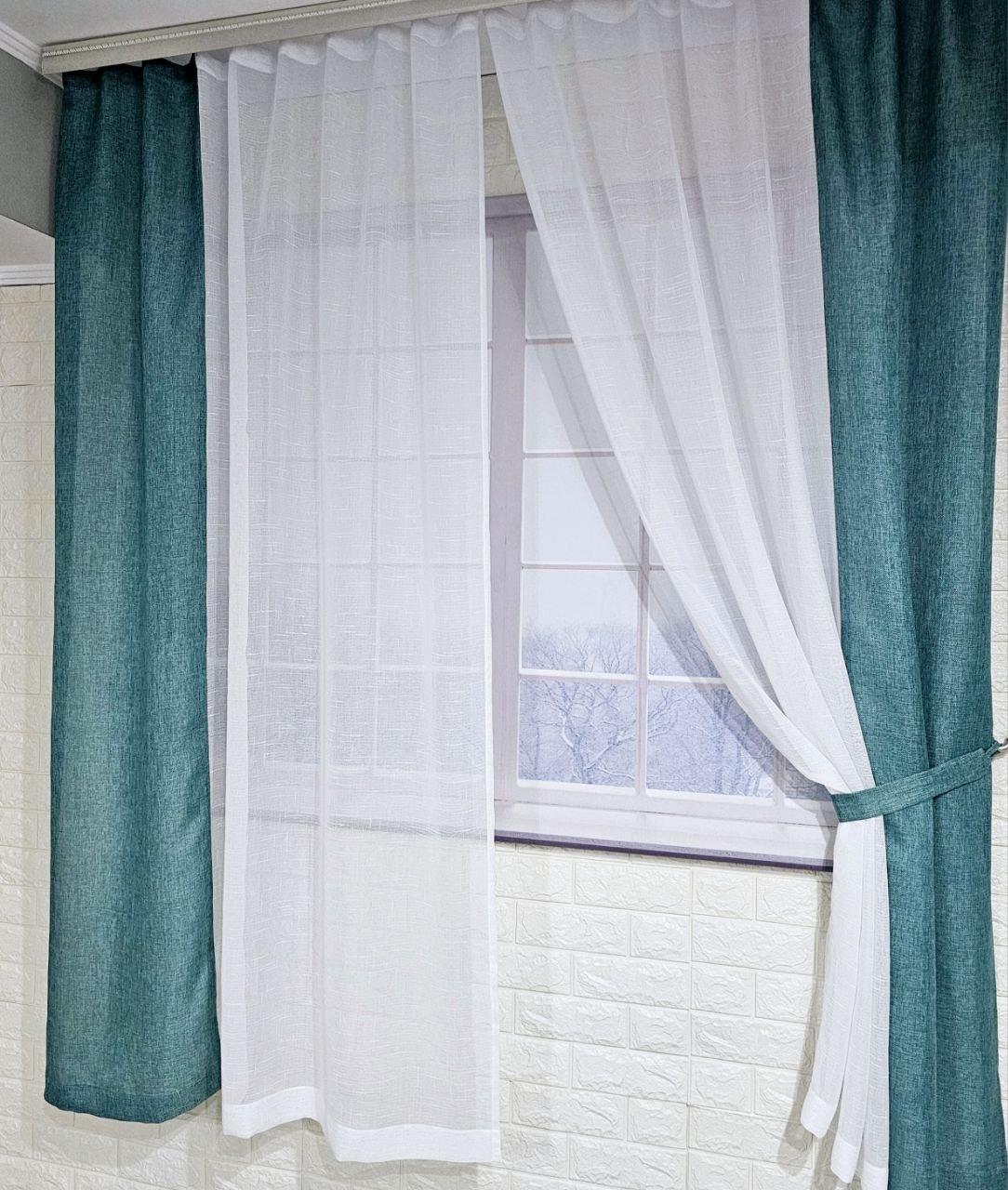 Комплект короткі штори тюль. Колір бірюзовий з білим