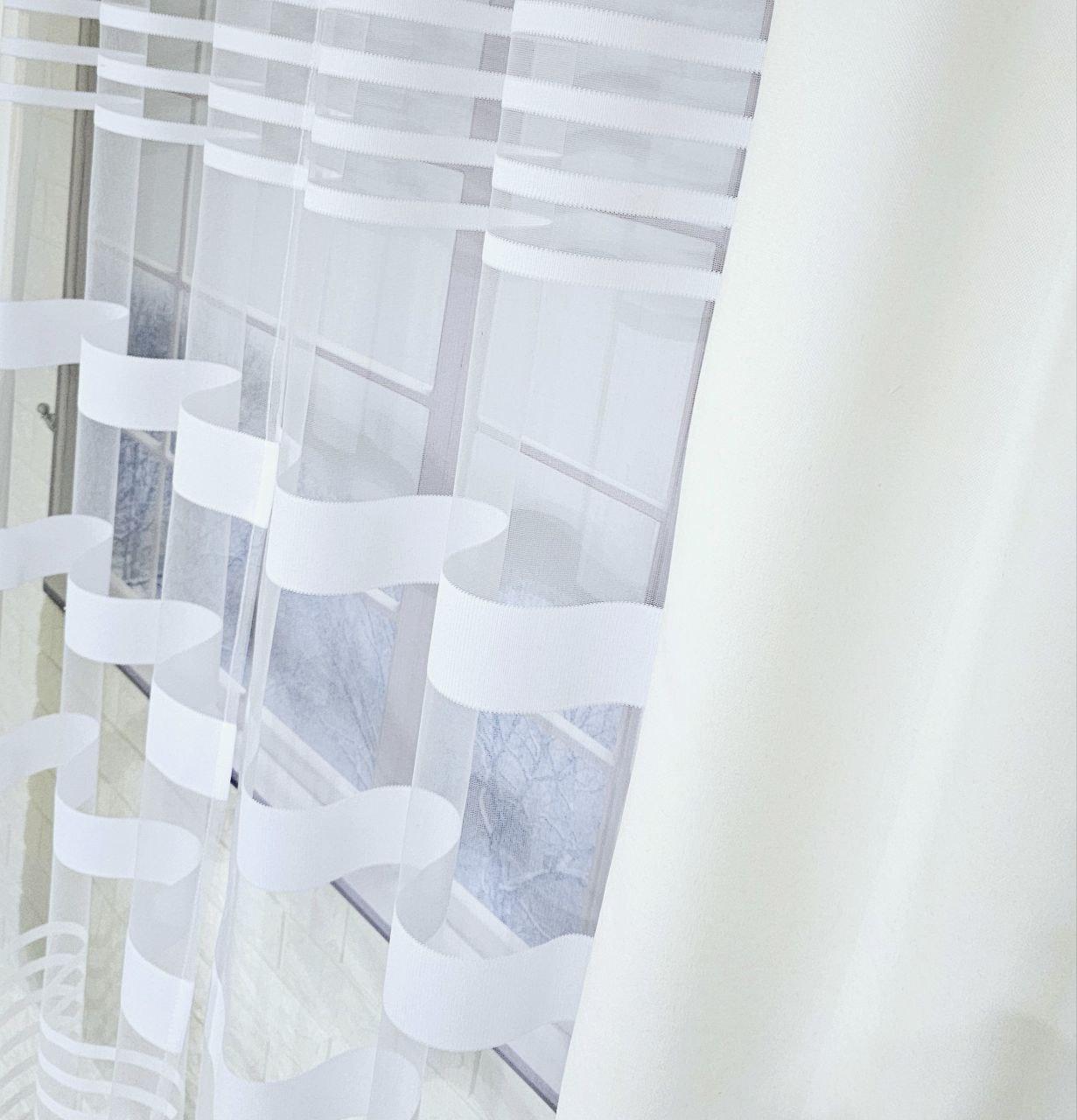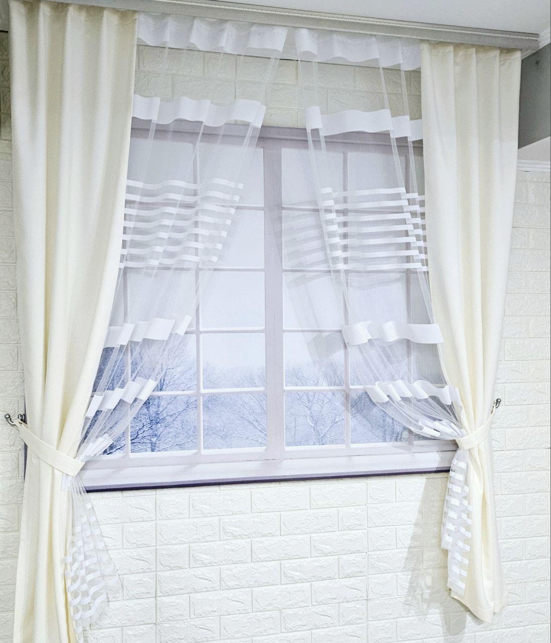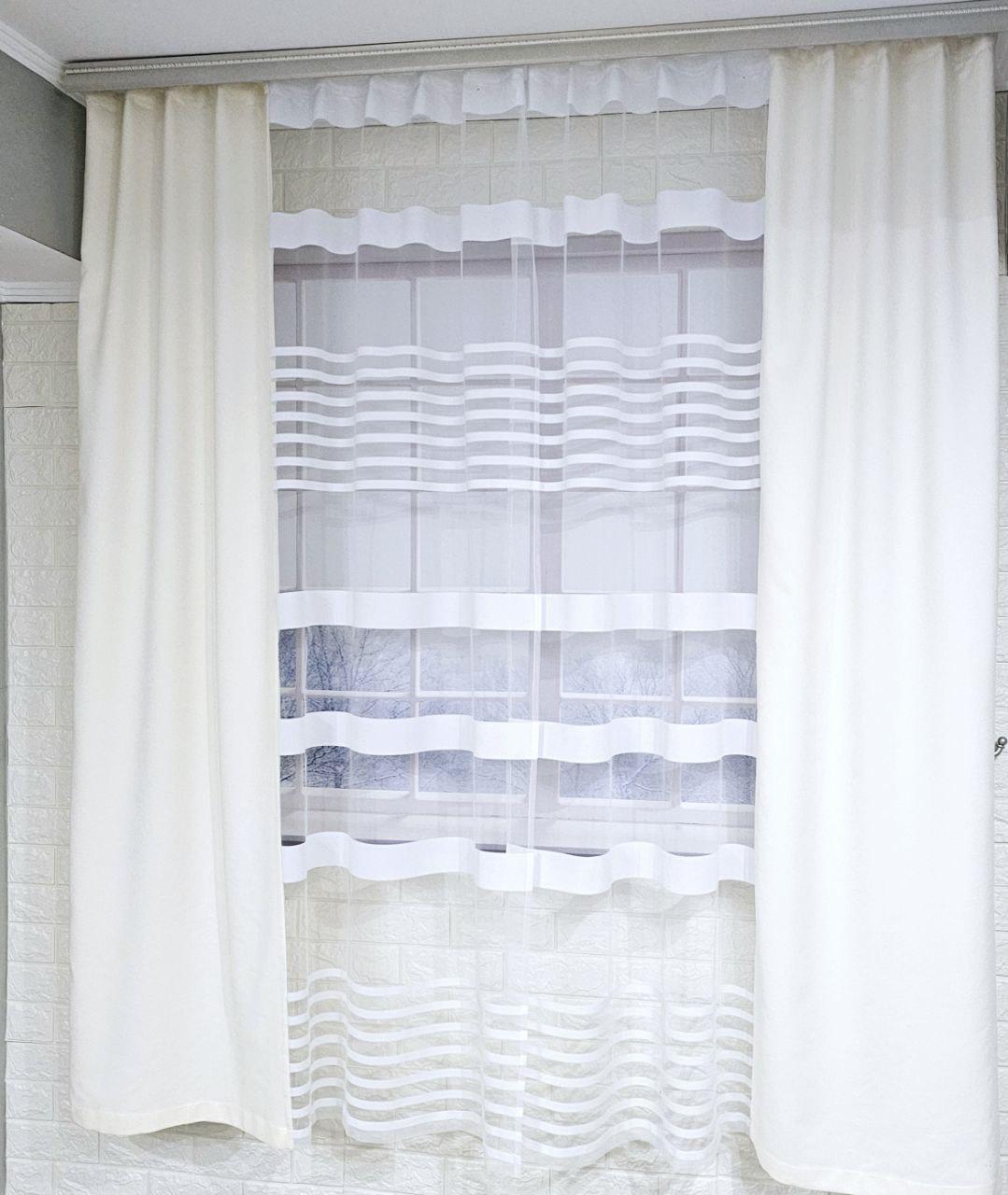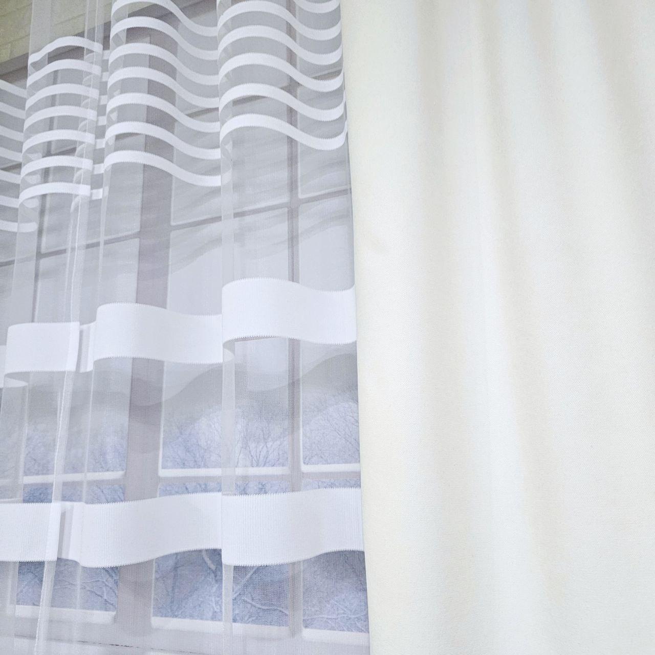 Комплект короткі штори тюль. Колір молочний з білим