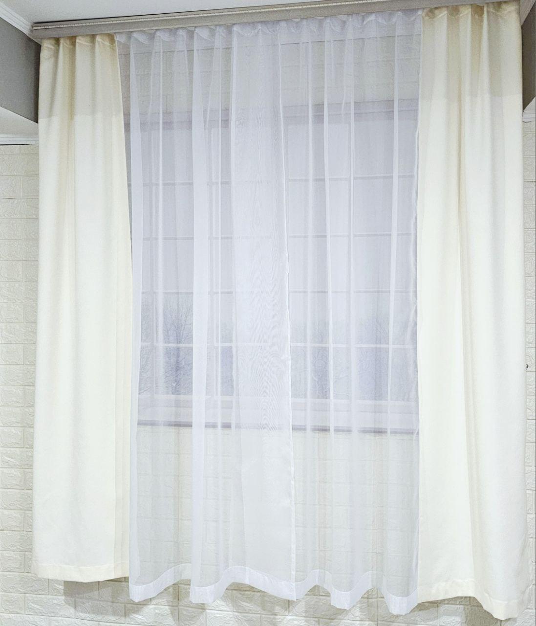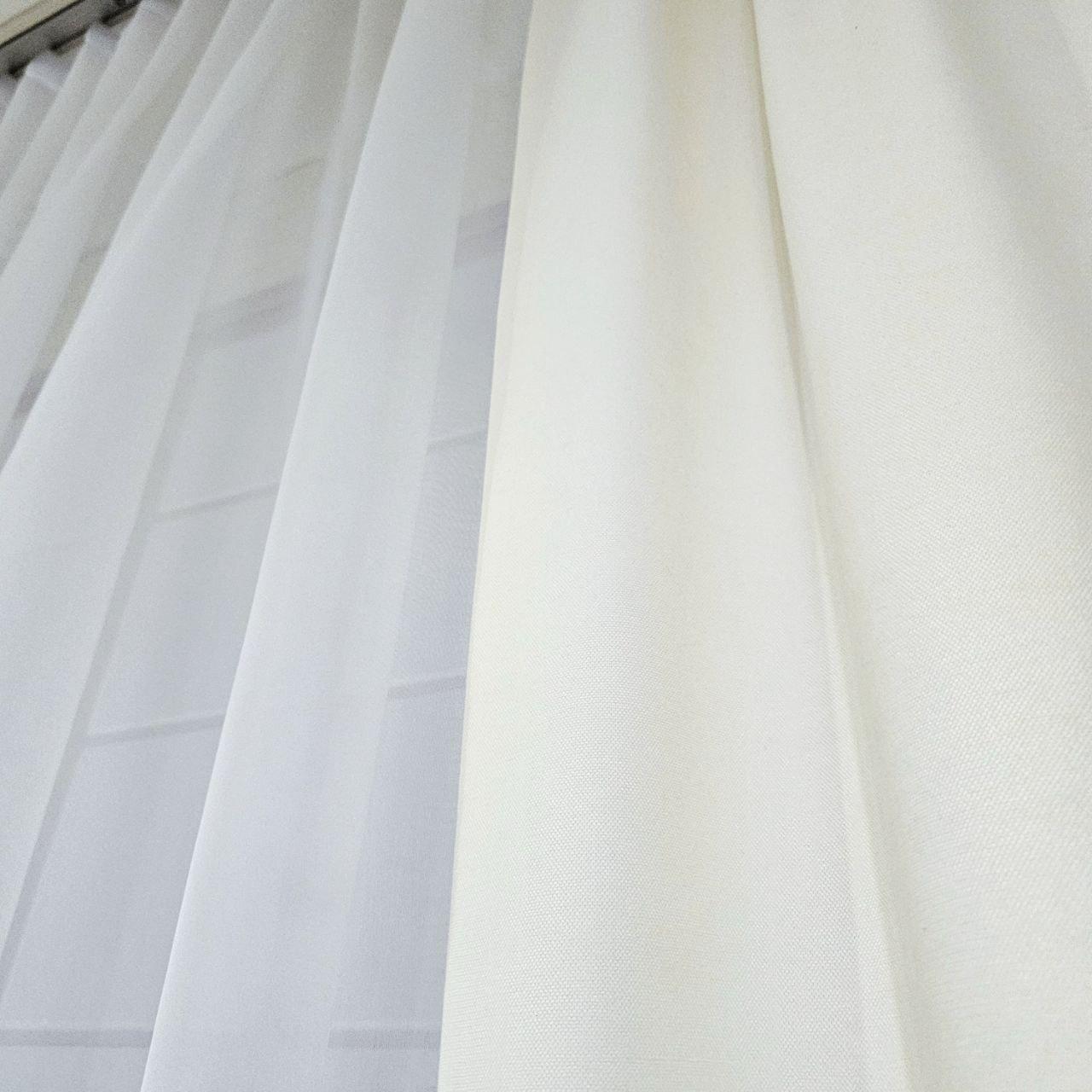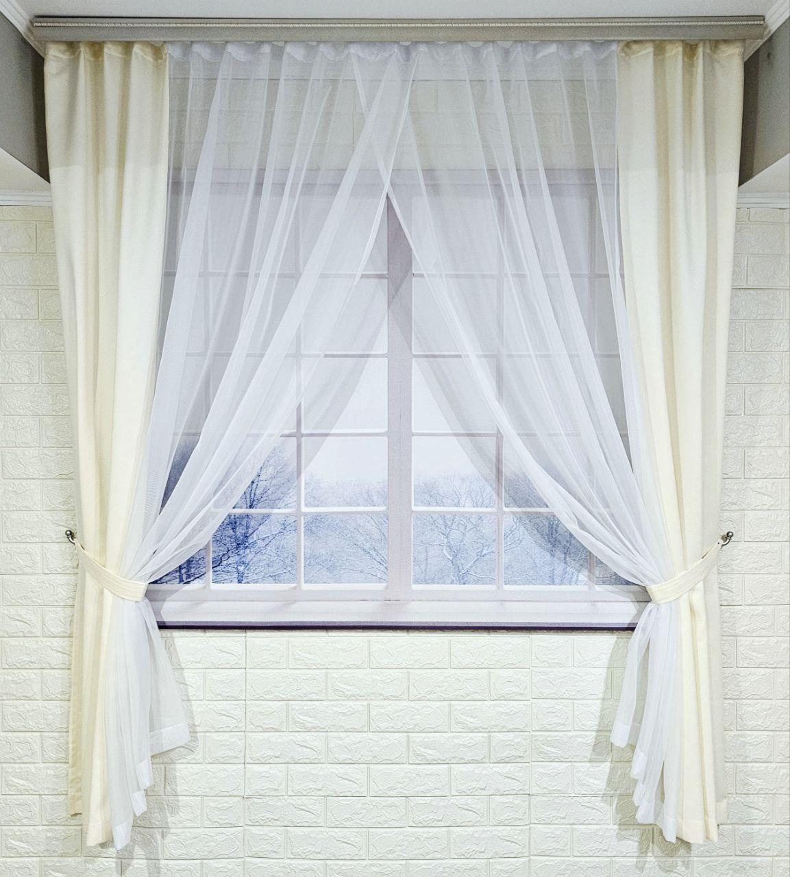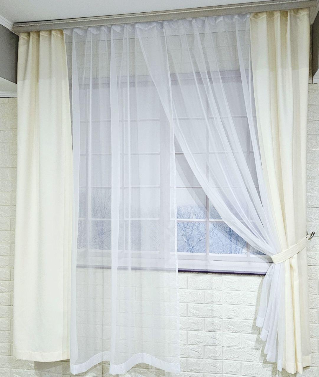 Комплект короткі штори тюль. Колір молочний з білим