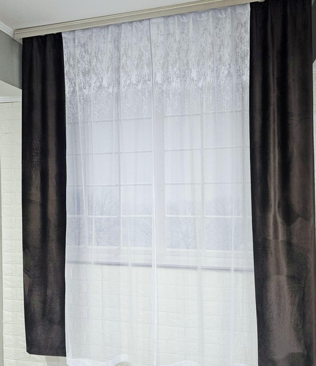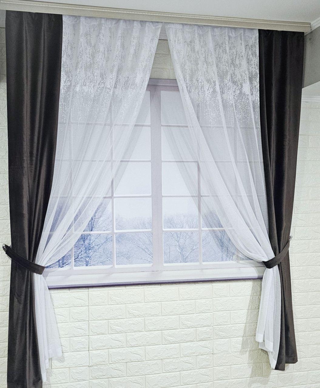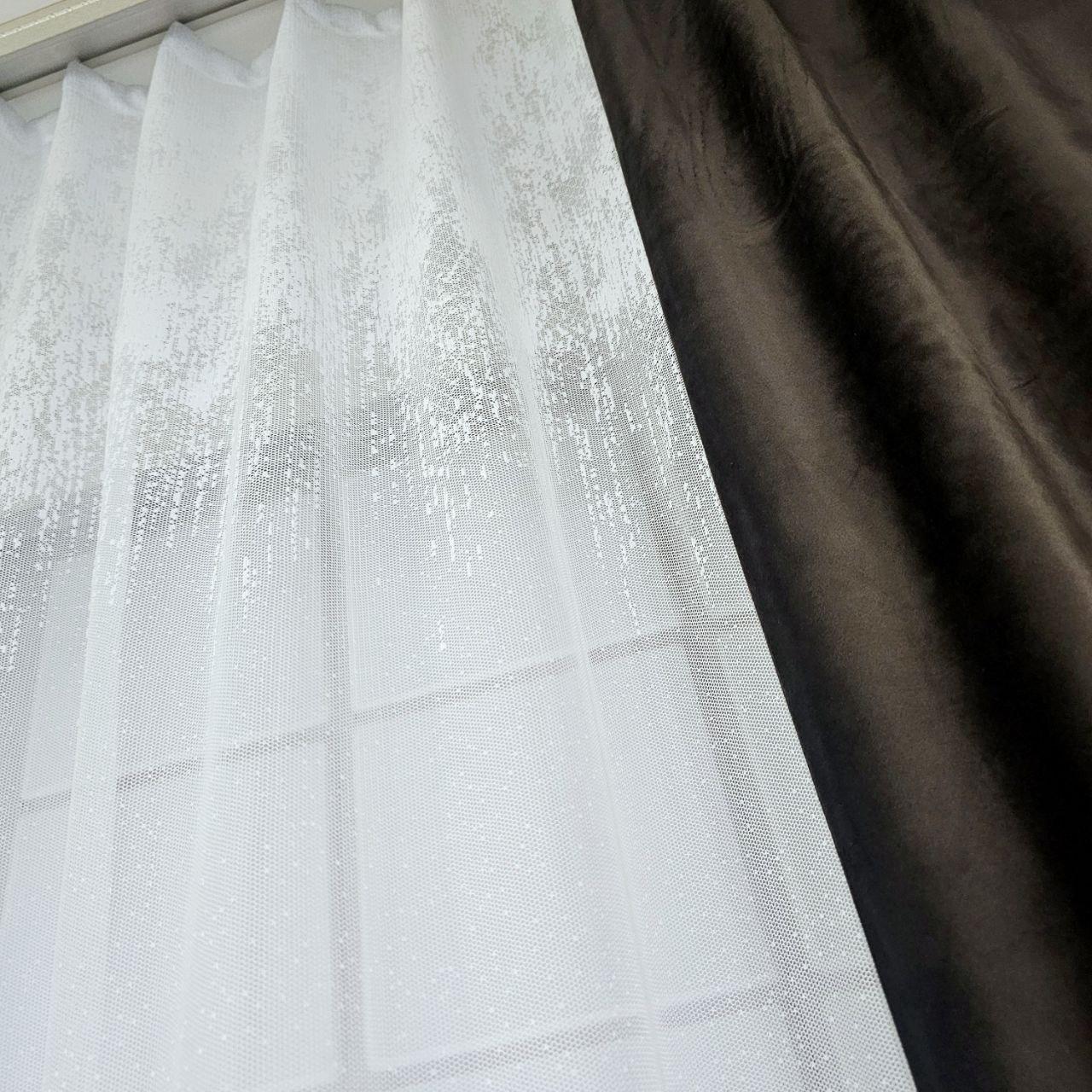 Комплект короткі штори тюль. Колір венге з білим