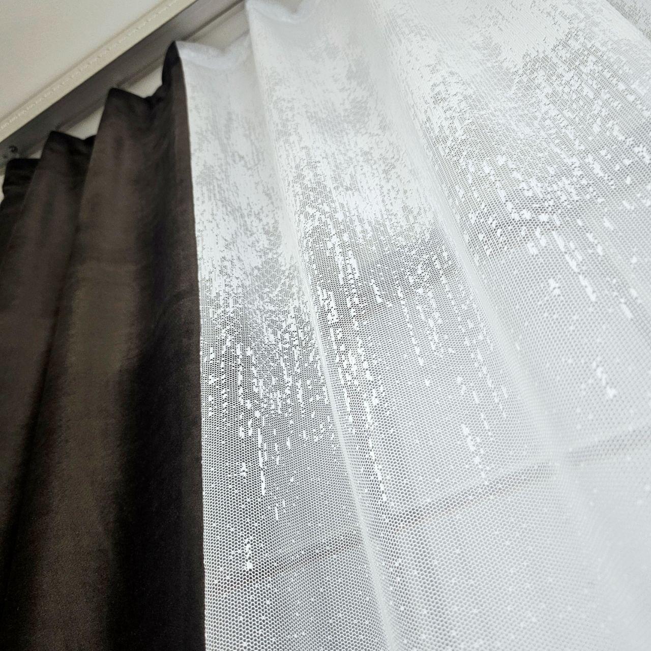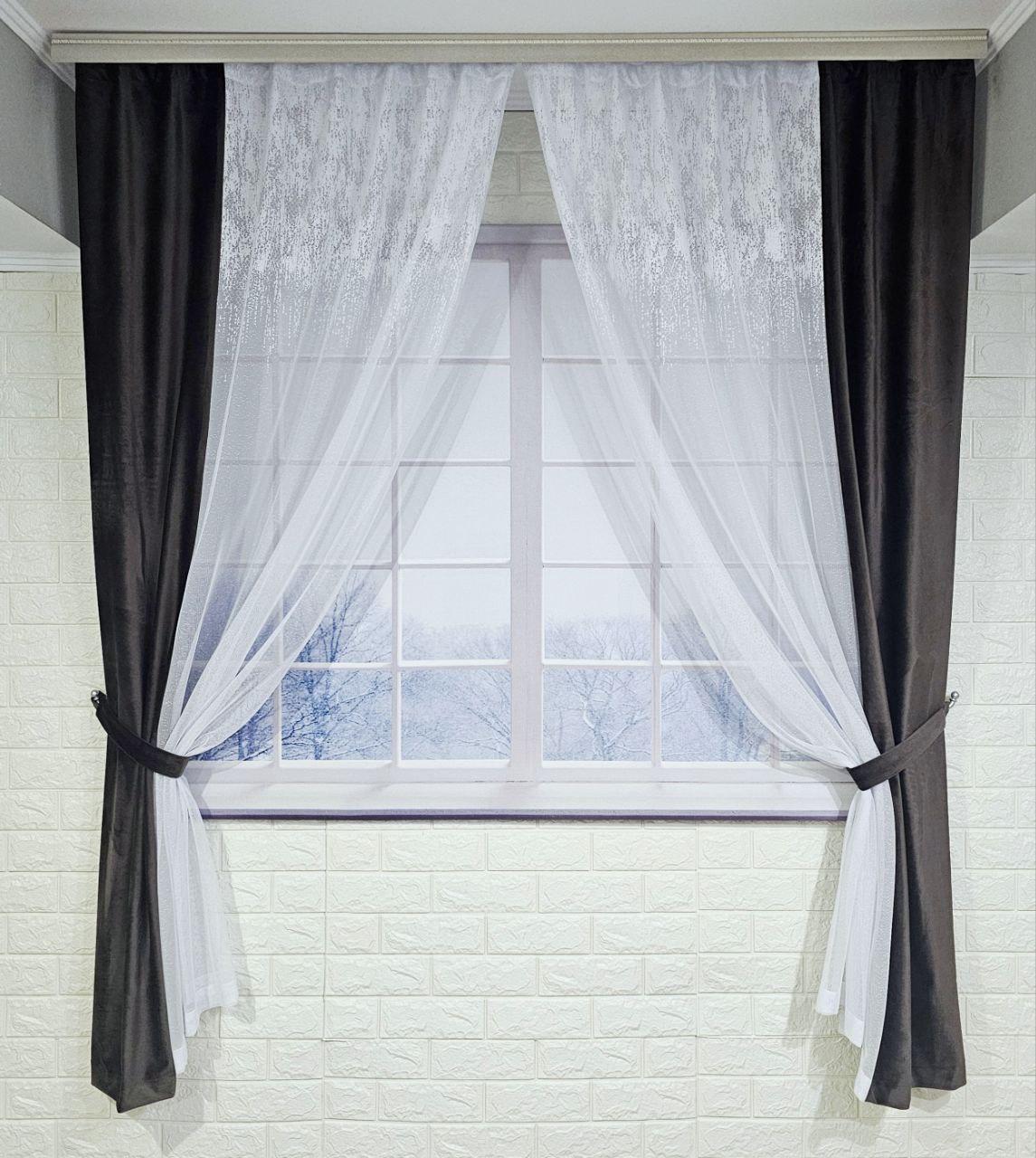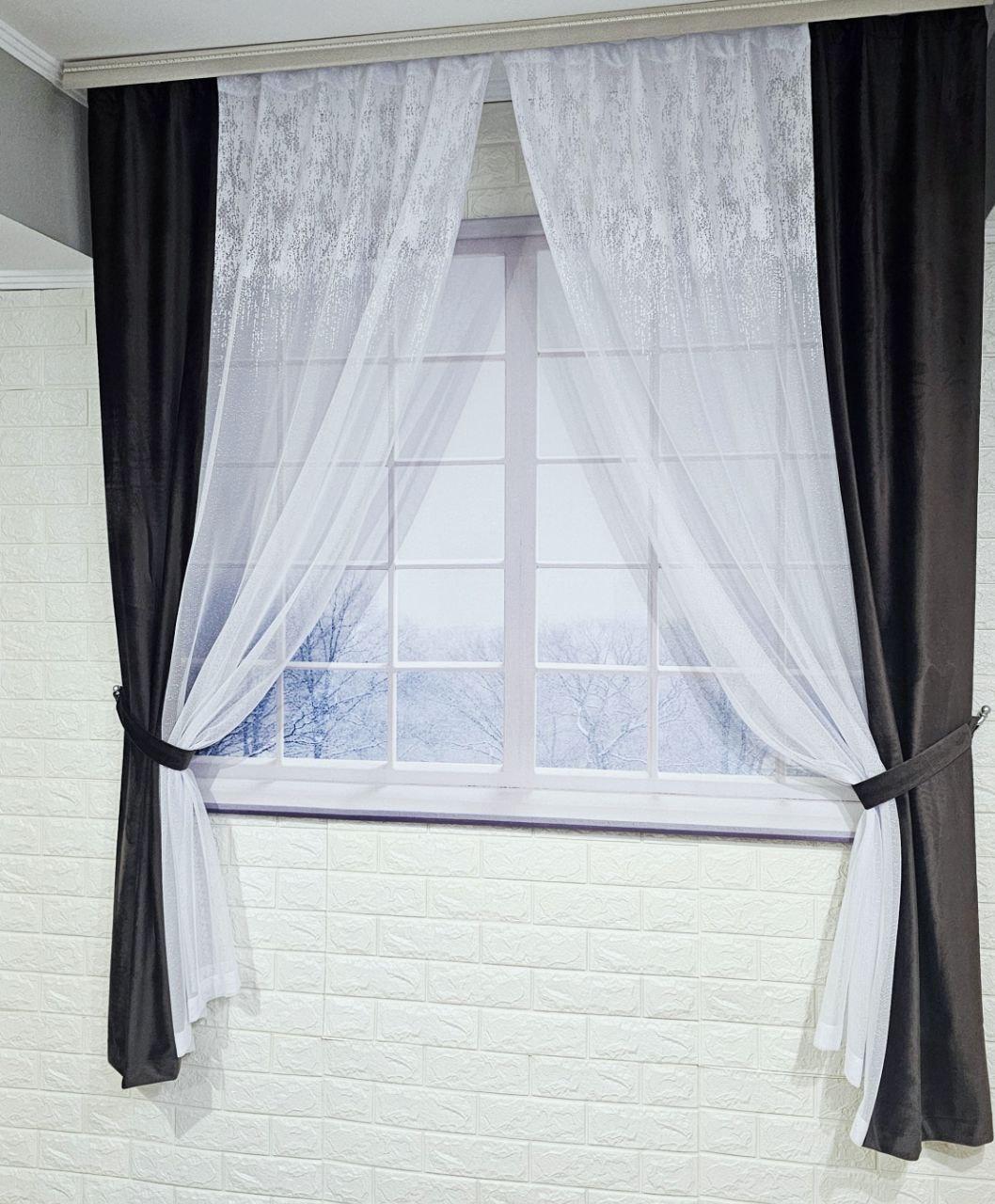 Комплект короткі штори тюль. Колір венге з білим