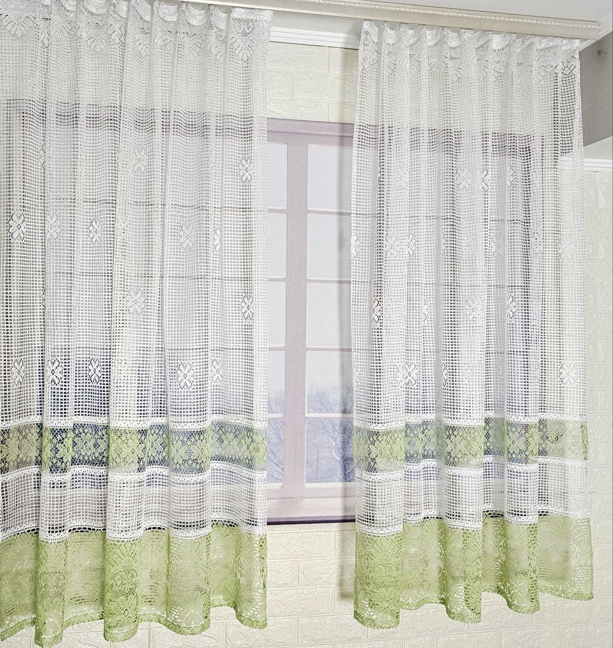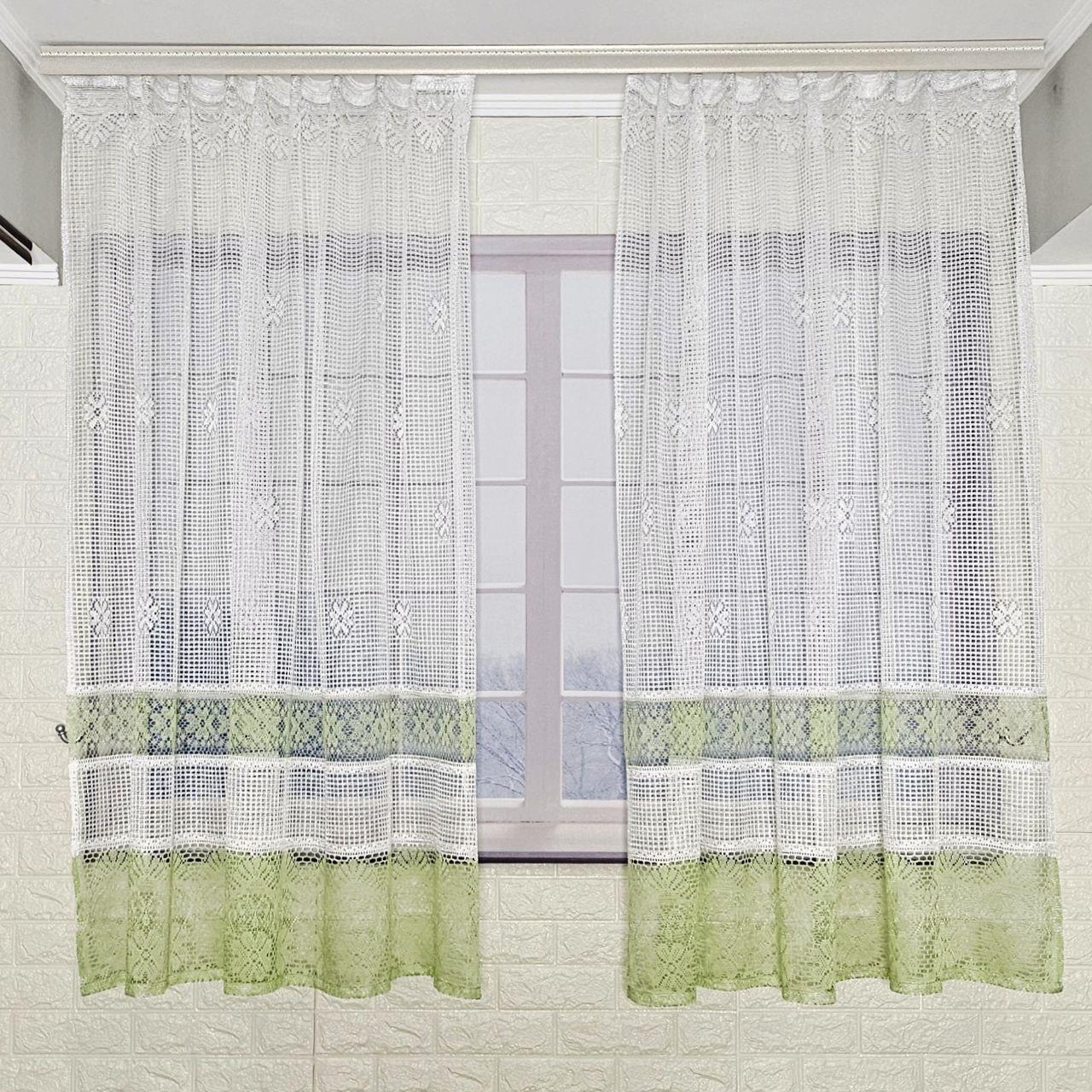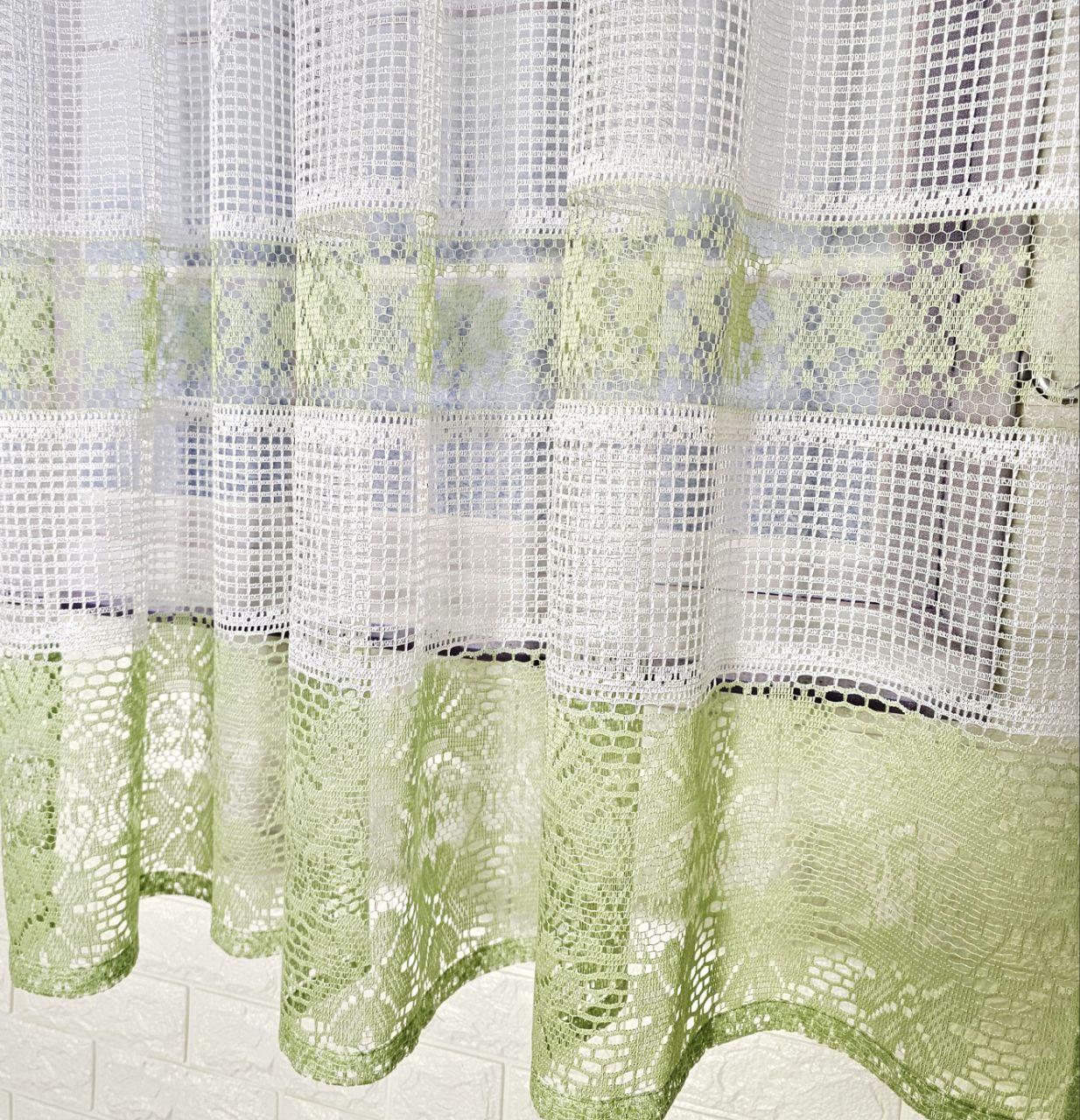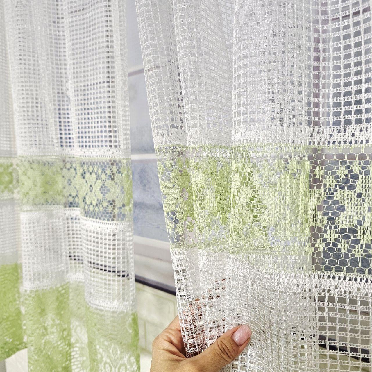 Комплект коротких тюлей жаккард (1,4м*2,5м, 2шт). Колір зелений з білим