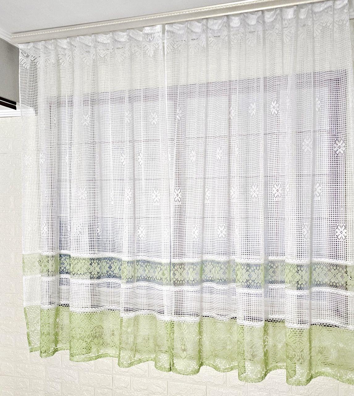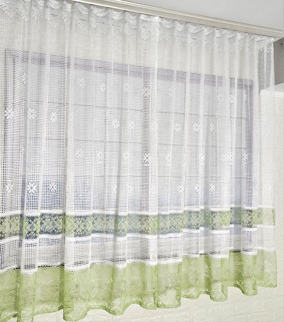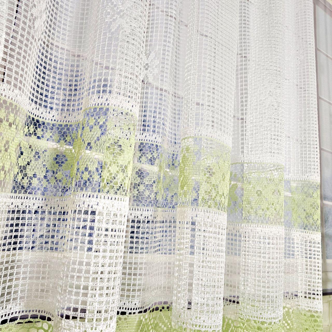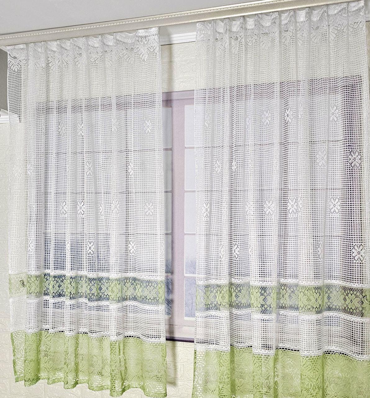 Комплект коротких тюлей жаккард (1,4м*2,5м, 2шт). Колір зелений з білим