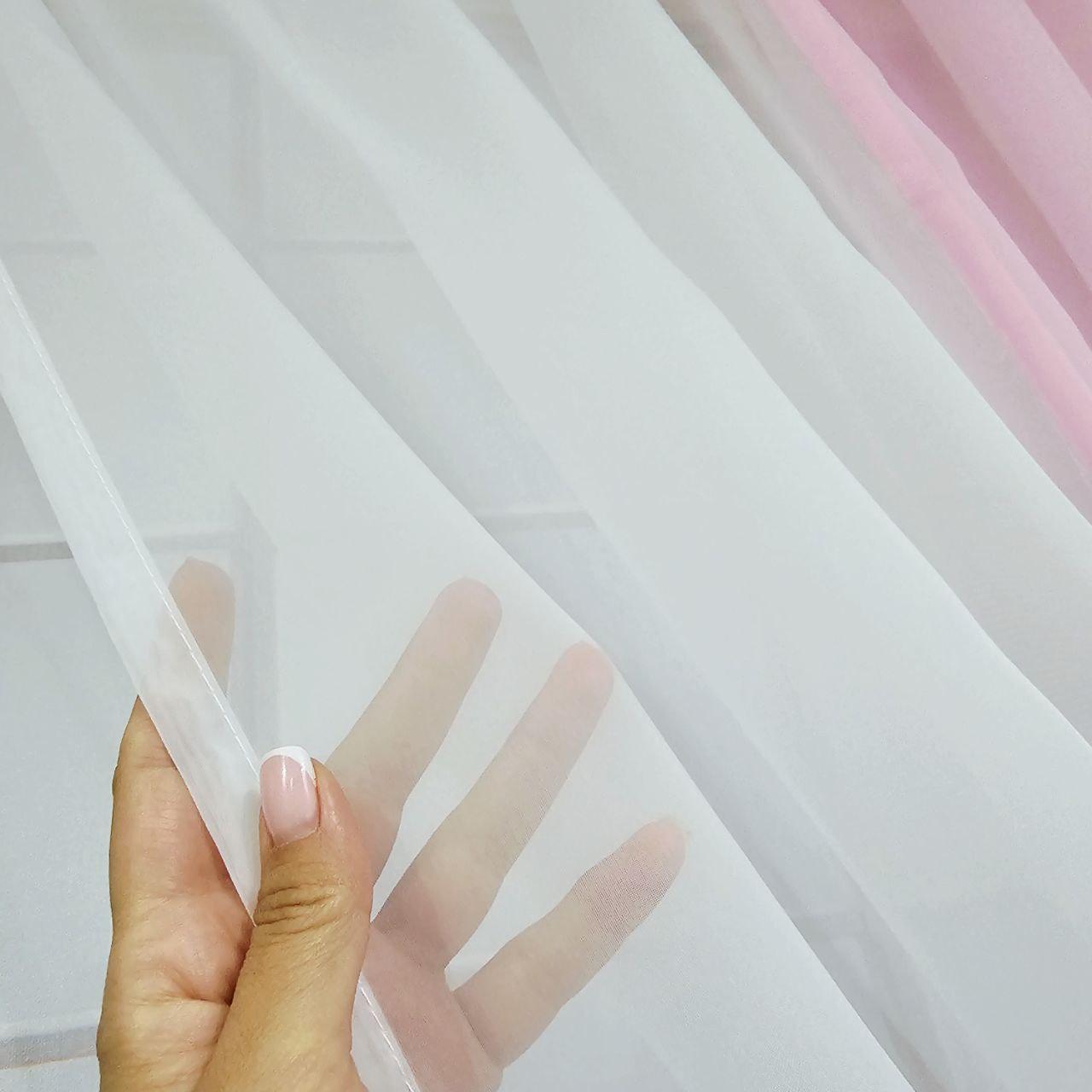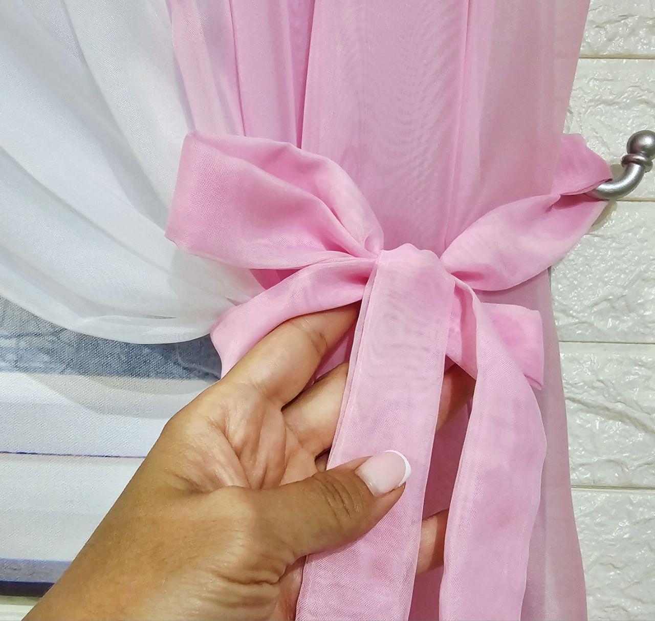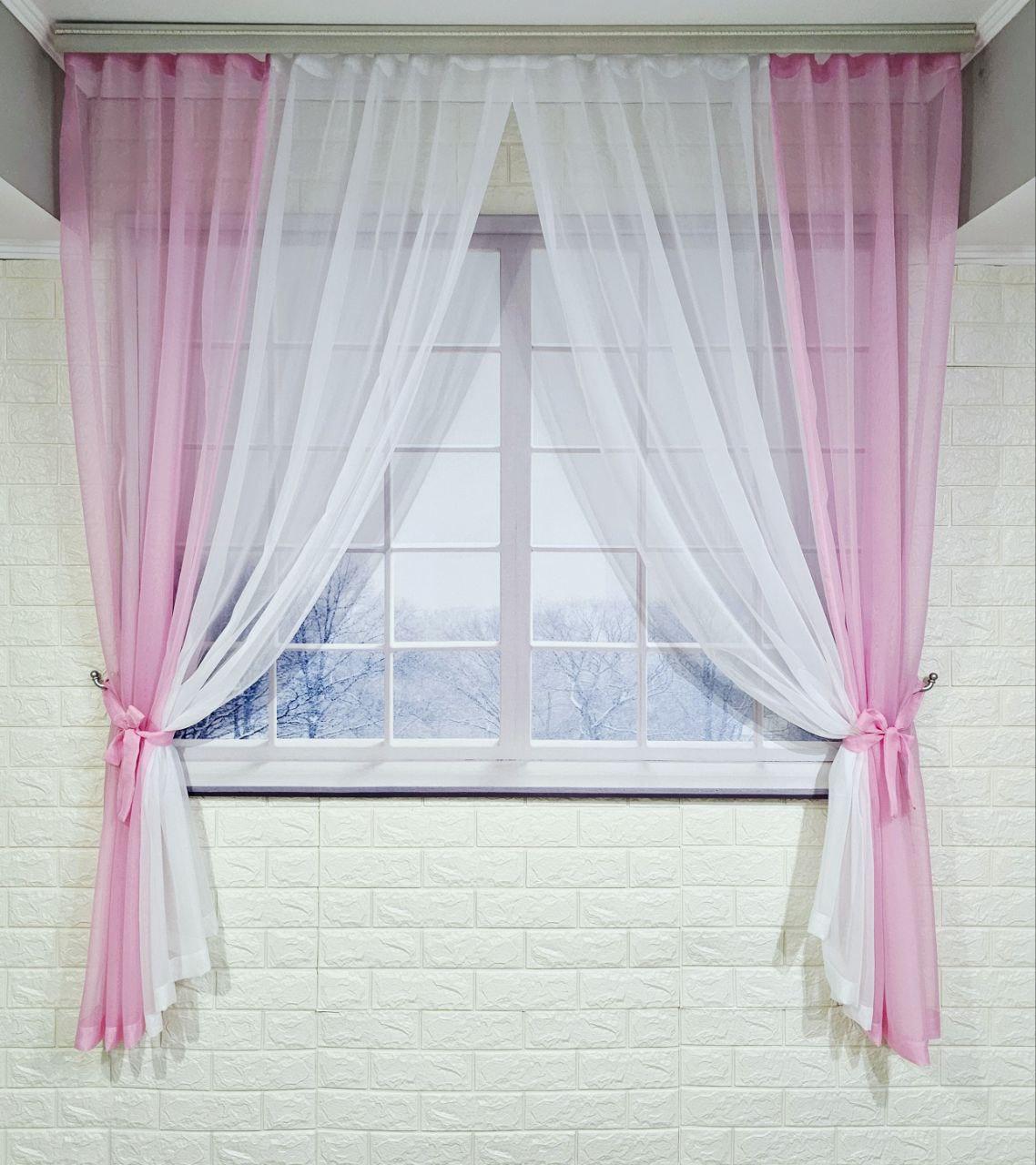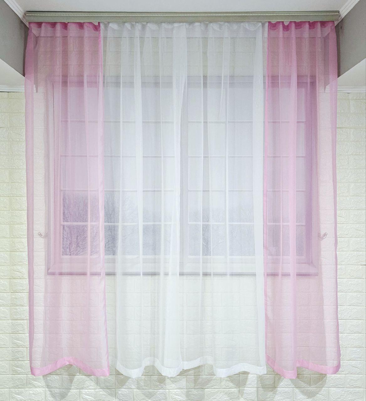 Комплект короткий тюль з зав’язками. Колір рожевий з білим