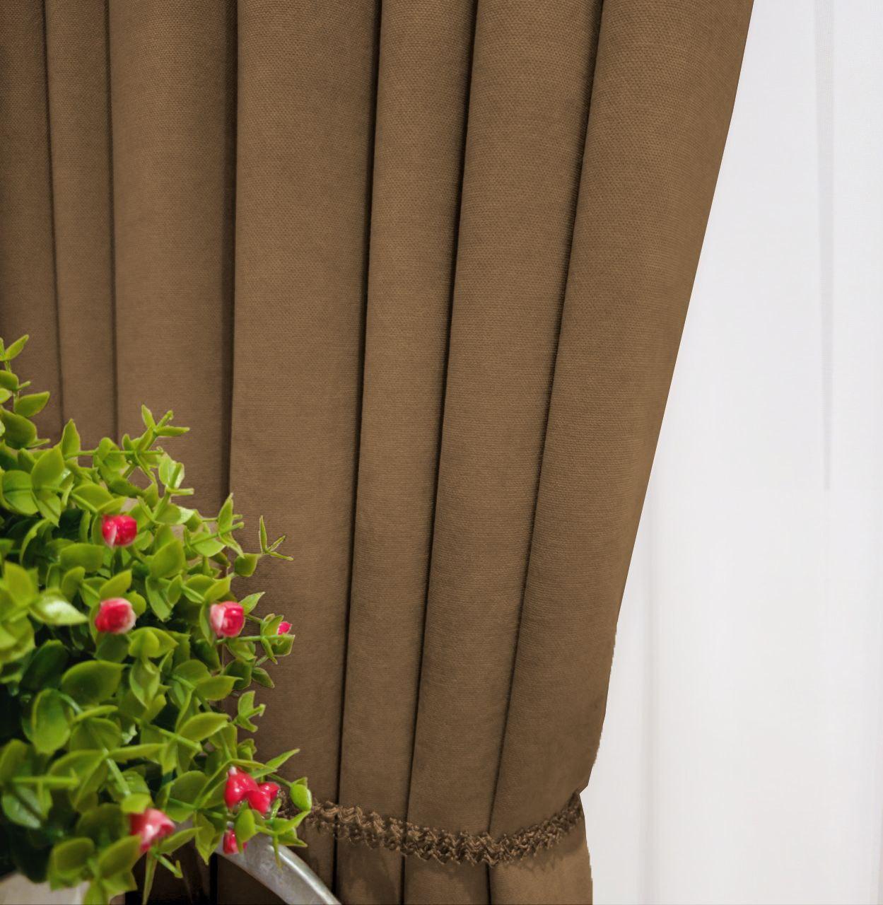 Комплект коричневі штори мікровелюр Diamond. Готові штори коричневого кольору в спальню, зал