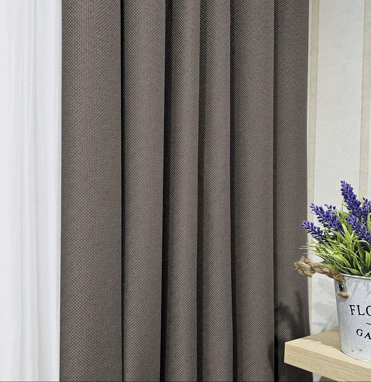 Комплект штори блекаут льон рогожка. Колір сіро-коричневий. Готові штори в спальню, зал, вітальню