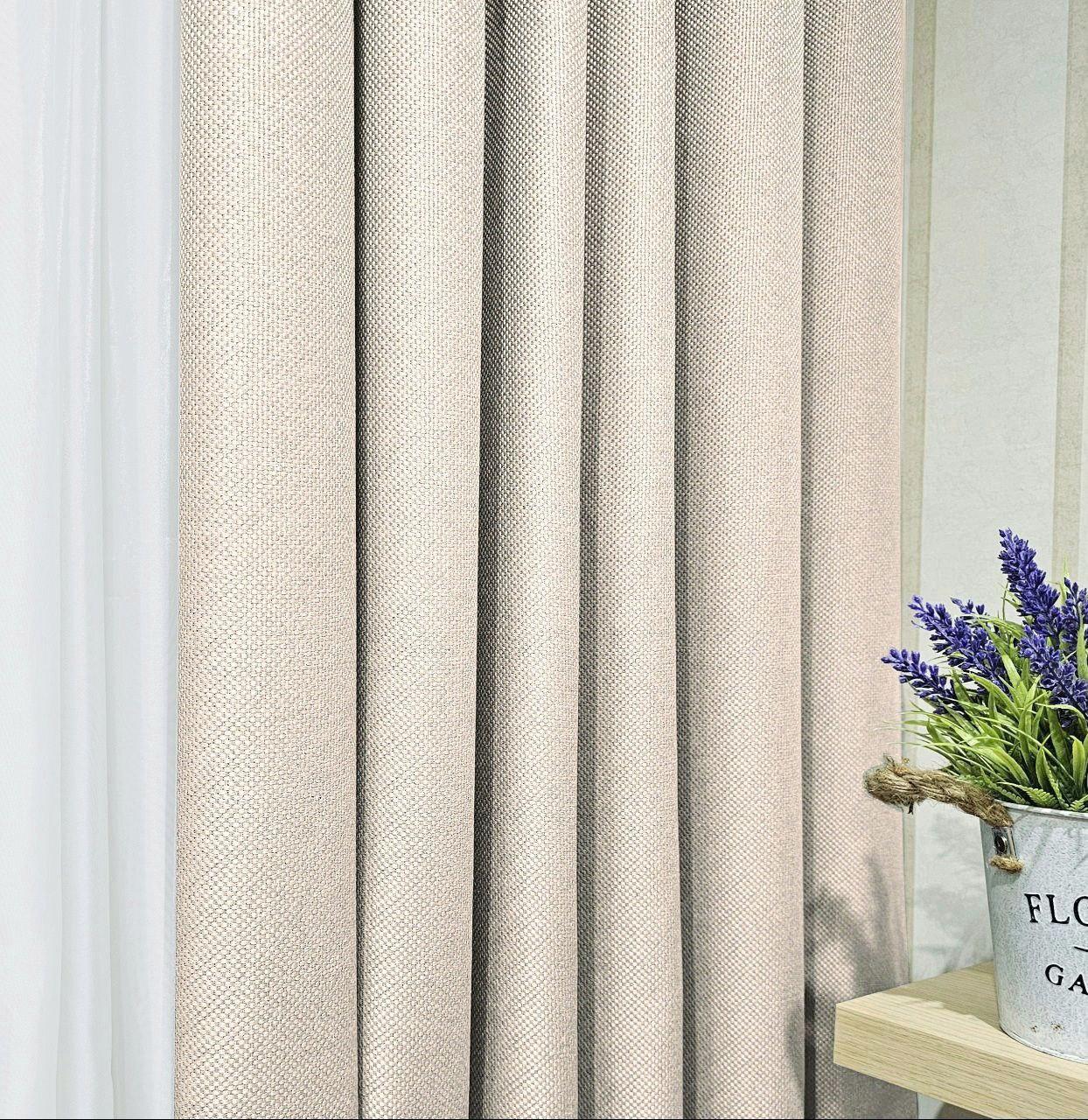 Комплект штори блекаут льон рогожка. Колір світлий бежевий. Готові штори в спальню, зал, вітальню