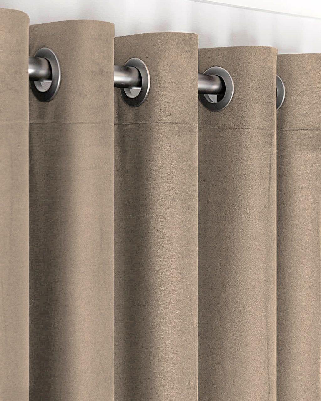 Комплект штори блекаут оксамит Sherly Royal на люверсах. Колір темний бежевий