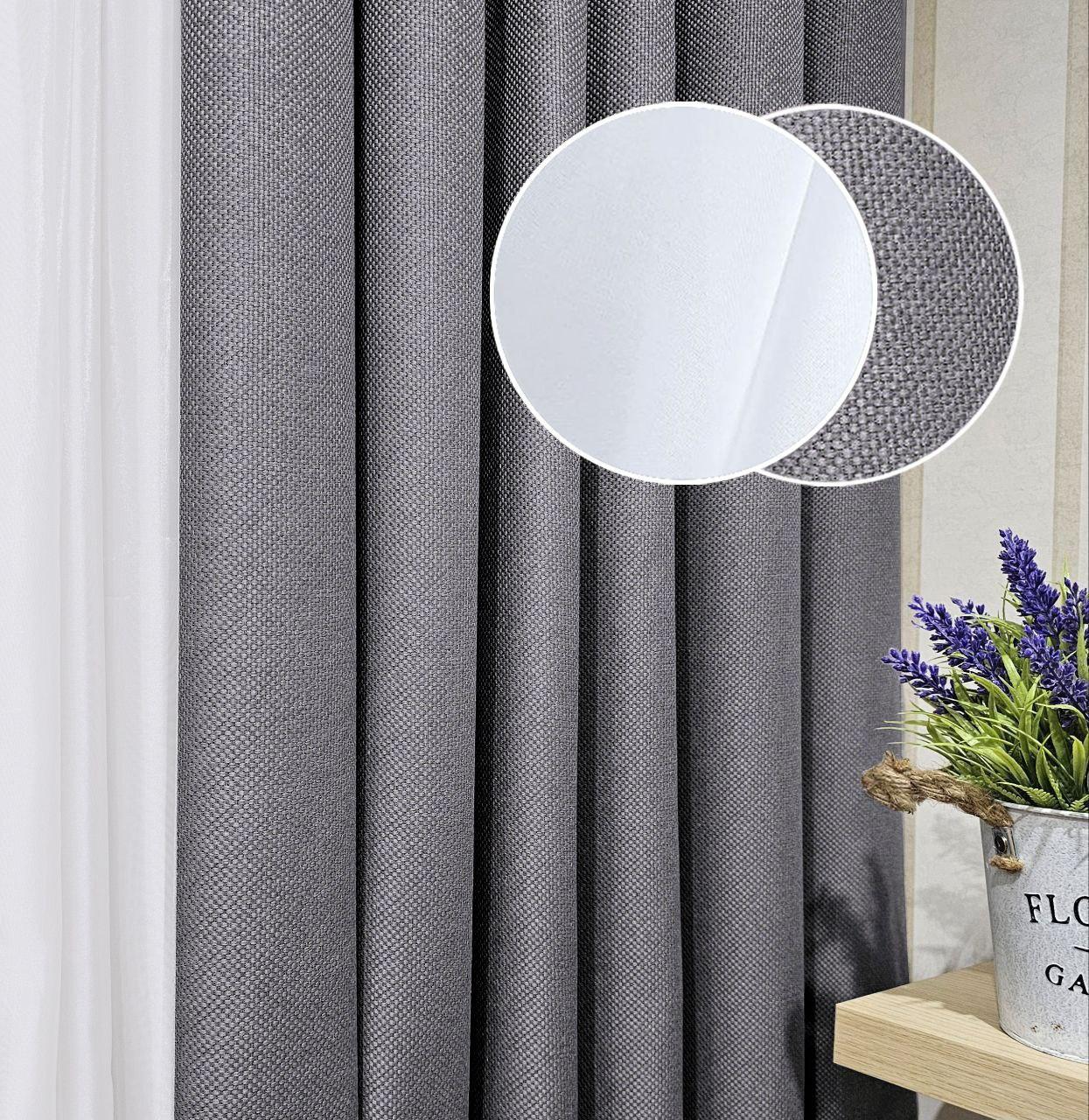 Комплект штори і тюль. Тканина блекаут льон рогожка + шифон. Колір: сірі штори, білий тюль