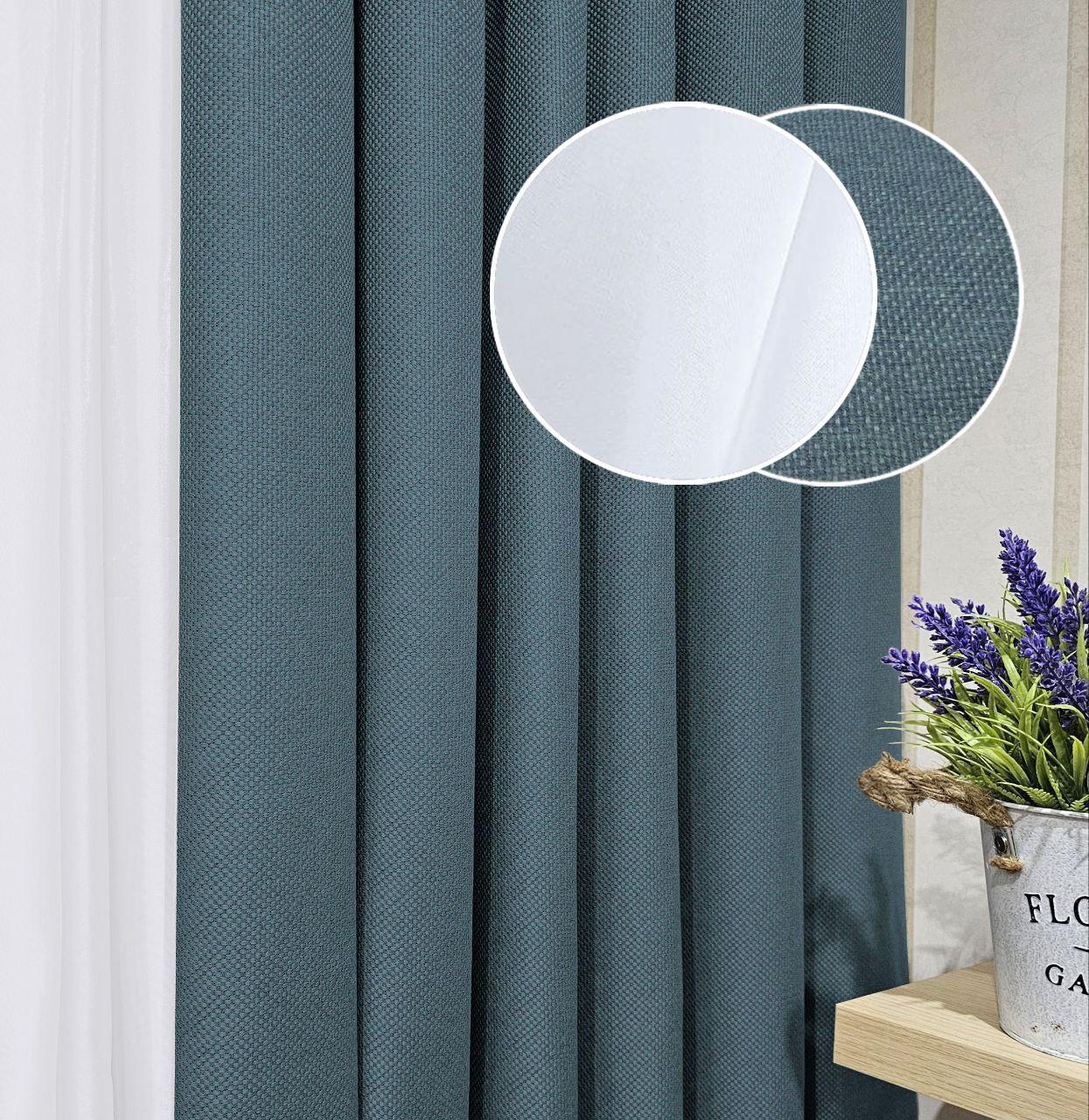 Комплект штори і тюль. Тканина блекаут льон рогожка + шифон. Колір: сіро-бірюзові штори, білий тюль