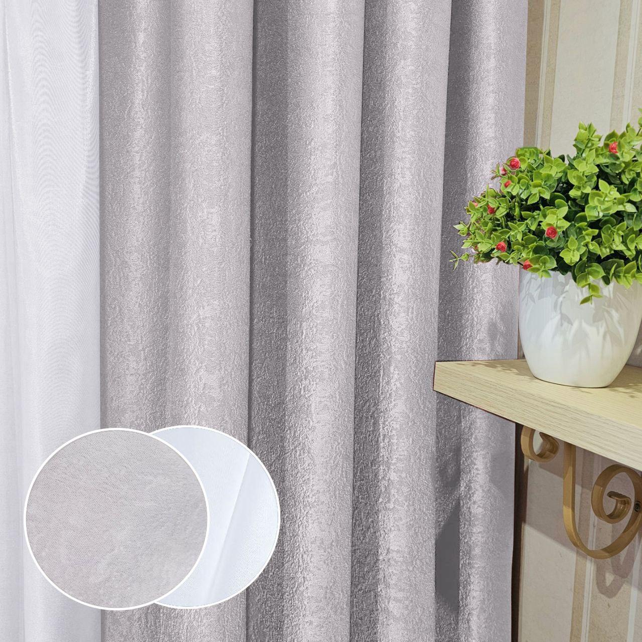 Комплект штори і тюль. Тканина блекаут софт + шифон. Колір: сірі штори, білий тюль