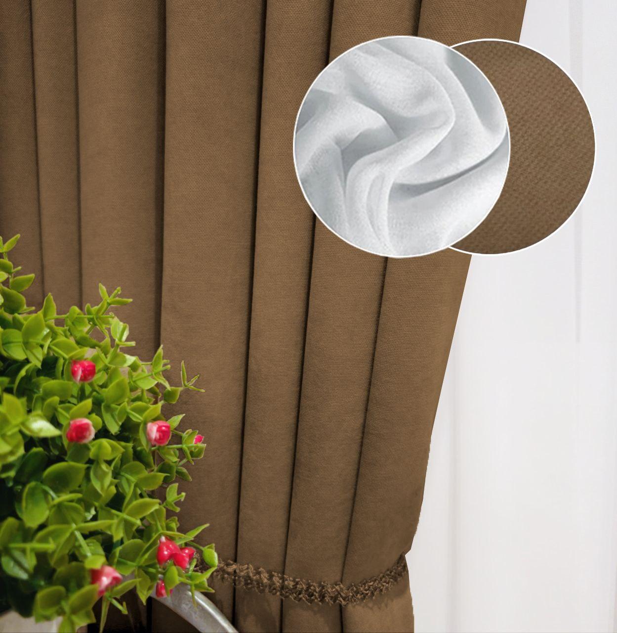 Комплект штори і тюль. Тканина мікровелюр Diamond (Туреччина) + шифон. Колір: коричневі штори, білий тюль