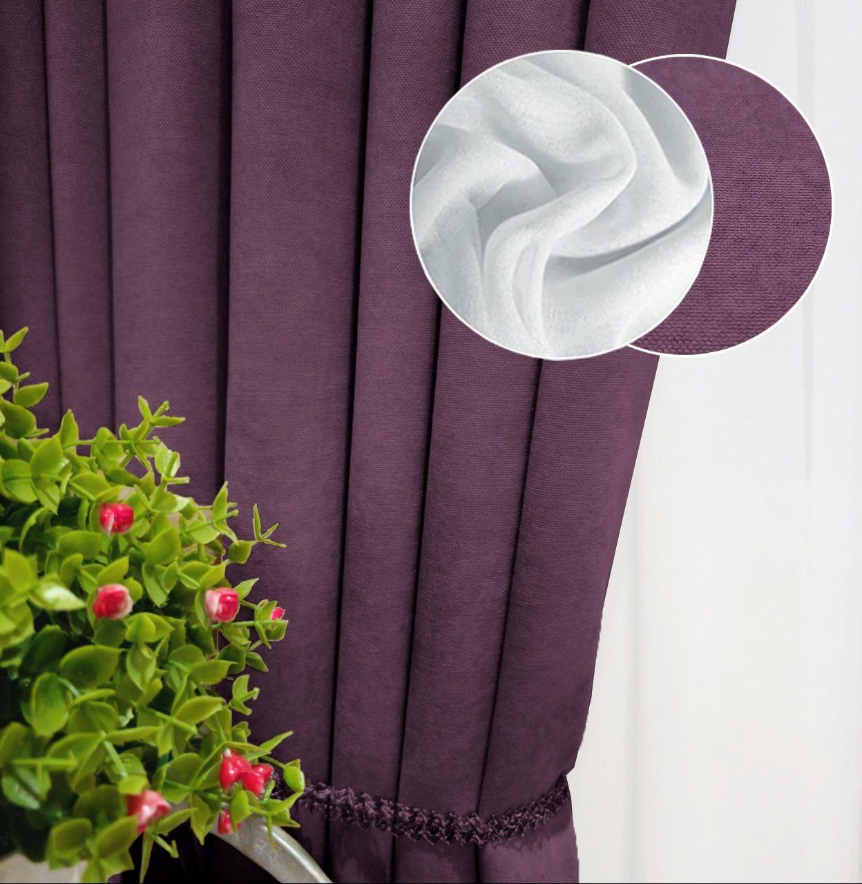 Комплект штори і тюль. Тканина мікровелюр Diamond + шифон вуаль. Колір: баклажан штори, білий тюль