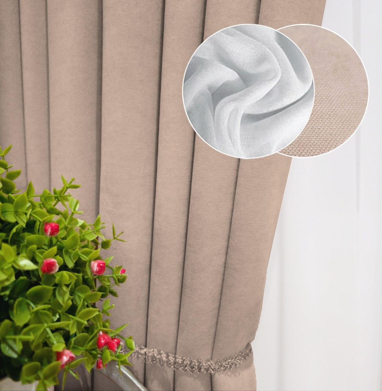 Комплект штори і тюль. Тканина мікровелюр Diamond + шифон вуаль. Колір: бежеві штори, білий тюль
