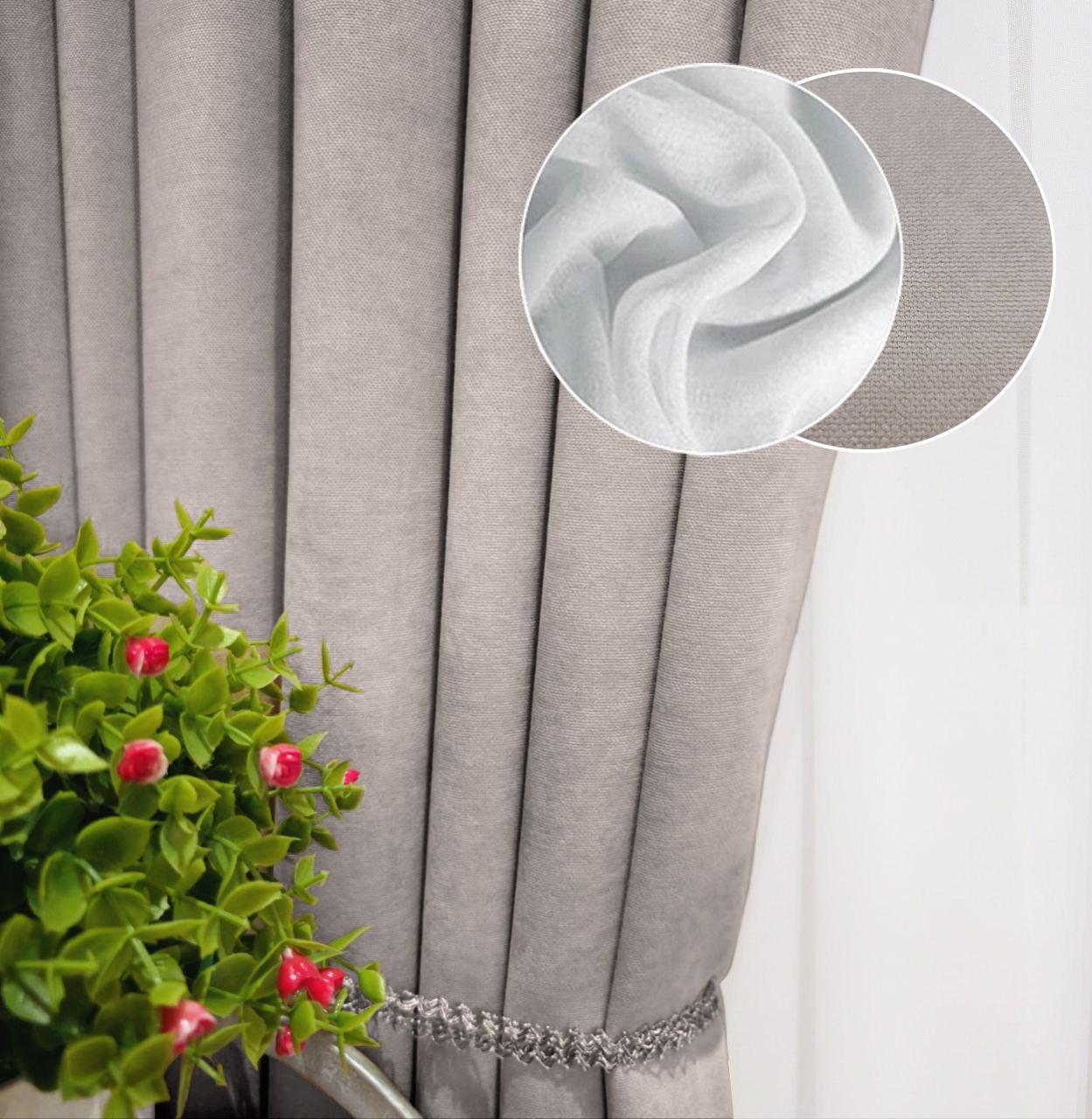 Комплект штори і тюль. Тканина мікровелюр Diamond + шифон вуаль. Колір: сіро-бежевий штори, білий тюль