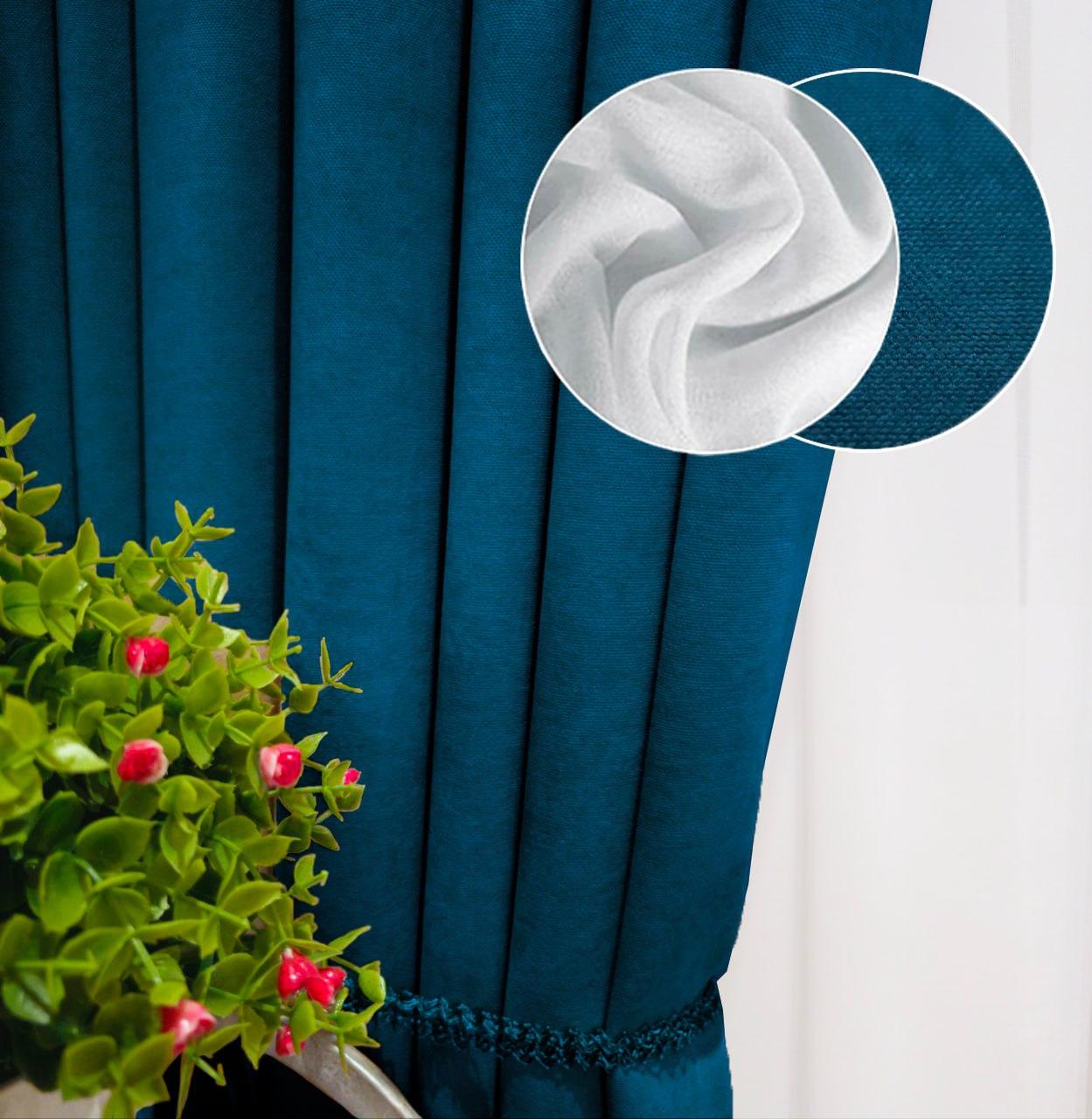 Комплект штори і тюль. Тканина мікровелюр Diamond + шифон вуаль. Колір: синя бірюза штори, білий тюль