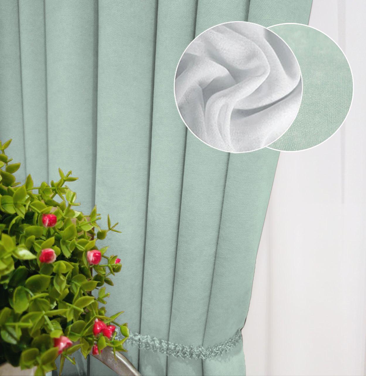 Комплект штори і тюль. Тканина мікровелюр Diamond + шифон. Колір: м*ятний штори, білий тюль