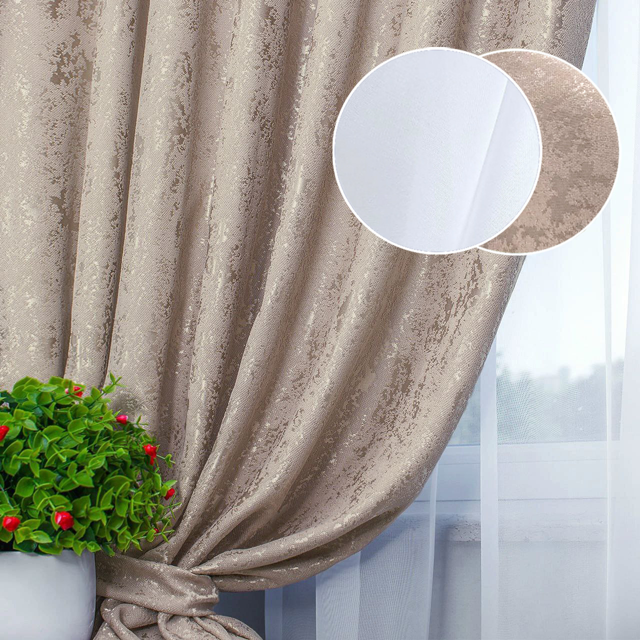 Колір: бежевий (штори), білий (тюль)