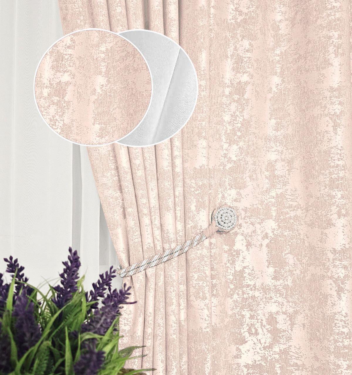 Комплект штори і тюль. Тканина жаккард мармур + шифон. Колір: пудрові штори, білий тюль