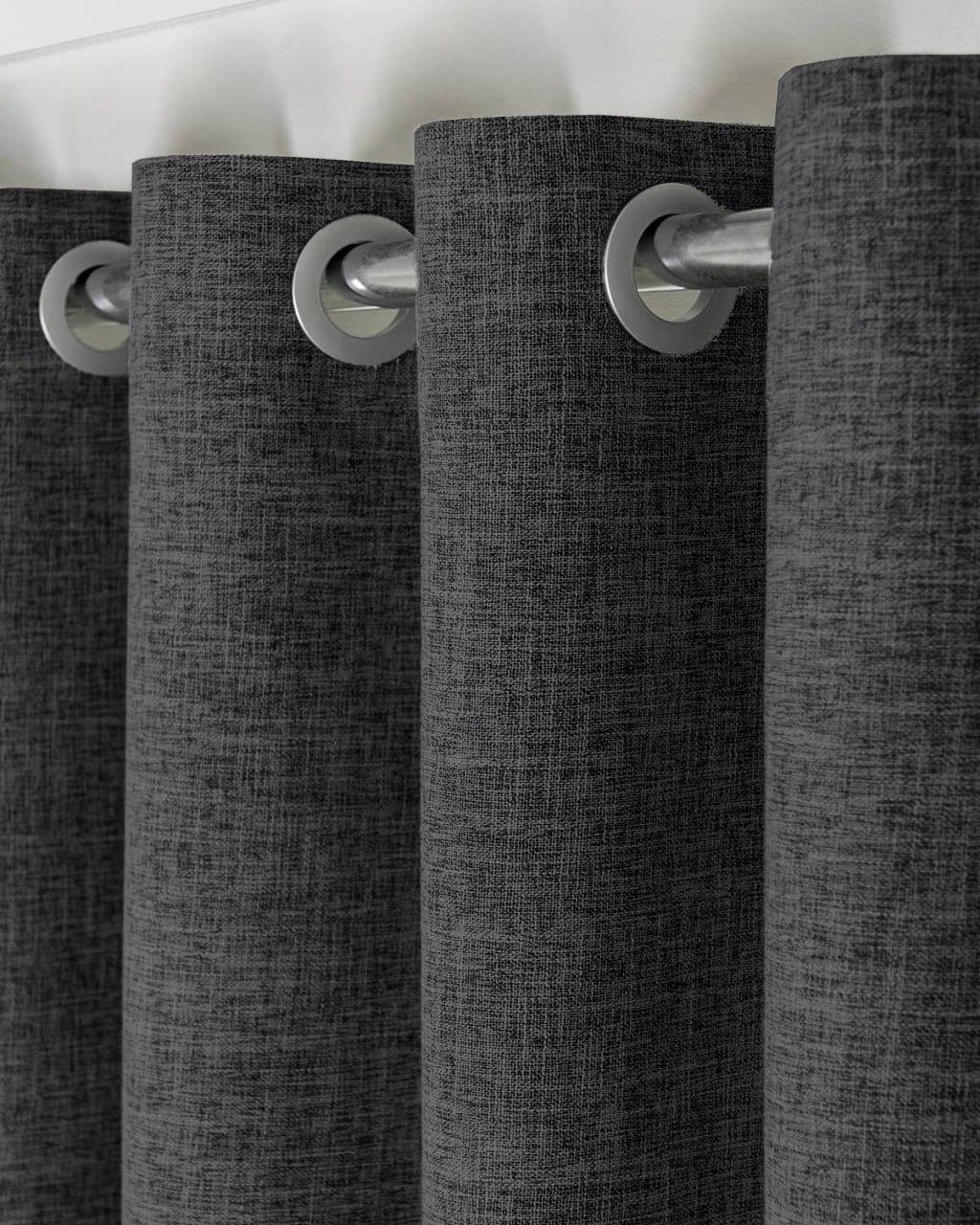 Комплект штори на люверсах льон мішковина. Колір темний сірий. Готові штори в спальню, зал, вітальню